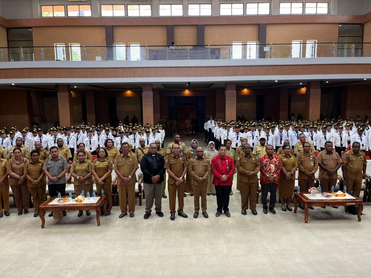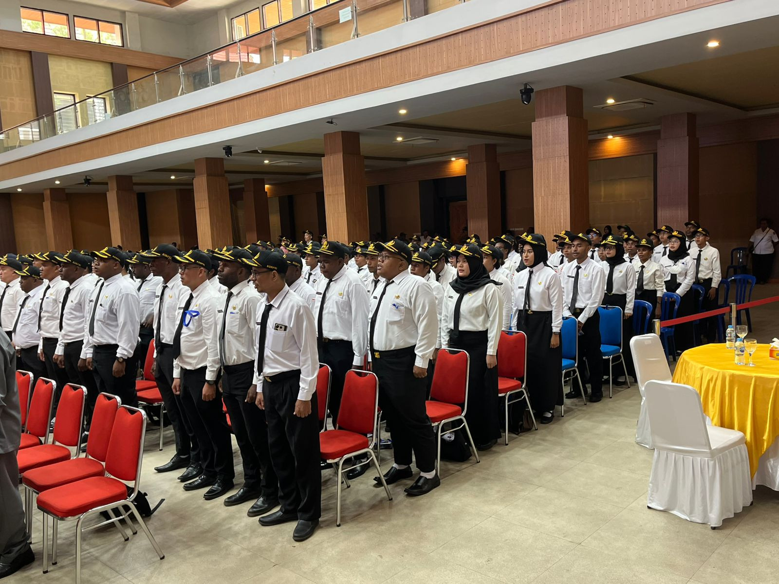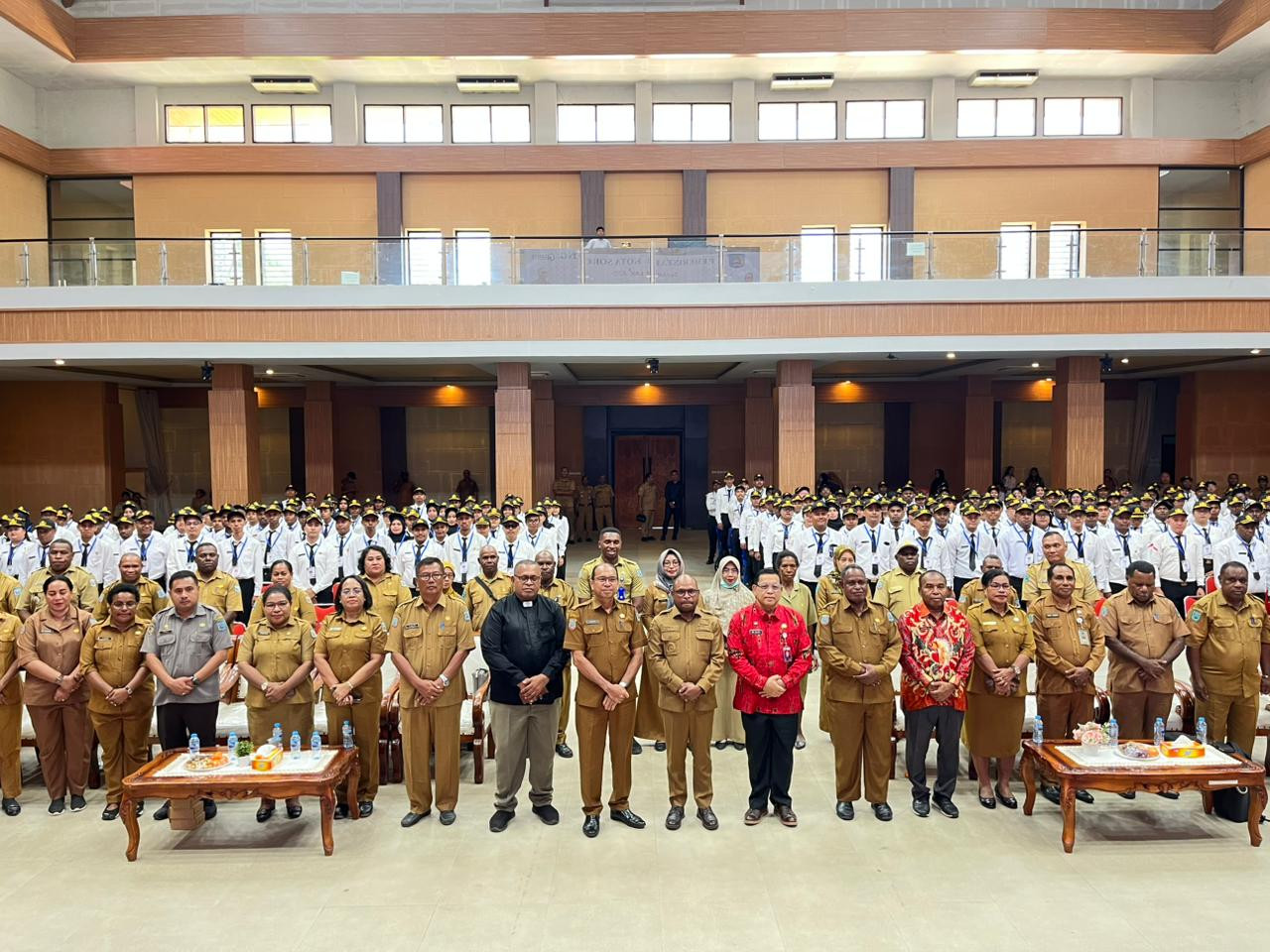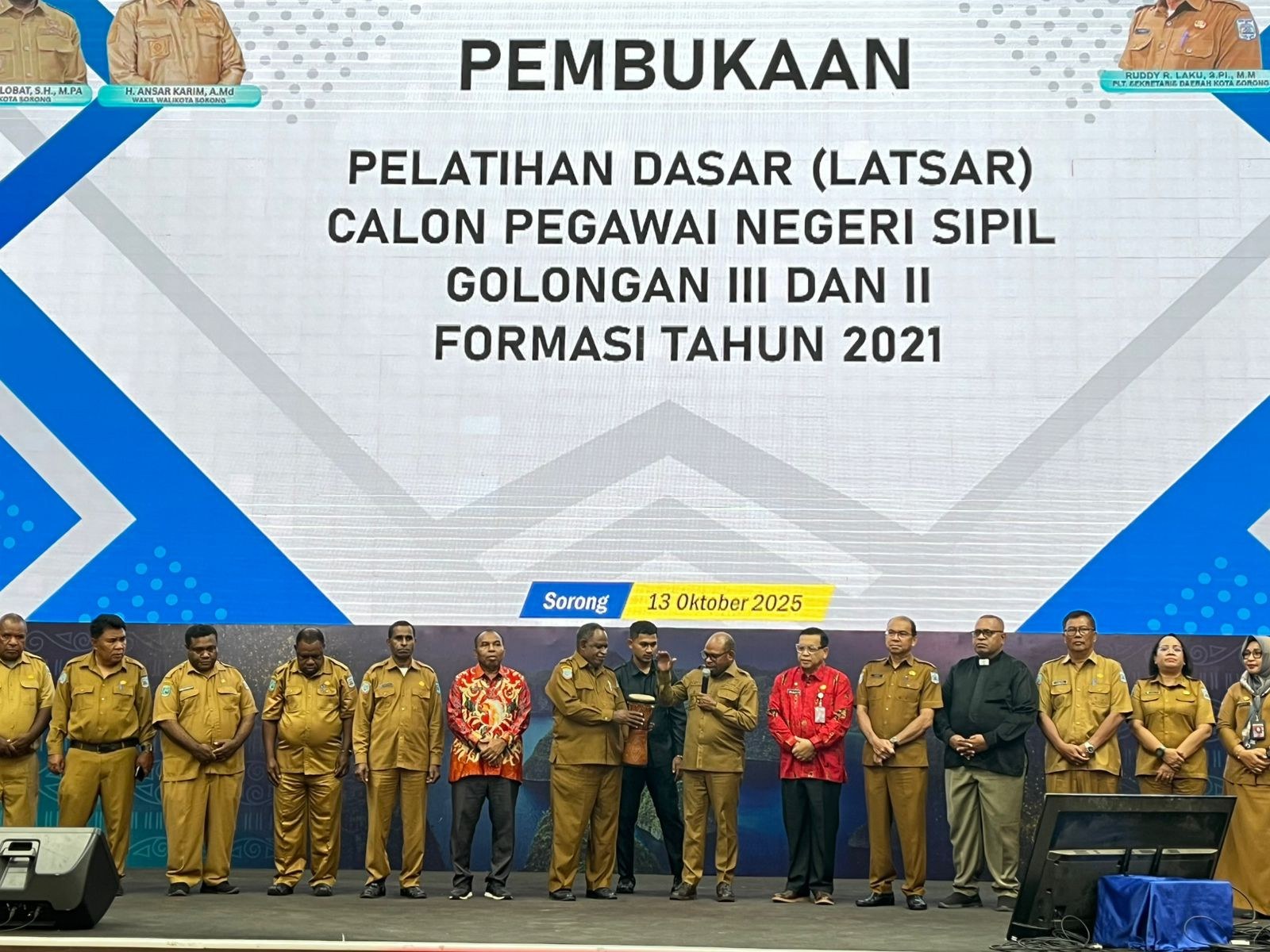 Kota Sorong - Wali Kota Sorong, Septinus Lobat, S.H., MPA., bersama Sekda Kota Sorong dan para pimpinan OPD menghadiri sekaligus membuka kegiatan Pelatihan Dasar Calon Pegawai Negeri Sipil Kotq Sorong Golongan III dan II Formasi tahun 2021. Kegiatan ini berlangsung di gedung Lamberth Jitmau MM kompleks kantor Wali Kota Sorong. Hadir juga Kepala Badan Pengembangan Sumber Daya Aparatur Provinsi Papua (BPSDA) provinsi Papua. Senin, (13/10/2024).