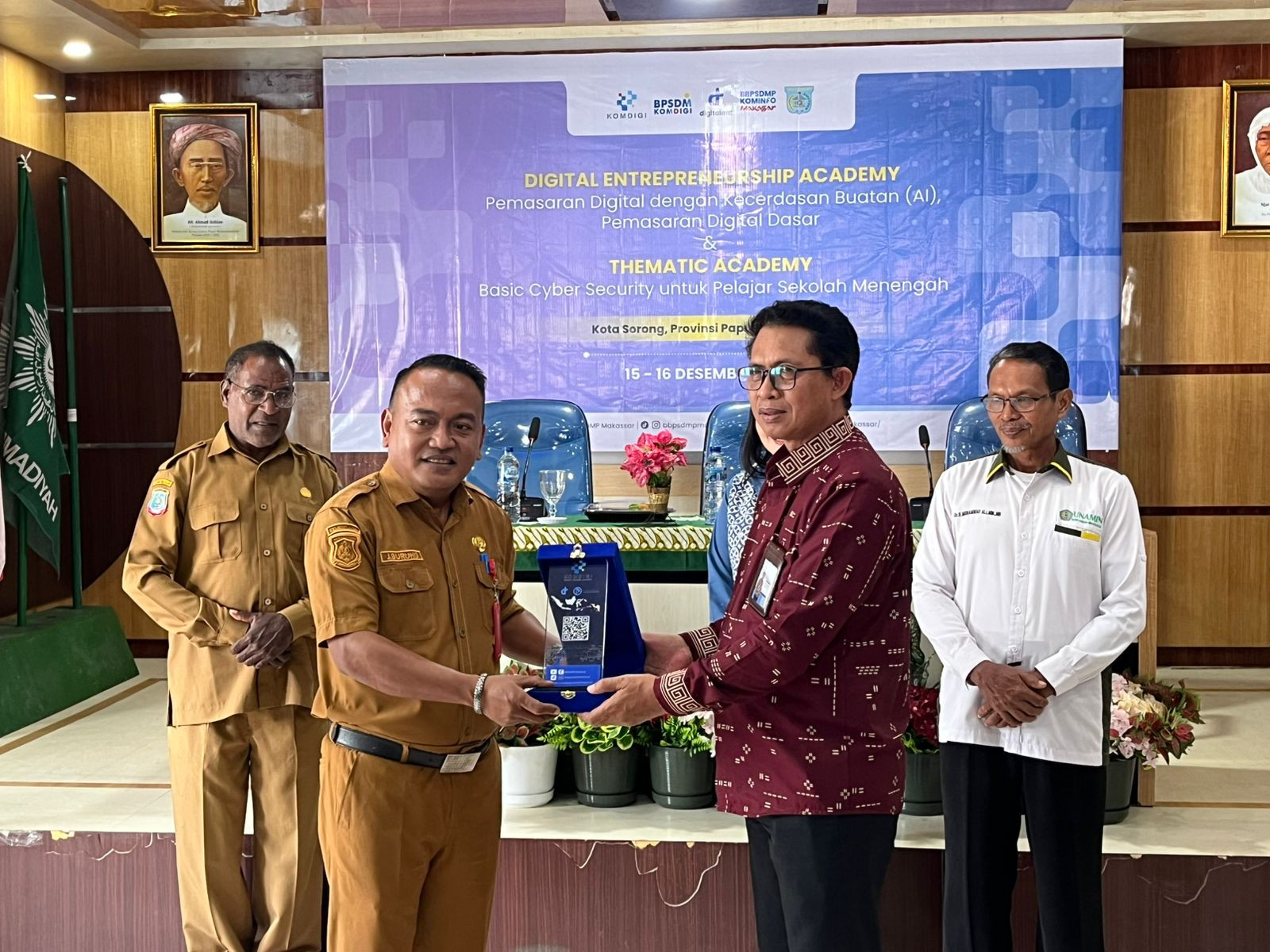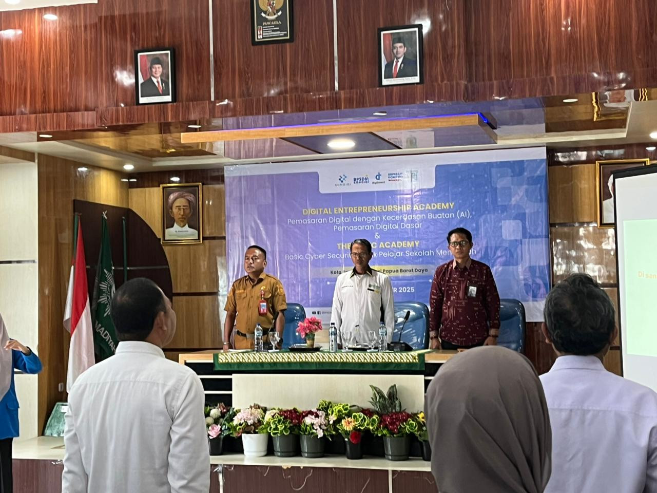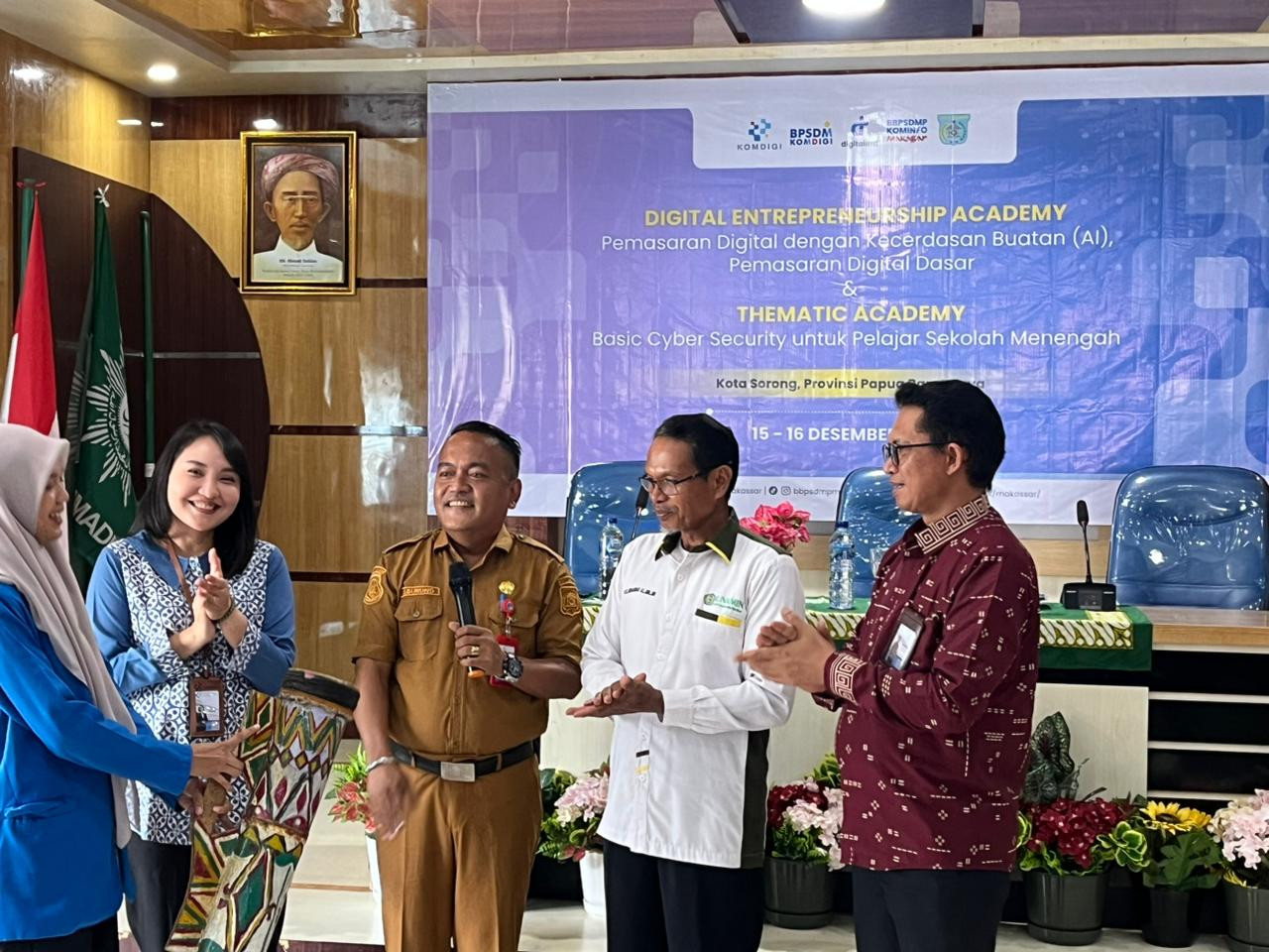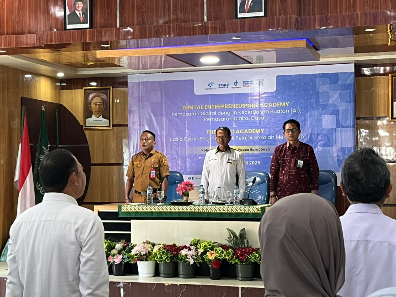 Kota Sorong- Wali Kota Sorong, Septinus Lobat, S.H., MPA., yang diwakili oleh Kepala Dinas Komunikasi dan Informatika (Kominfo) Kota Sorong, James Burung, S.Sos., M.M., menghadiri kegiatan Pelatihan Digital Enterpreneurship Academy (DEA) Dan Pelatihan Thematic Academy (TA) Tema Basic Cyber Security (BCS) yang diselenggarakan oleh BBPSDMP KOMDIGI Kota Makassar yang dilaksanakan di aula kampus Unamin Sorong. Kegiatan tersebut dihadiri oleh Kepala BBPSDMP Makasar, Kabiro Keuangan Kementerian Komdigi RI, Rektor Unamin, para Dosen dan mahasiswa-mahasiswi Unamin sebagai peserta kegiatan pelatihan tersebut.
