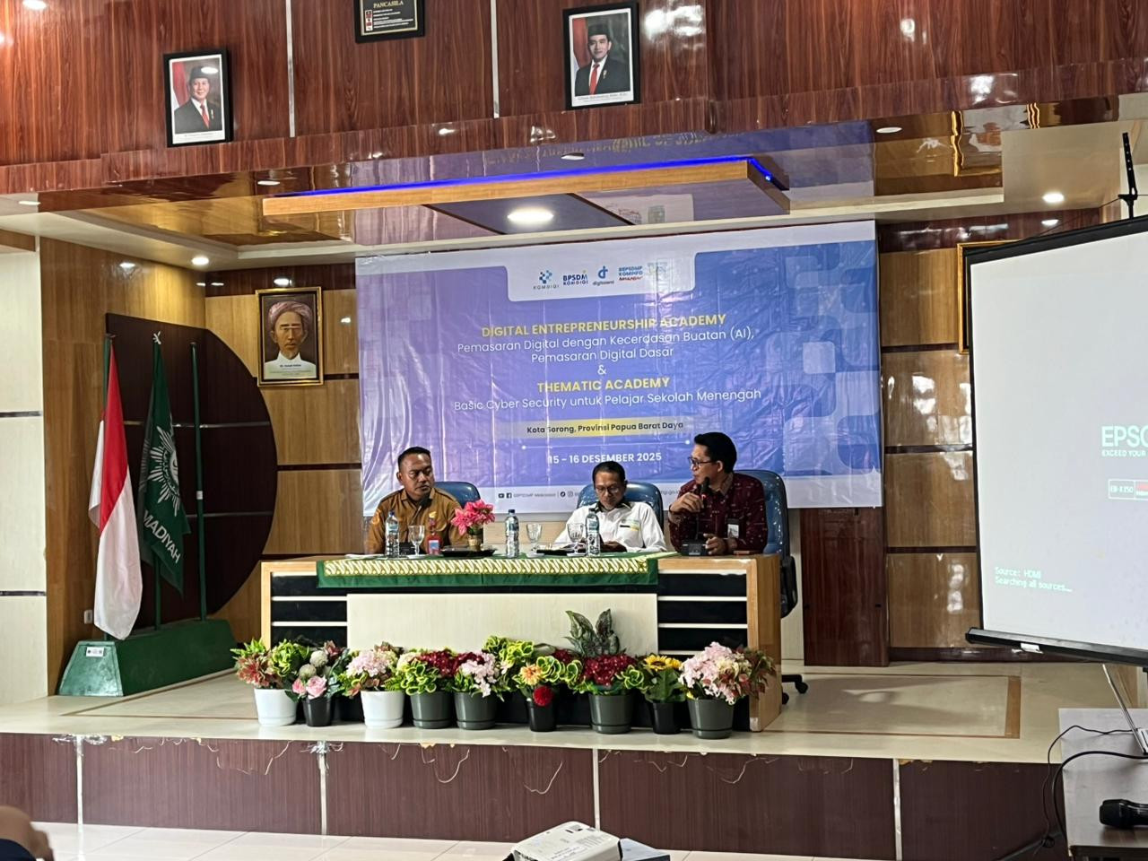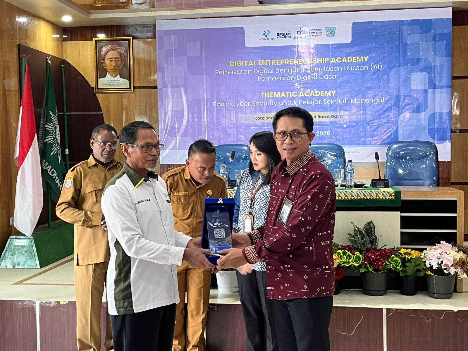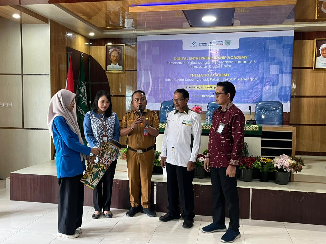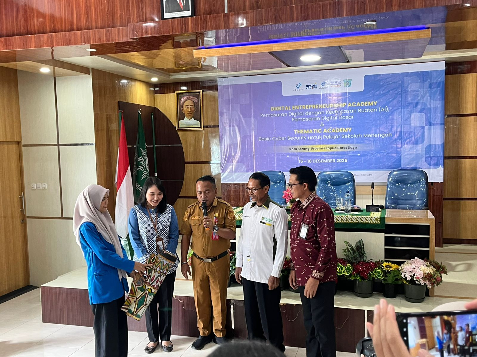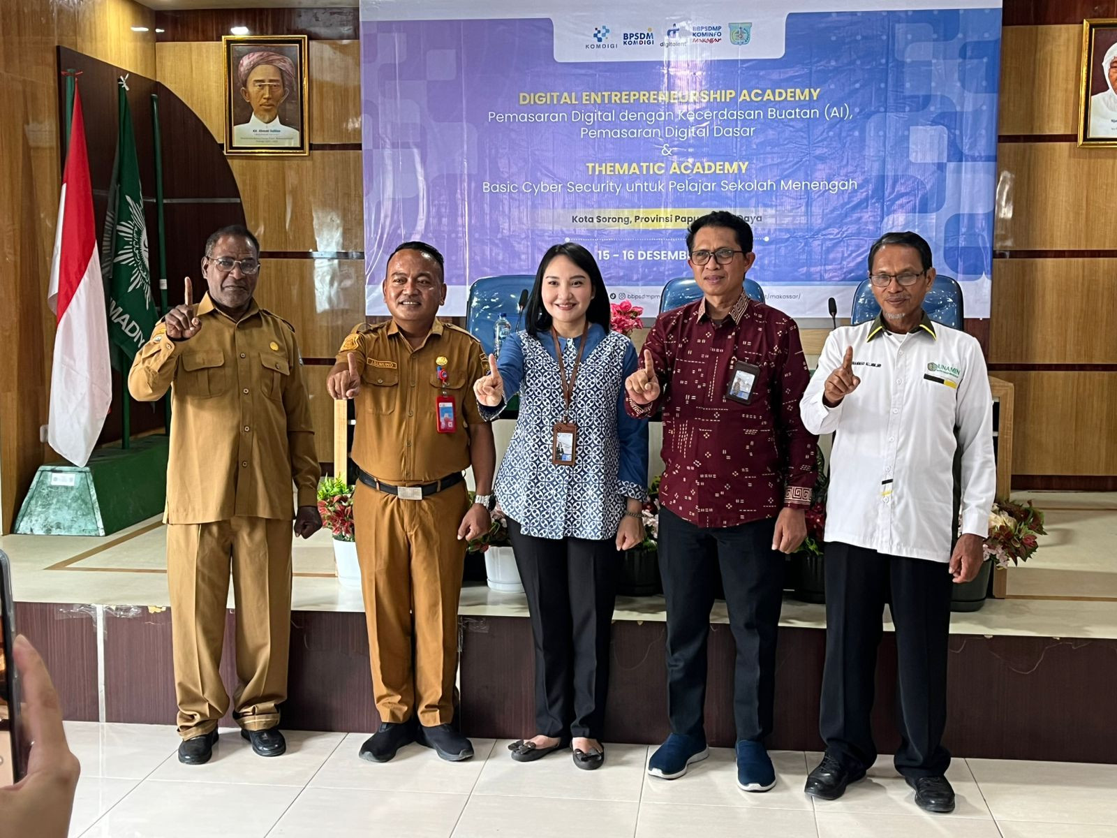 Kota Sorong- Wali Kota Sorong, Septinus Lobat, S.H., MPA., yang diwakili oleh Kepala Dinas Komunikasi dan Informatika (Kominfo) Kota Sorong, James Burung, S.Sos., M.M., menghadiri kegiatan Pelatihan Digital Enterpreneurship Academy (DEA) Dan Pelatihan Thematic Academy (TA) Tema Basic Cyber Security (BCS) yang diselenggarakan oleh BBPSDMP KOMDIGI Kota Makassar yang dilaksanakan di aula kampus Unamin Sorong. Kegiatan tersebut dihadiri oleh Kepala BBPSDMP Makasar, Kabiro Keuangan Kementerian Komdigi RI, Rektor Unamin, para Dosen dan mahasiswa-mahasiswi Unamin sebagai peserta kegiatan pelatihan tersebut.