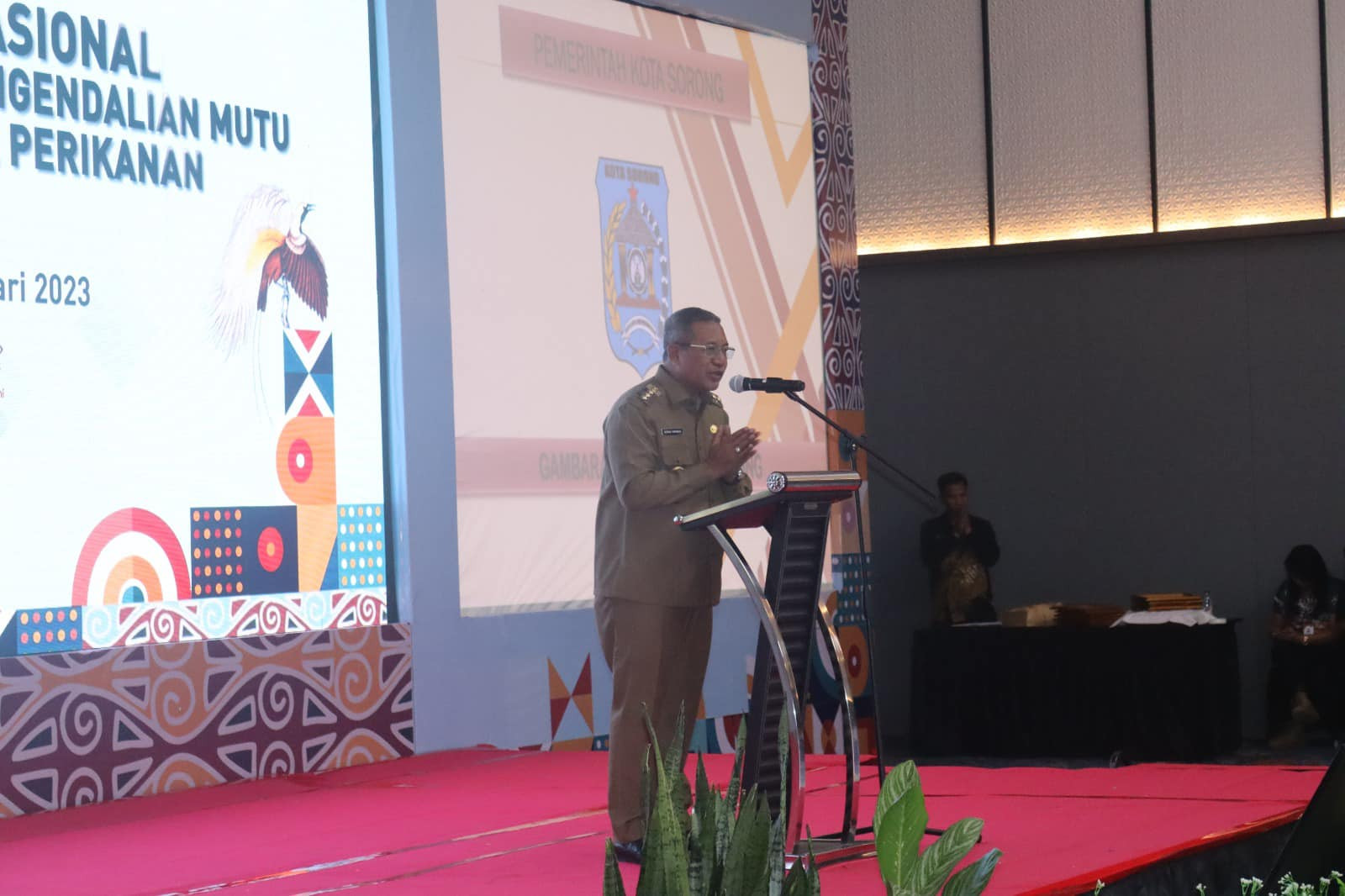 Pamuji Lestari selaku Kepala Badan Karantina Ikan Pengendalian Mutu dan Keamanan Hasil Pangan, urut hadir secara langsung pada kegiatan Pembukaan Pembukaan Raker Nasional Badan Karantina Ikan Pengendalian Mutu dan Keamanan Hasil Perikanan.