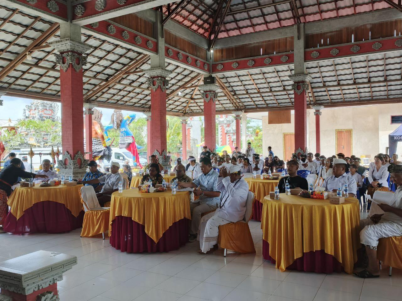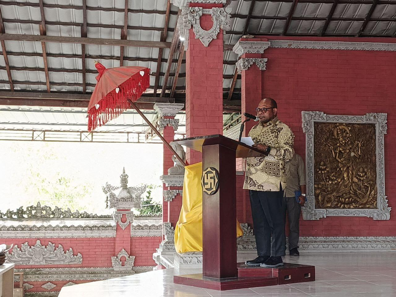 Sorong – Pemerintah Kota Sorong yang dipimpin Wali Kota Sorong, Septinus Lobat, S.H., MPA, bersama Ibu Wali Kota Jemima Elisabeth Lobat, S.K.M., MAP, didampingi Wakil Wali Kota Sorong H. Anshar Karim, A.Md., serta Plt. Asisten Bidang Administrasi Umum Musa Fonataba, S.P., menghadiri sekaligus membuka kegiatan pawai ogoh-ogoh dalam rangka menyambut Hari Suci Nyepi Tahun Baru Saka 1948. Kegiatan tersebut berlangsung di Pura Jaga Buanakerti, Jalan Malibela KM 11,5, Kelurahan Klawuyuk, Kota Sorong, pada Rabu (18/03/2026). Dalam sambutannya, Wali Kota Sorong menyampaikan apresiasi dan penghargaan yang setinggi-tingginya kepada seluruh umat Hindu di Kota Sorong yang terus menjaga tradisi, nilai-nilai spiritual, serta kearifan lokal dalam setiap perayaan keagamaan. Ia menegaskan bahwa rangkaian kegiatan Tawur Kesanga dan pawai ogoh-ogoh bukan hanya menjadi simbol penyucian alam semesta dari energi negatif, tetapi juga sebagai momentum untuk mempererat persatuan, toleransi, dan kerukunan antarumat beragama di Kota Sorong. Selain itu, kegiatan ini dinilai memiliki nilai edukatif dan budaya yang sangat penting, khususnya bagi generasi muda, agar tetap mengenal dan melestarikan warisan leluhur. Melalui pawai ogoh-ogoh, masyarakat diajak untuk merenungkan makna kehidupan, mengendalikan diri, serta menjaga keseimbangan antara manusia, alam, dan Sang Pencipta. Pemerintah Kota Sorong juga berharap, melalui perayaan Hari Suci Nyepi, seluruh umat Hindu dapat menjalankan Catur Brata Penyepian dengan penuh khidmat, sehingga membawa kedamaian, kebijaksanaan, dan energi positif bagi kehidupan bermasyarakat. Semangat Nyepi diharapkan menjadi inspirasi bagi seluruh masyarakat untuk terus membangun Kota Sorong yang maju, bersih, hijau, aman, dan sejahtera dalam bingkai kebhinekaan. (Diskominfo Kota Sorong)