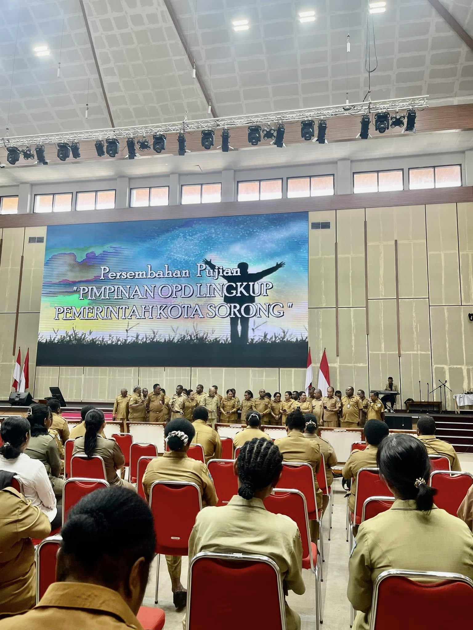 Ibadah Oikumene ini juga menjadi simbol komitmen Pemerintah Kota Sorong dalam menjunjung nilai-nilai keimanan serta membangun sinergi antara pemerintah dan masyarakat. (Humas Pemkot Sorong)