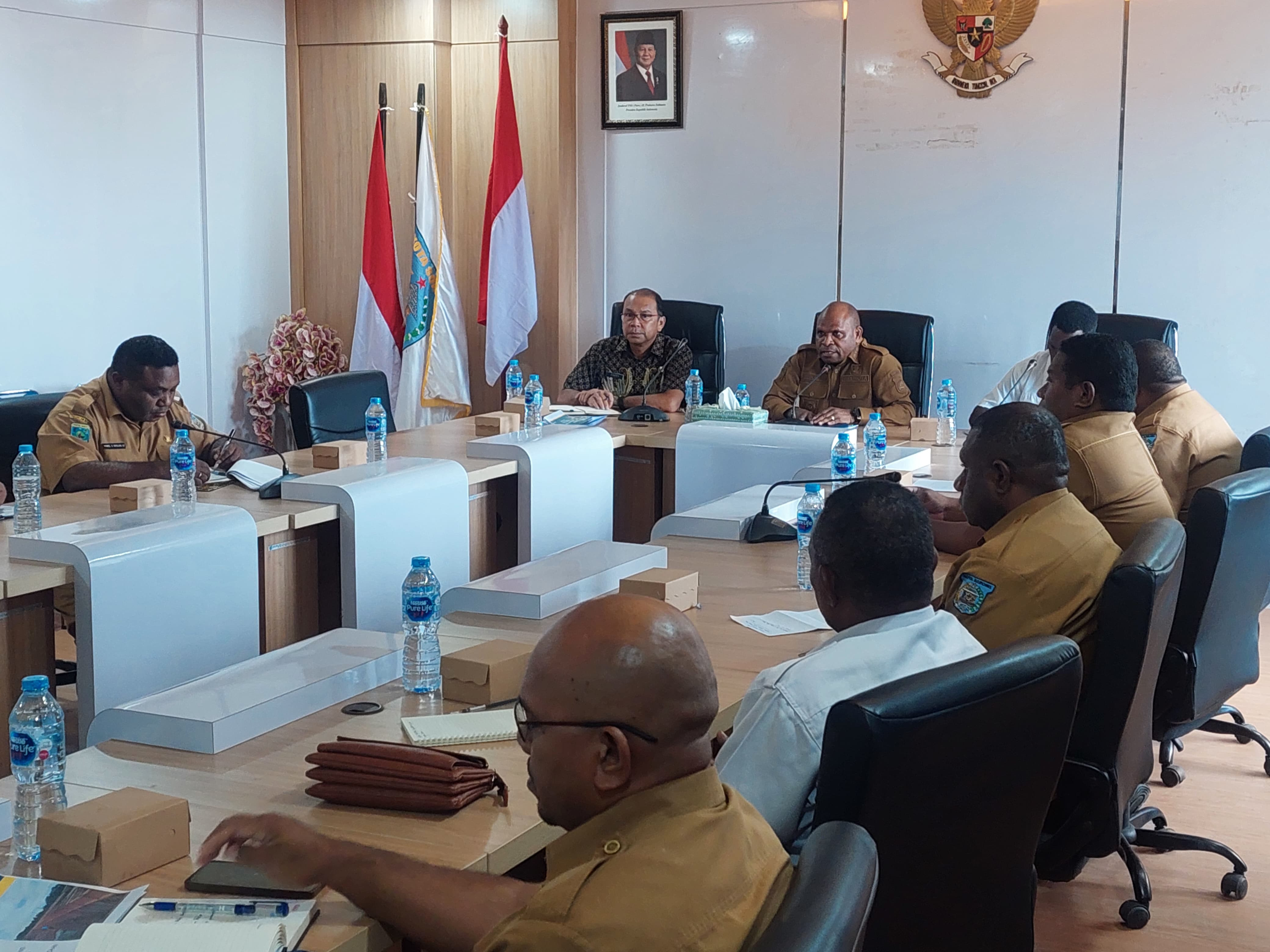 Wali Kota Sorong, Septinus Lobat, S.H., didampingi oleh Rudy R. Laku, S.Pi, MM., selaku Plt. Sekda Kota Sorong hadir dalam Rapat Pembahasan Penetapan Lokasi Pengadaan Tanah pada Sempadan Sungai Remu dan Mekanisme dan Tindak Lanjut Proses Pengadaan Tanah Remu. Ruang Anggrek, Lt.II, Kantor Wali Kota Sorong. Selasa, (1/7/2025).