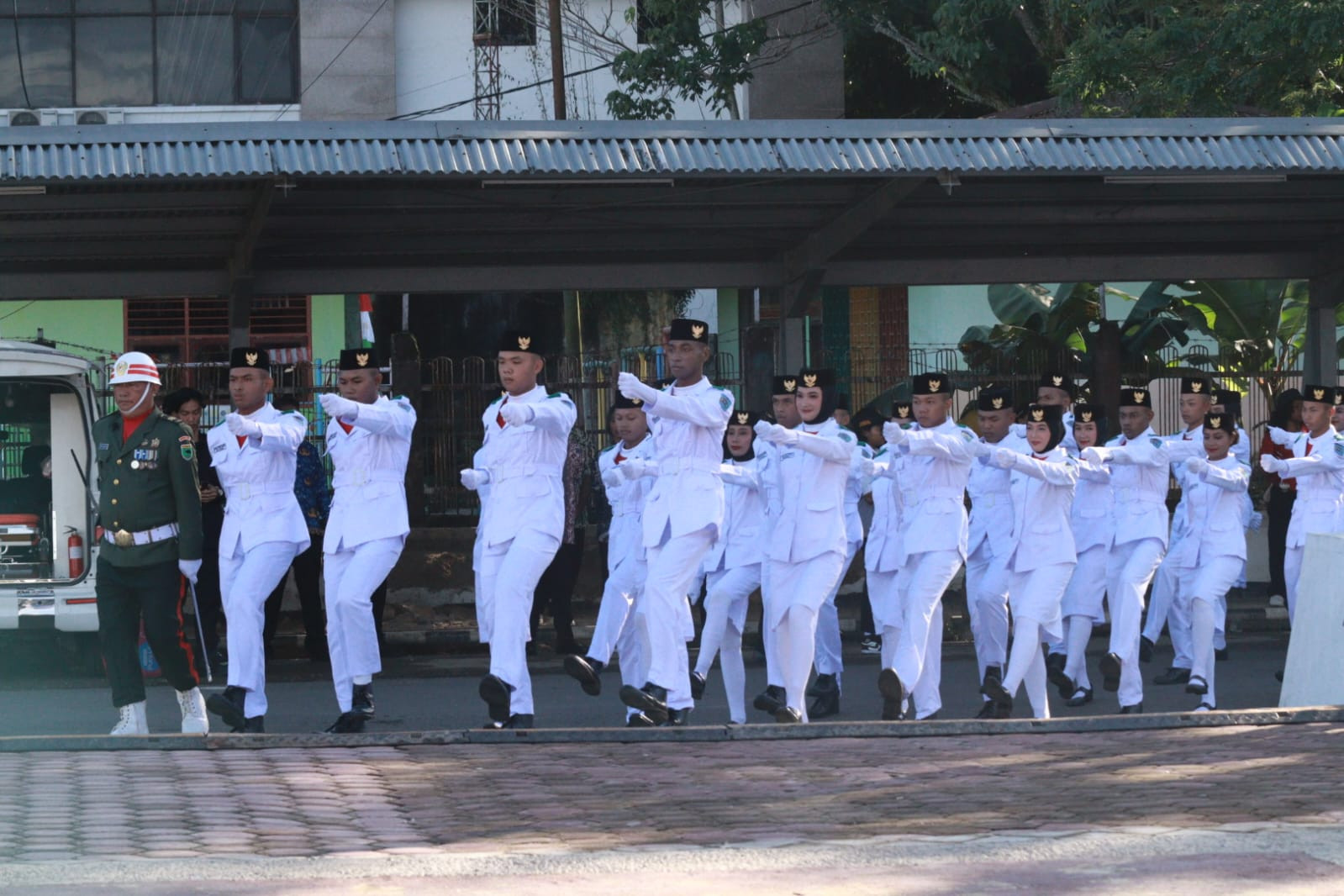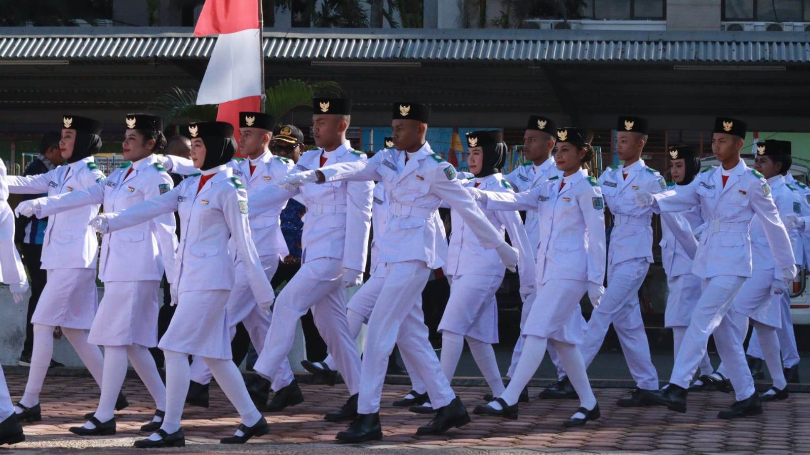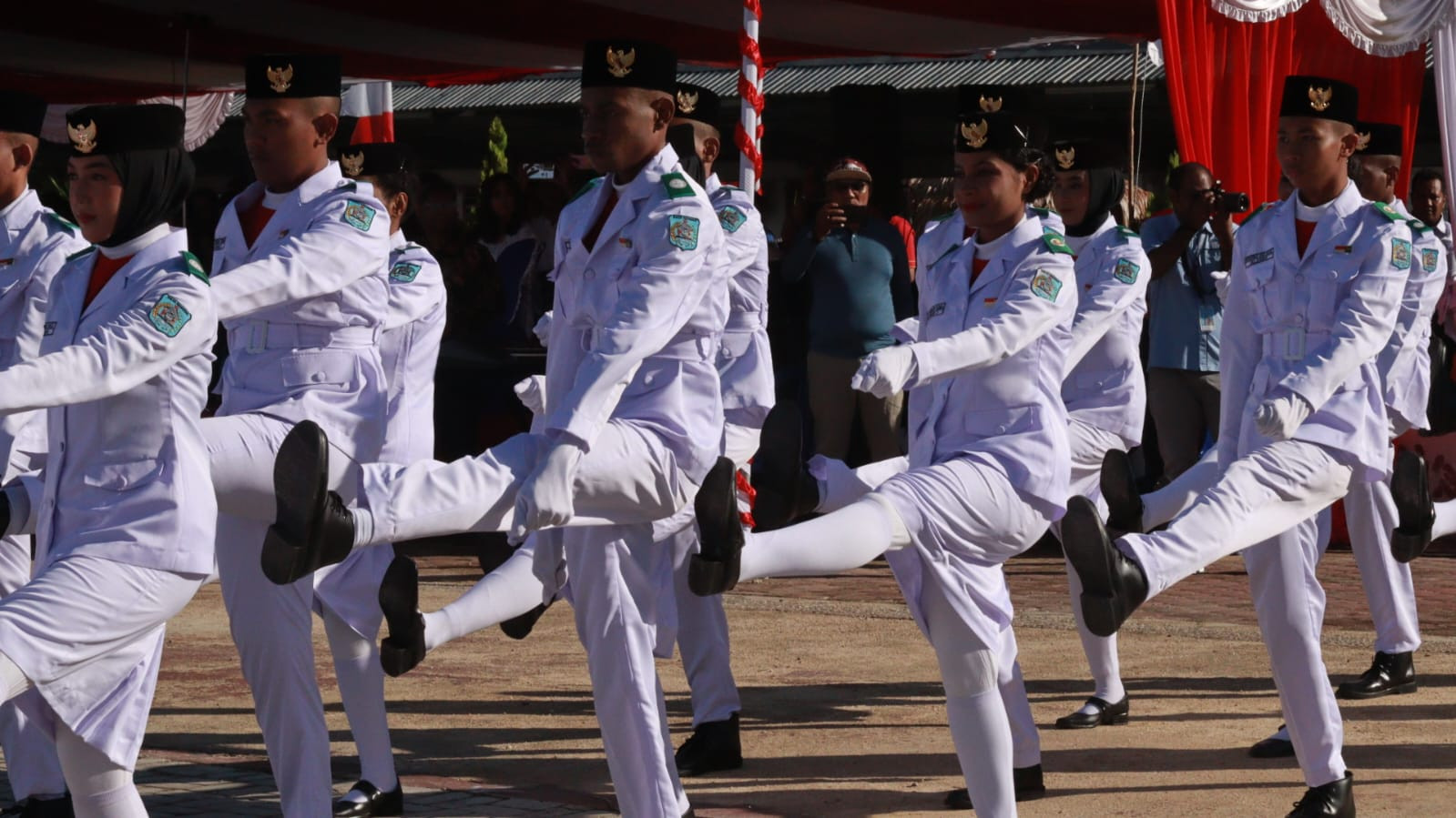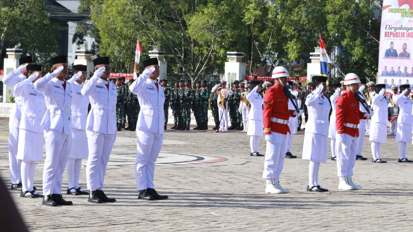 40 Anggota Paskibraka pada Upacara HUT NRI ke-80 yang terdiri dari 20 Putra dan 20 Putri, yang merupakan Perwakilan dari 11 Sekolah Menengah Atas Sukses mengawal dan mengibarkan Bendera Merah Putih pada Upacara pagi ini.