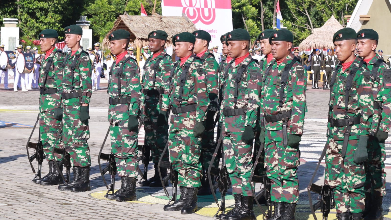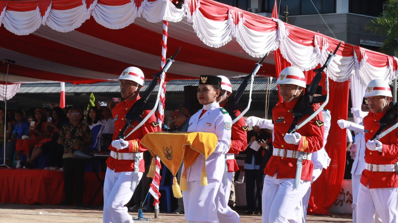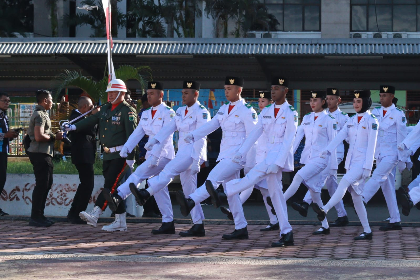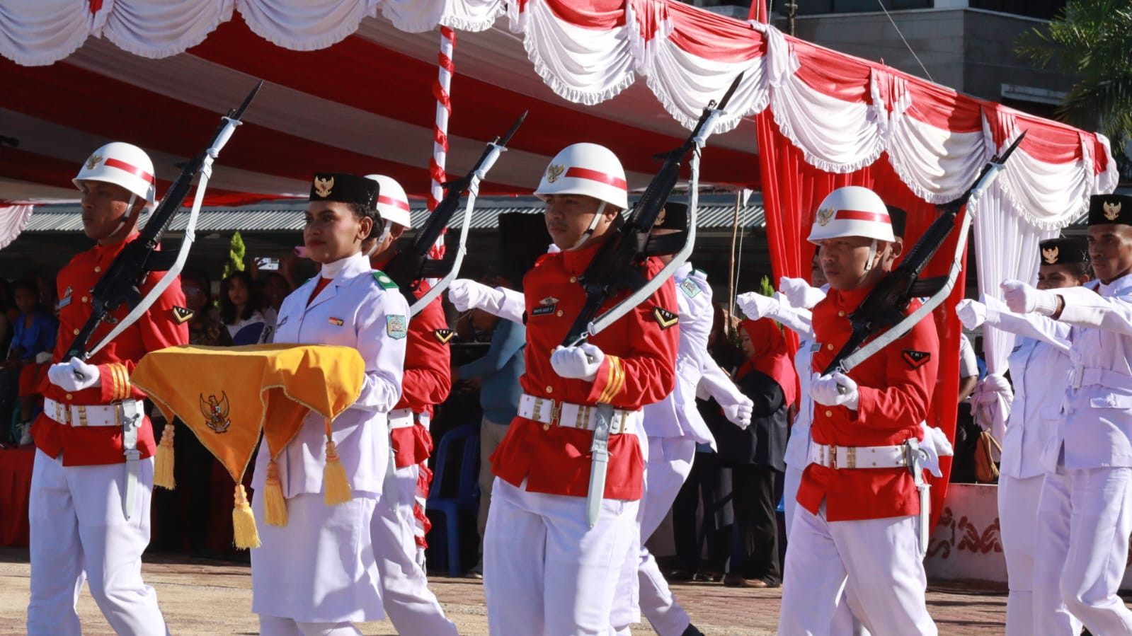 40 Anggota Paskibraka pada Upacara HUT NRI ke-80 yang terdiri dari 20 Putra dan 20 Putri, yang merupakan Perwakilan dari 11 Sekolah Menengah Atas Sukses mengawal dan mengibarkan Bendera Merah Putih pada Upacara pagi ini.