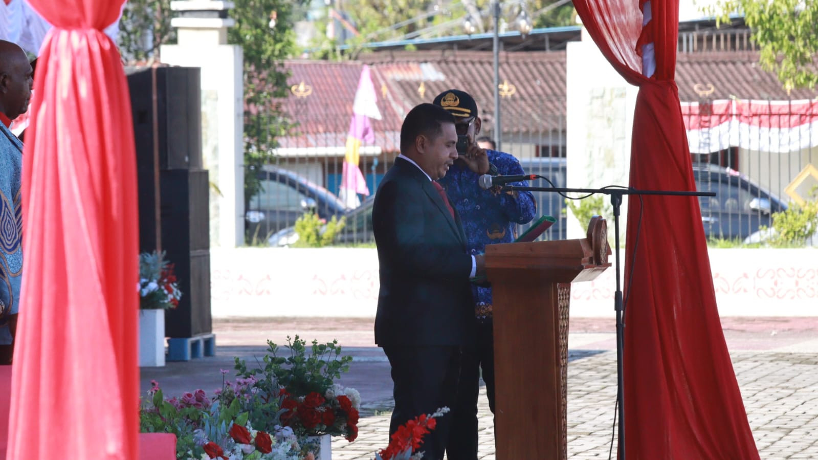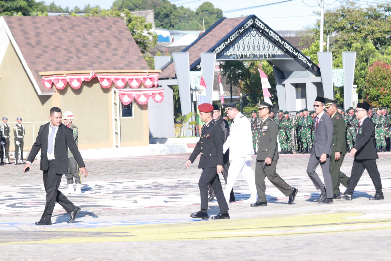 𝐊𝐨𝐭𝐚 𝐒𝐨𝐫𝐨𝐧𝐠 – Wali Kota Sorong, Septinus Lobat, S.H., MPA., menjadi Pembina Apel pada Upacara HUT NRI Ke-80 yang terselenggara di Lapangan Landscape (Lapangan Apel), Kantor Wali Kota Sorong. Upacara ini juga di hadiri oleh Wakil Wali Kota, H. Anshar Karim, A. MD., Forkopimda, Pimpinan OPD, Pimpinan BUMN dan BUMD, serta Tamu Undangan lainnya. Minggu, (17/8/2025).