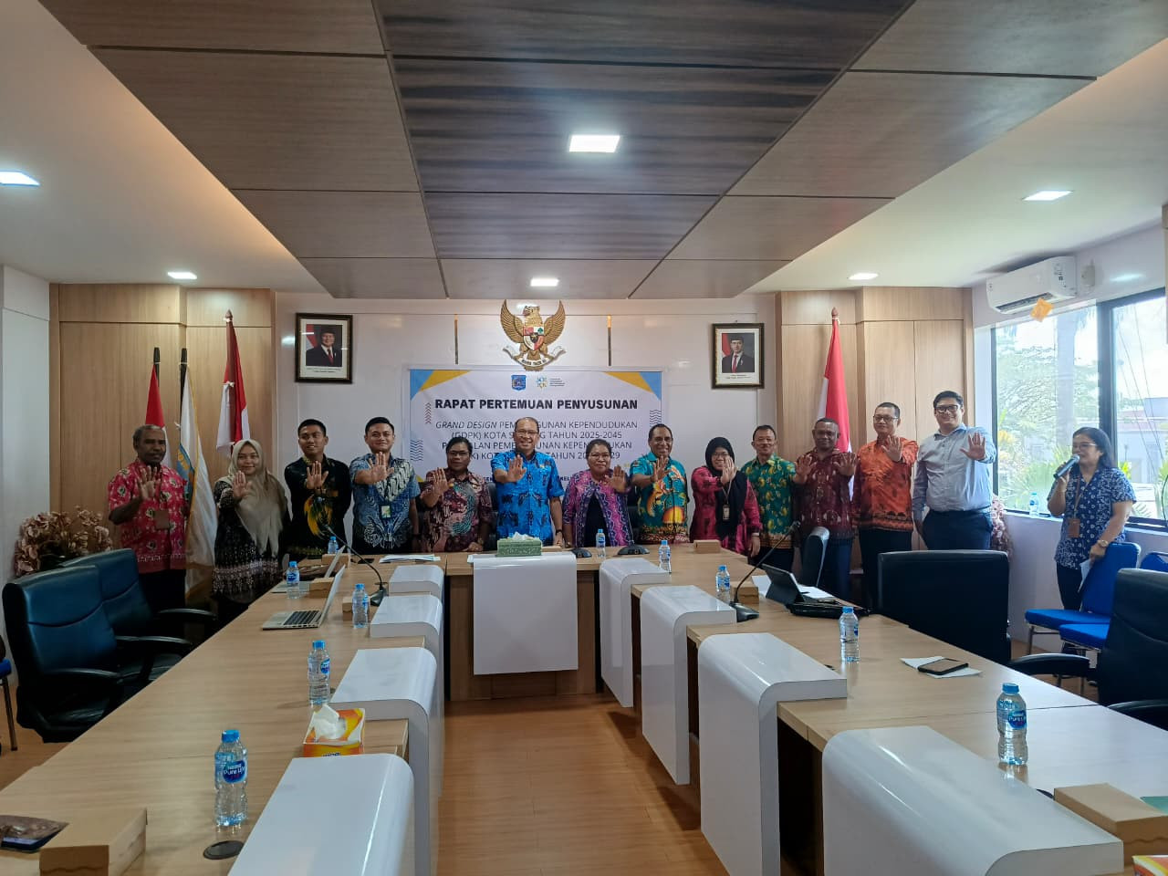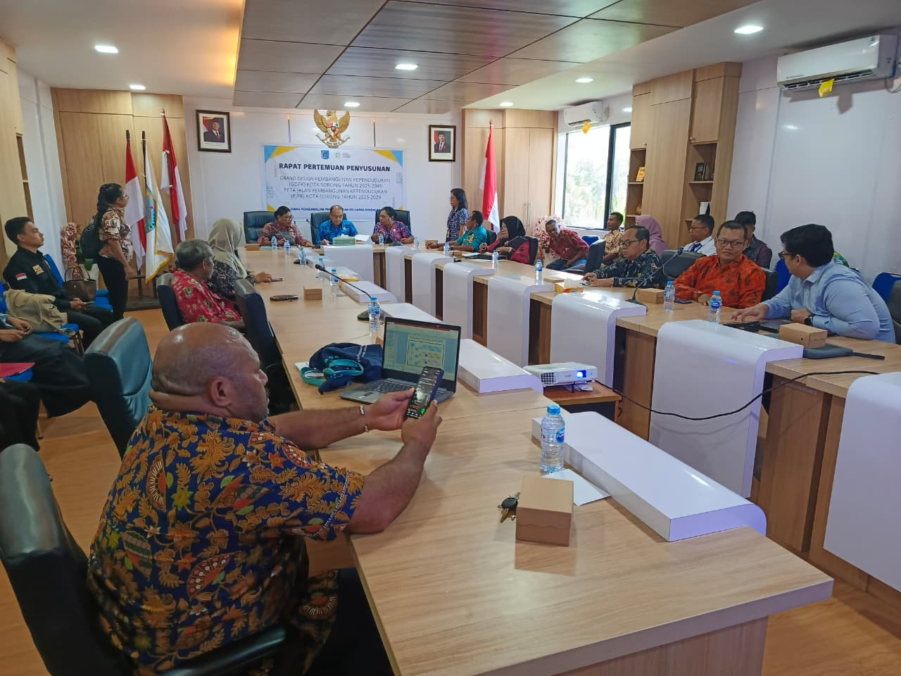 Kota Sorong — Plt. Sekretaris Daerah Kota Sorong, Rudy R. Laku, S.Pi., MM., hadir dan membuka secara resmi Pertemuan dalam Rangka Penyusunan Dokumen Grand Design Pembangunan Kependudukan Kota Sorong. Ruang Amggrek, Lt.II, Kantor Wali Kota Sorong. Kamis, (11/12/2025).