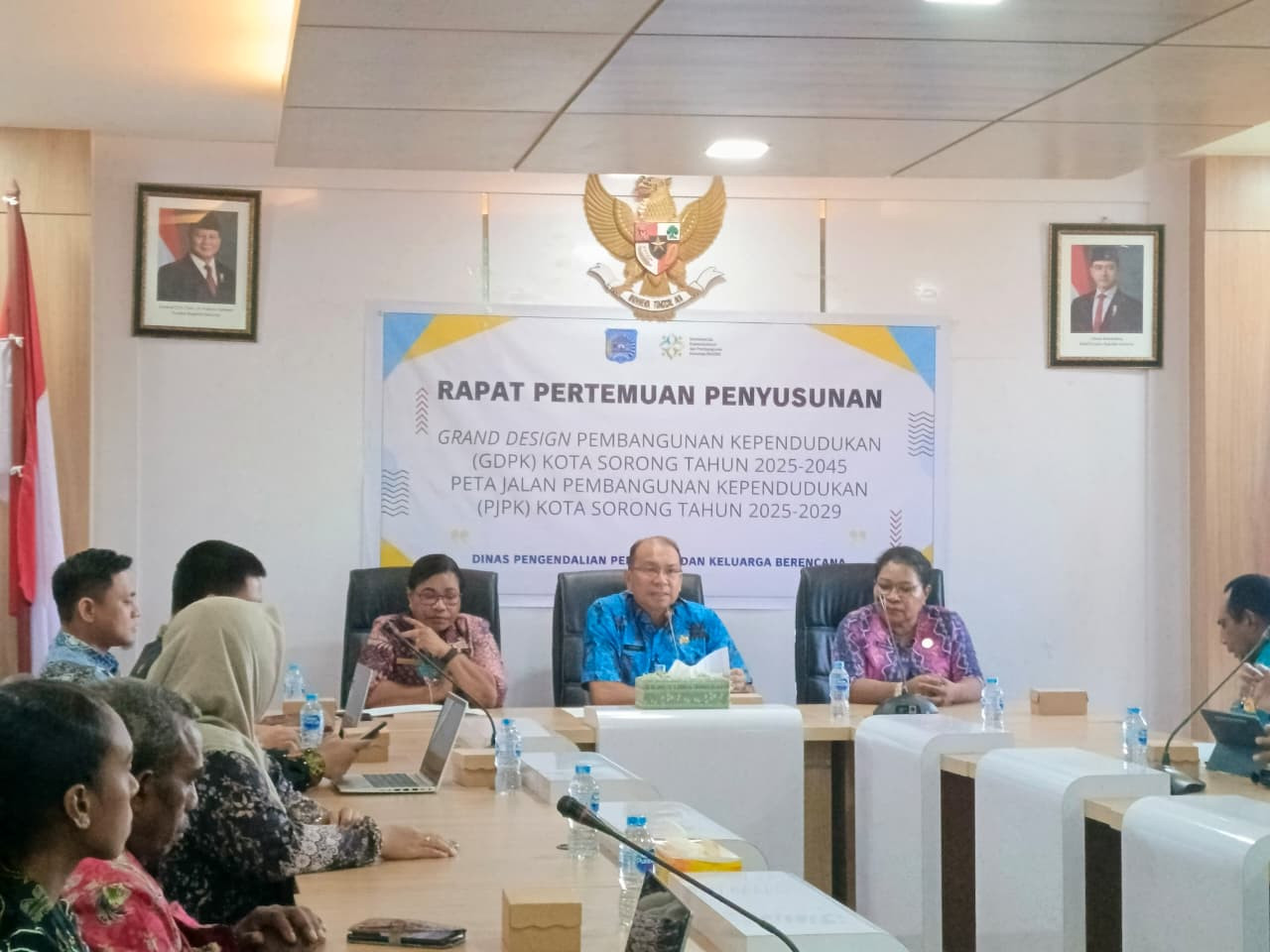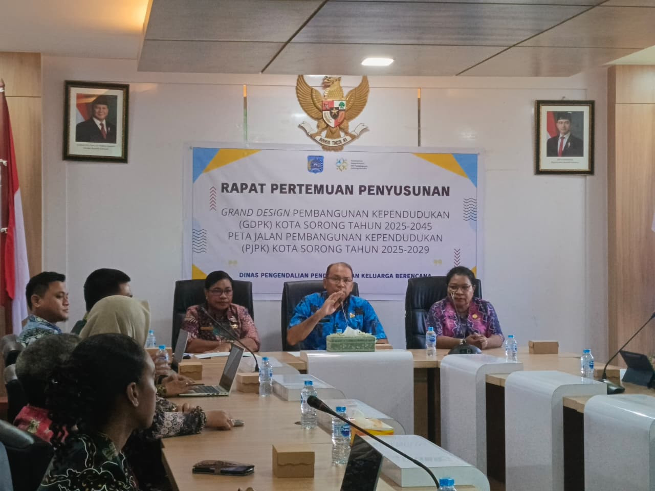 Pemerintah Kota Sorong melaksanakan Penyusunan Dokumen Grand Design dan Peta Jalan Pembangunan Kependudukan sebagai instrumen perencanaan jangka panjang dan menengah untuk mengarahkan pembangunan kependudukan yang lebih terukur, terpadu, dan berkelanjutan.
