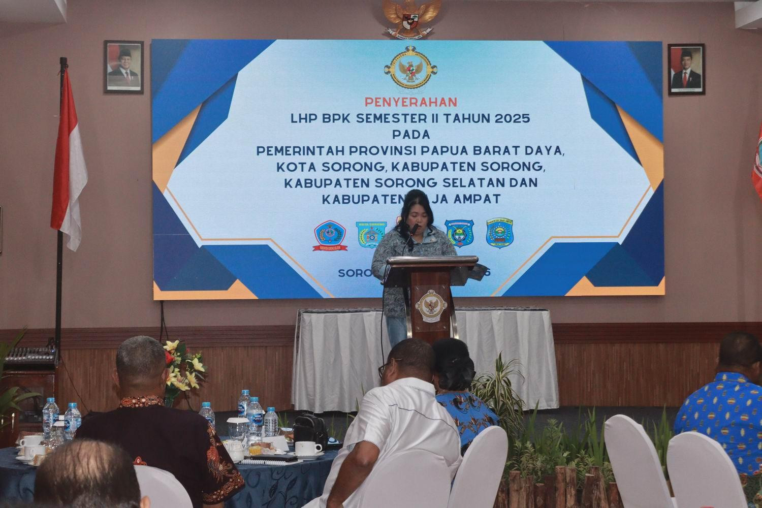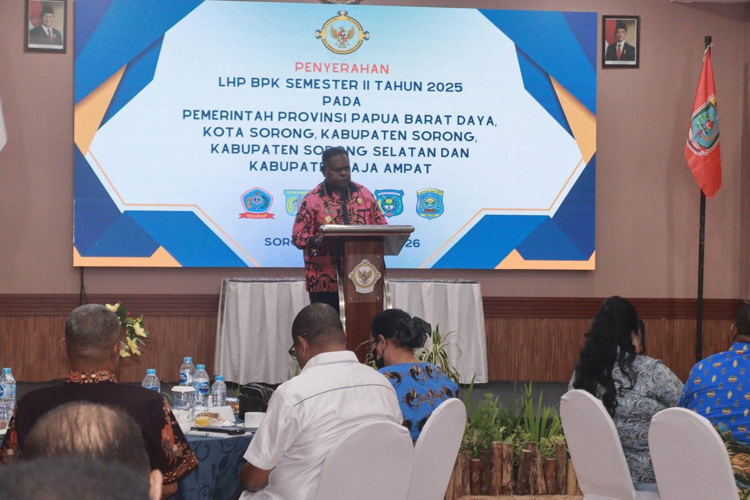 Kota Sorong - Pemerintah Kota Sorong menerima Laporan Hasil Pemeriksaan (LHP) Semester II Tahun 2025 dari Badan Pemeriksa Keuangan (BPK) RI Perwakilan Papua Barat Daya, yang memuat hasil pemeriksaan atas belanja daerah serta sejumlah rekomendasi perbaikan tata kelola keuangan daerah, di Hotel Vega Prime, Kamis (8/1/2026) pagi.