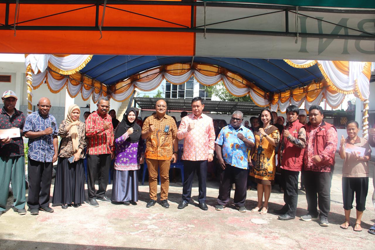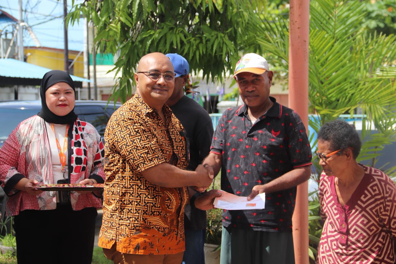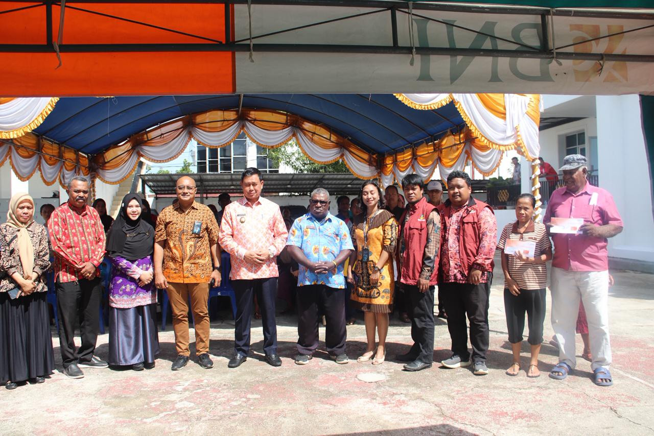 KOTA SORONG - Wakil Wali Kota Sorong, H. Asnhar Karim, A.Md., Hadir sekaligus menyerahkan Kartu Keluarga Sejahtera Dan Kartu ATM Hasil Pembukuan Rekening Kolektif Tahun 2025 Triwulan ke-2 Kepada Penerima Bantuan Program Keluarga Harapan Dan Bantuan Pangan Non Tunai (BPNT) Di Kota Sorong secara simbolis di Kantor Bank BNI Cabang Sorong. Kamis, (18/9/2025).