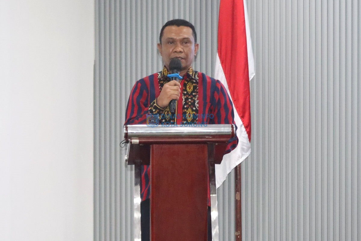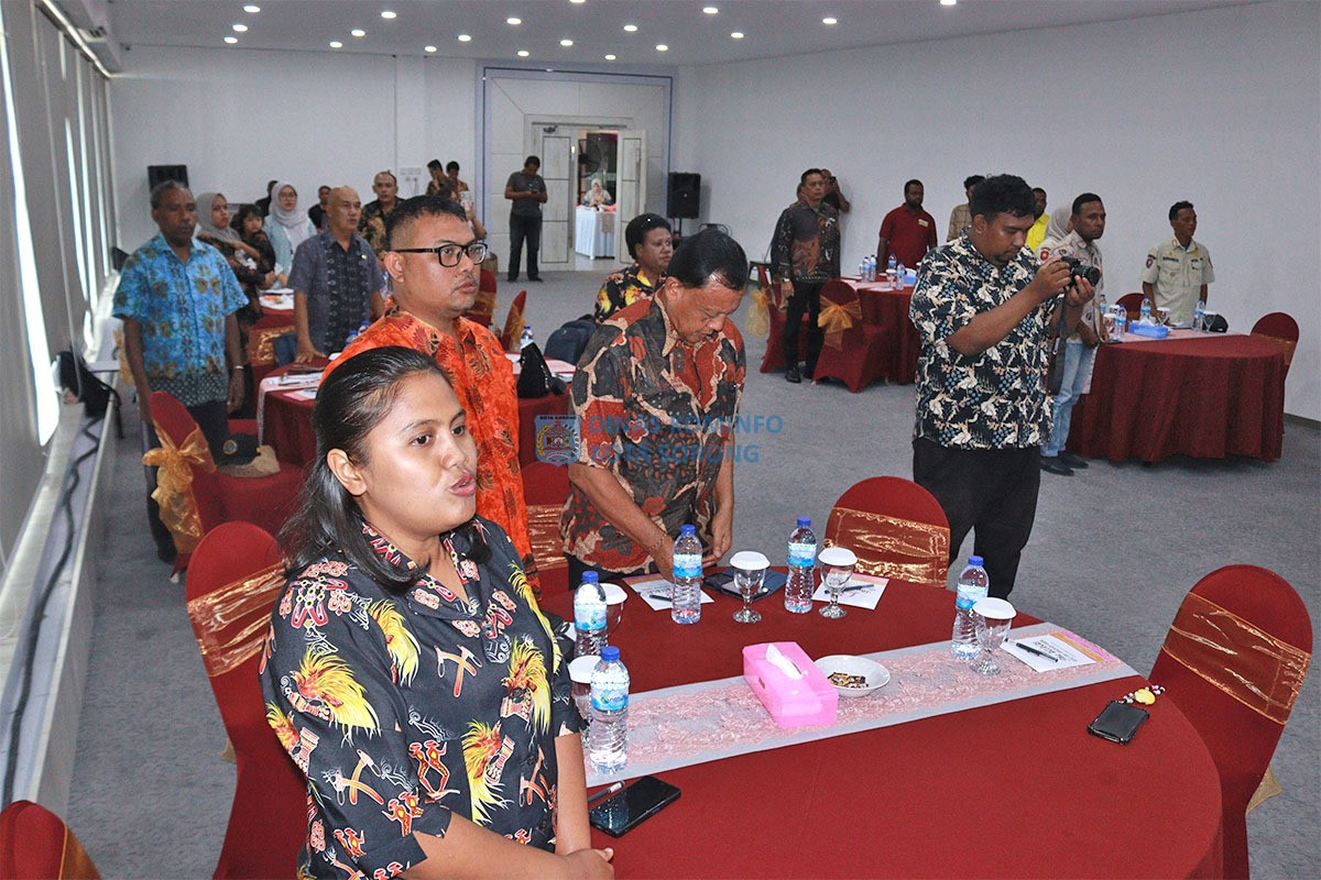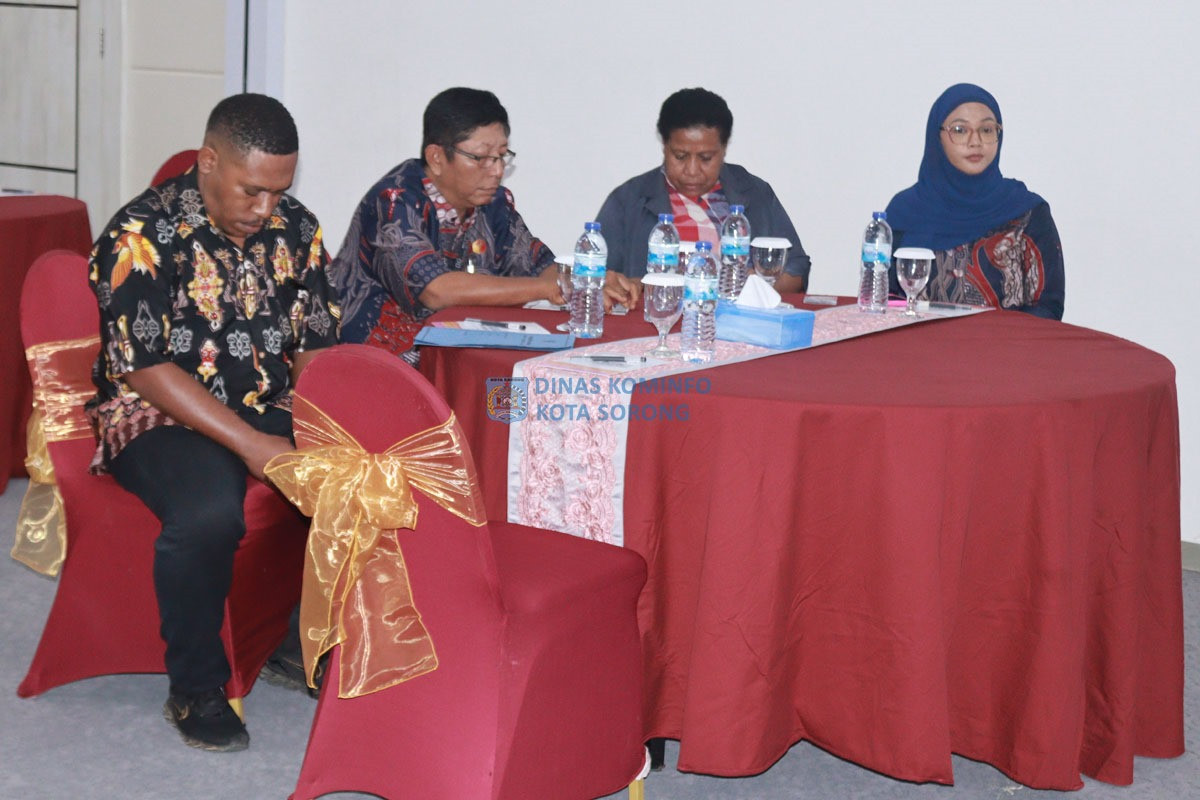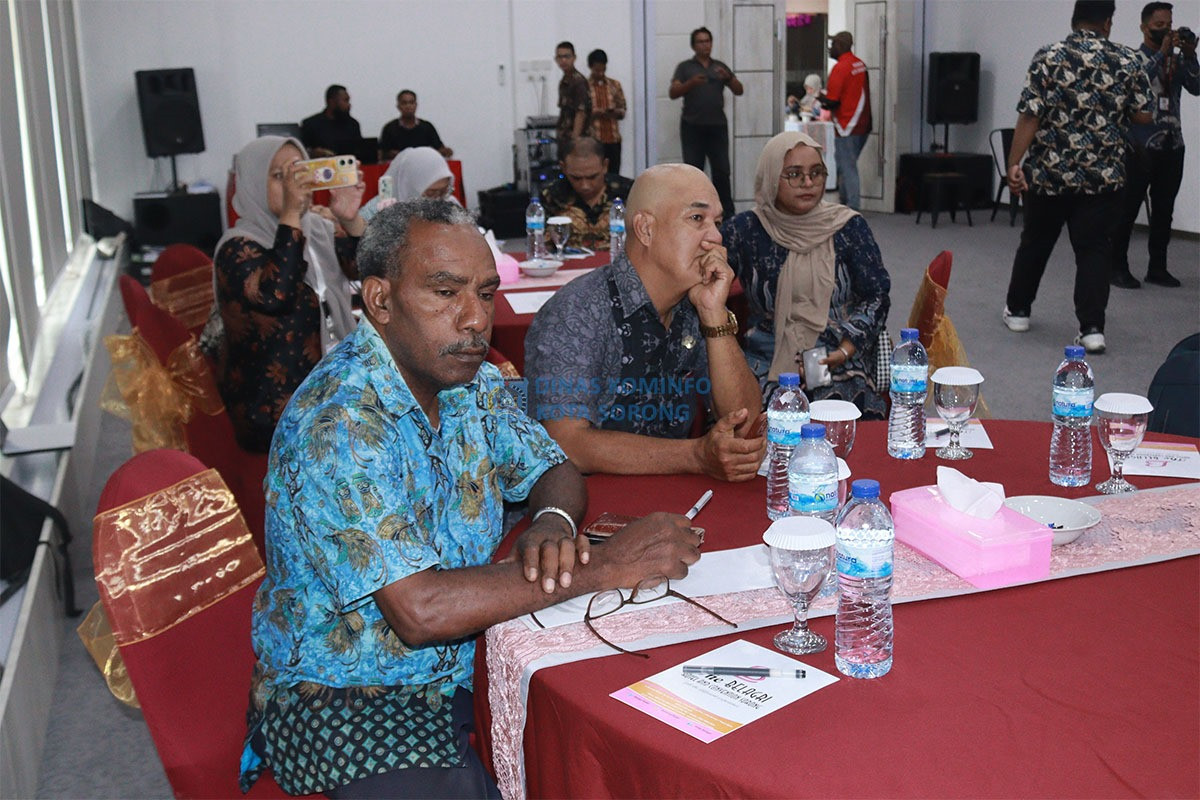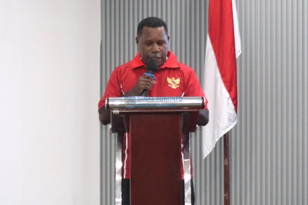 Mewakili Wali Kota Sorong, Kepala Badan Kesbangpol, Hendrikus Momot, S.E., membuka kegiatan Penguatan Kelembagaan Pengawas Pemilu, yang ditandai dengan penabuhan tifa di Hotel Belagri Sorong, Jumat (15/8/2025) sore.