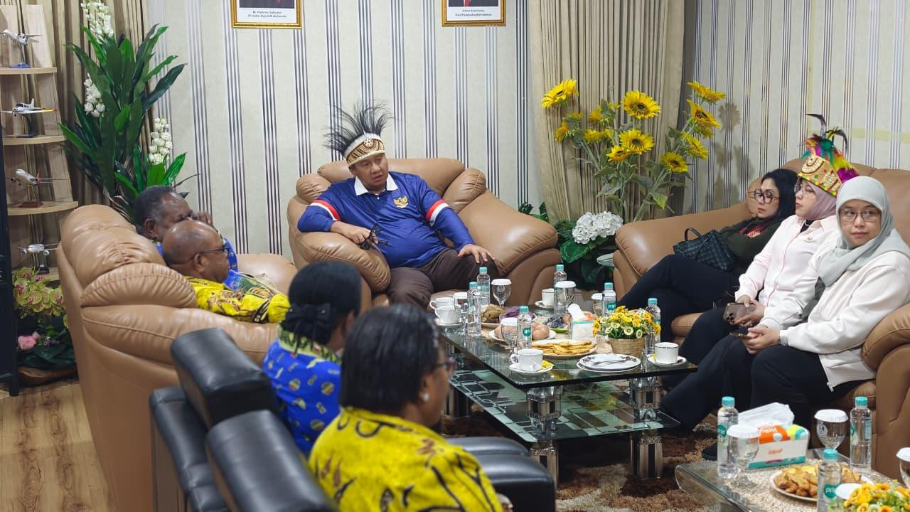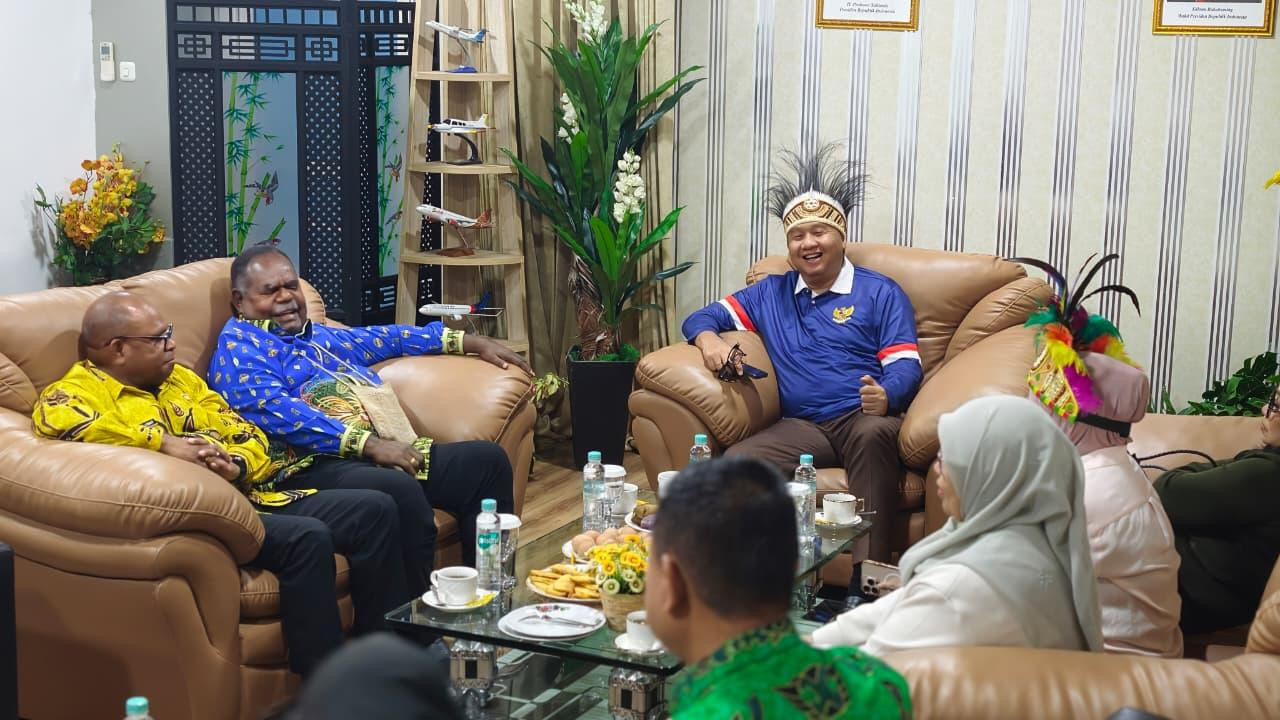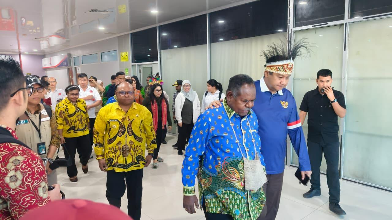 Kota Sorong - Sabtu 25 April, Kunjungan kerja Menteri Perumahan Maruarar Sirait, Disambut oleh Gubernur Papua Barat Daya Elisa Kambu S.Sos., Wali Kota Sorong Septinus Lobat S.H.,MPA dan Wakil Wali Kota Sorong Anshar Karim A.Md., di bandara DEO Kota Sorong