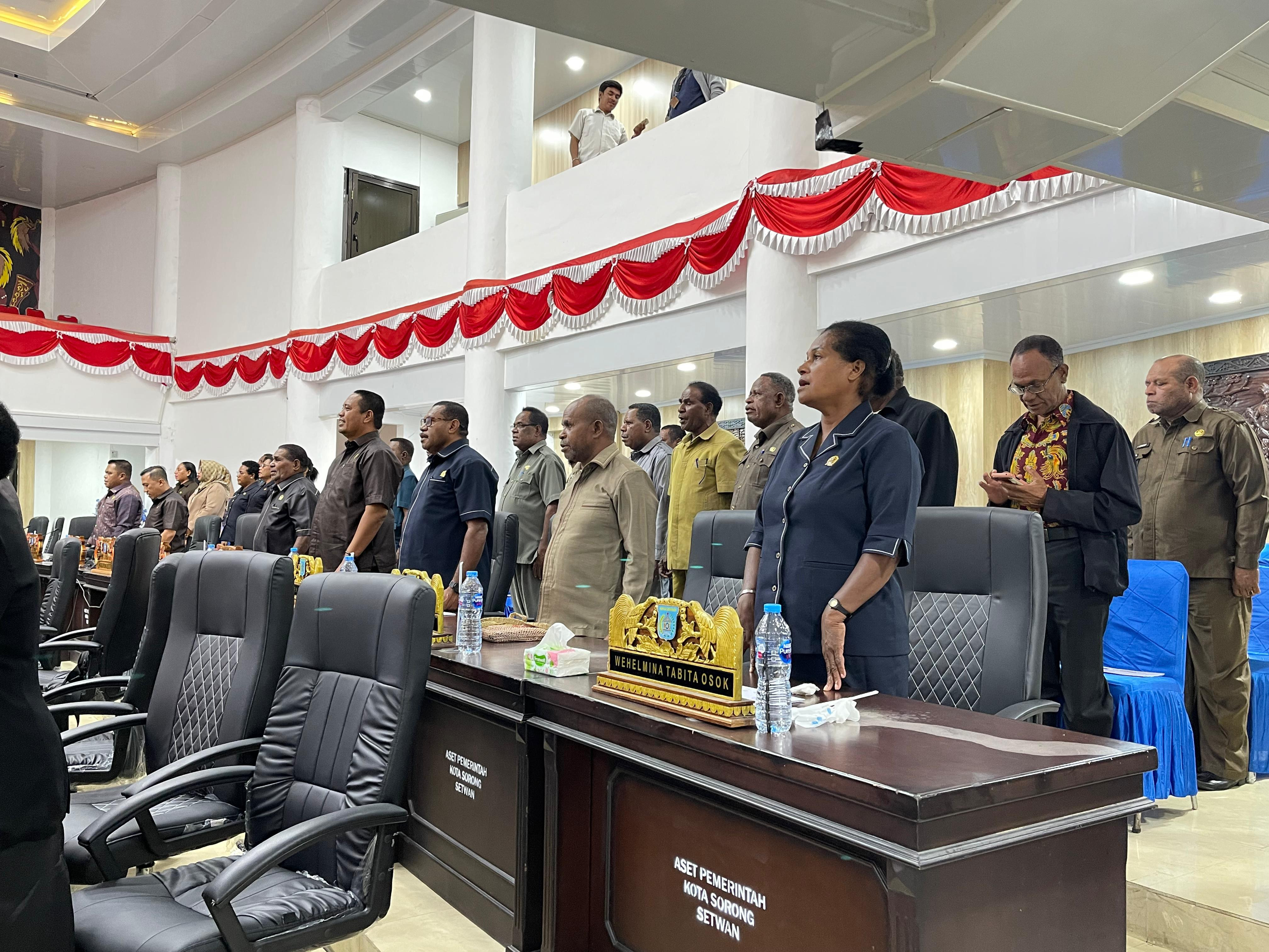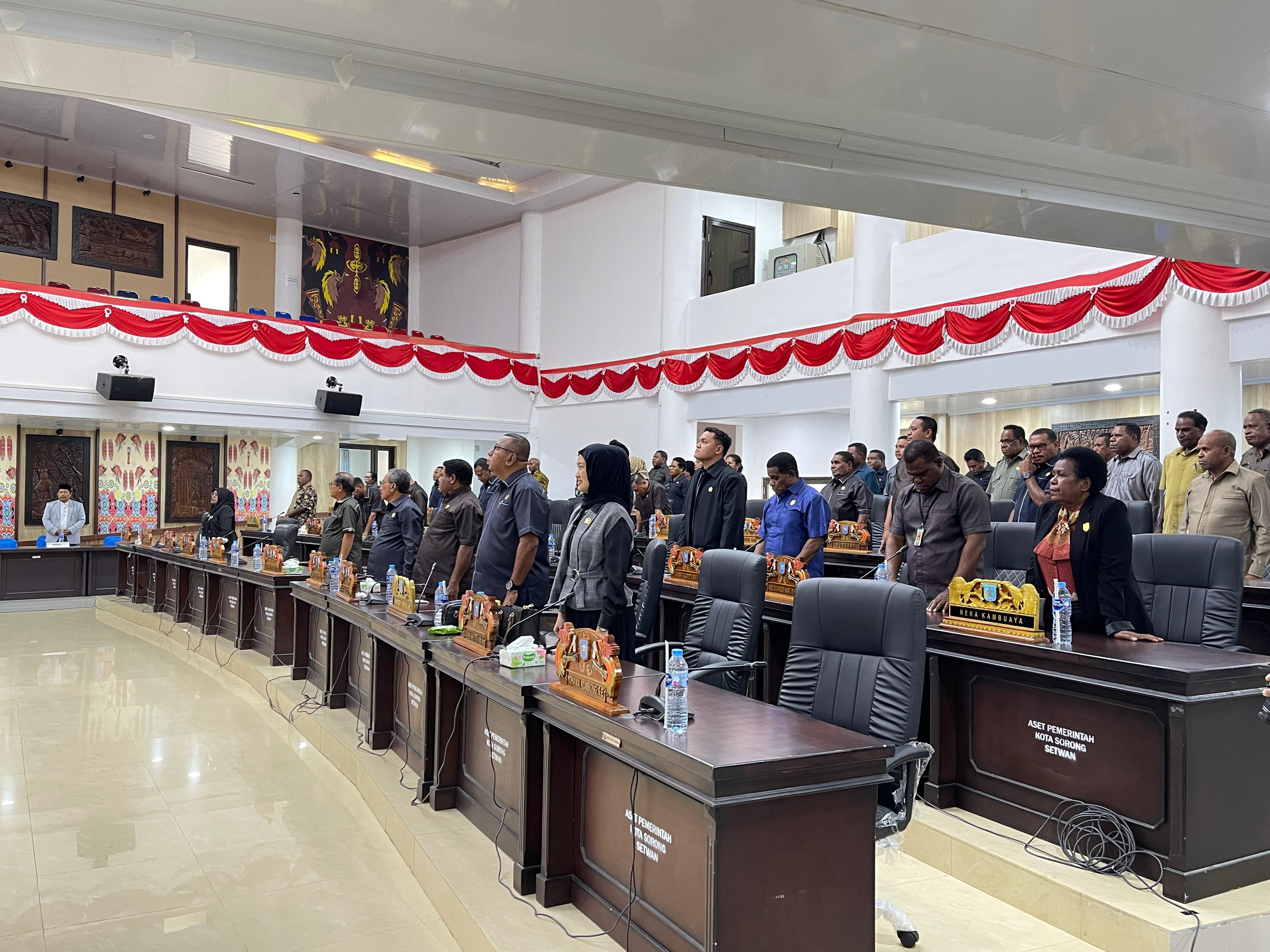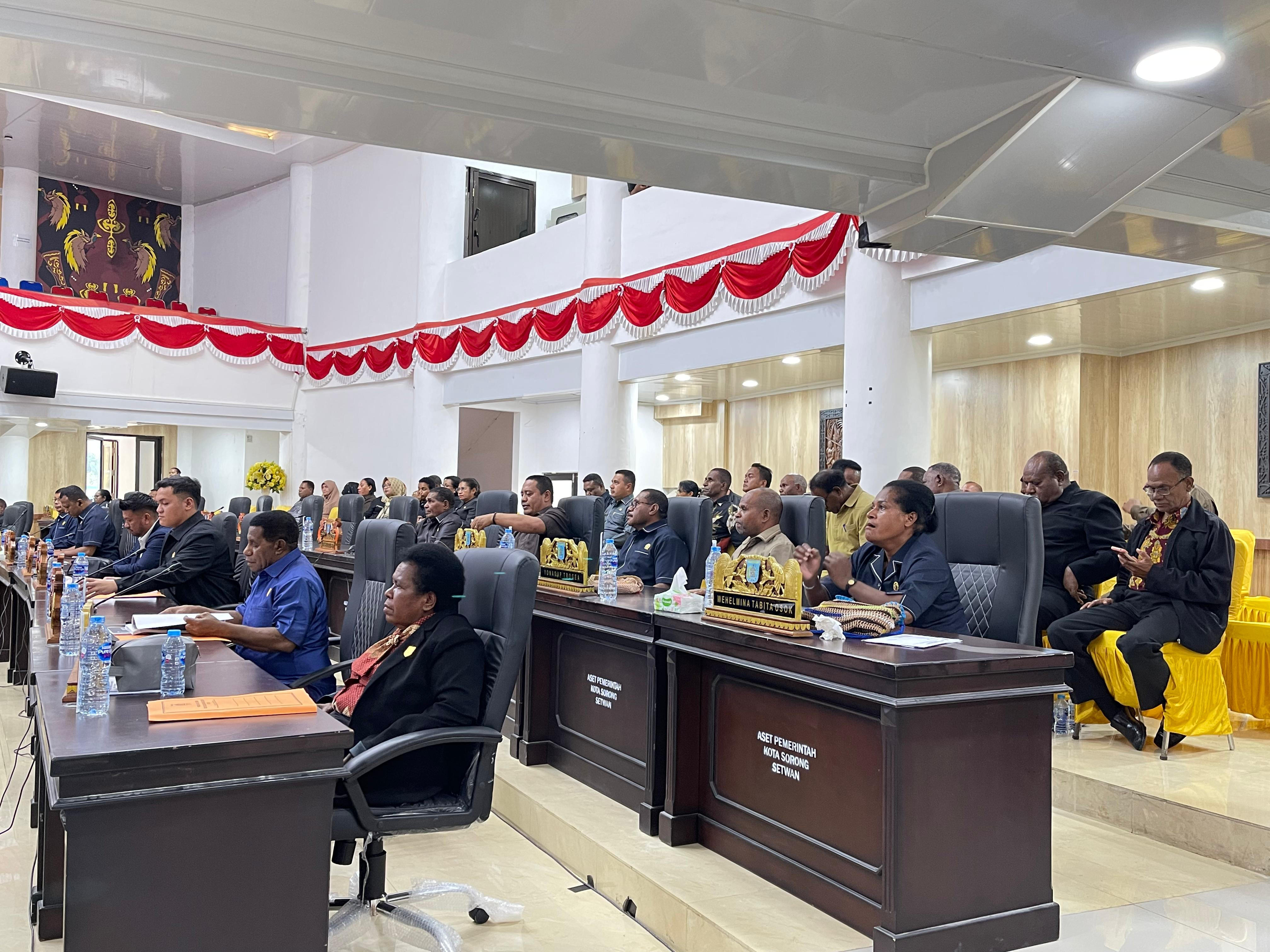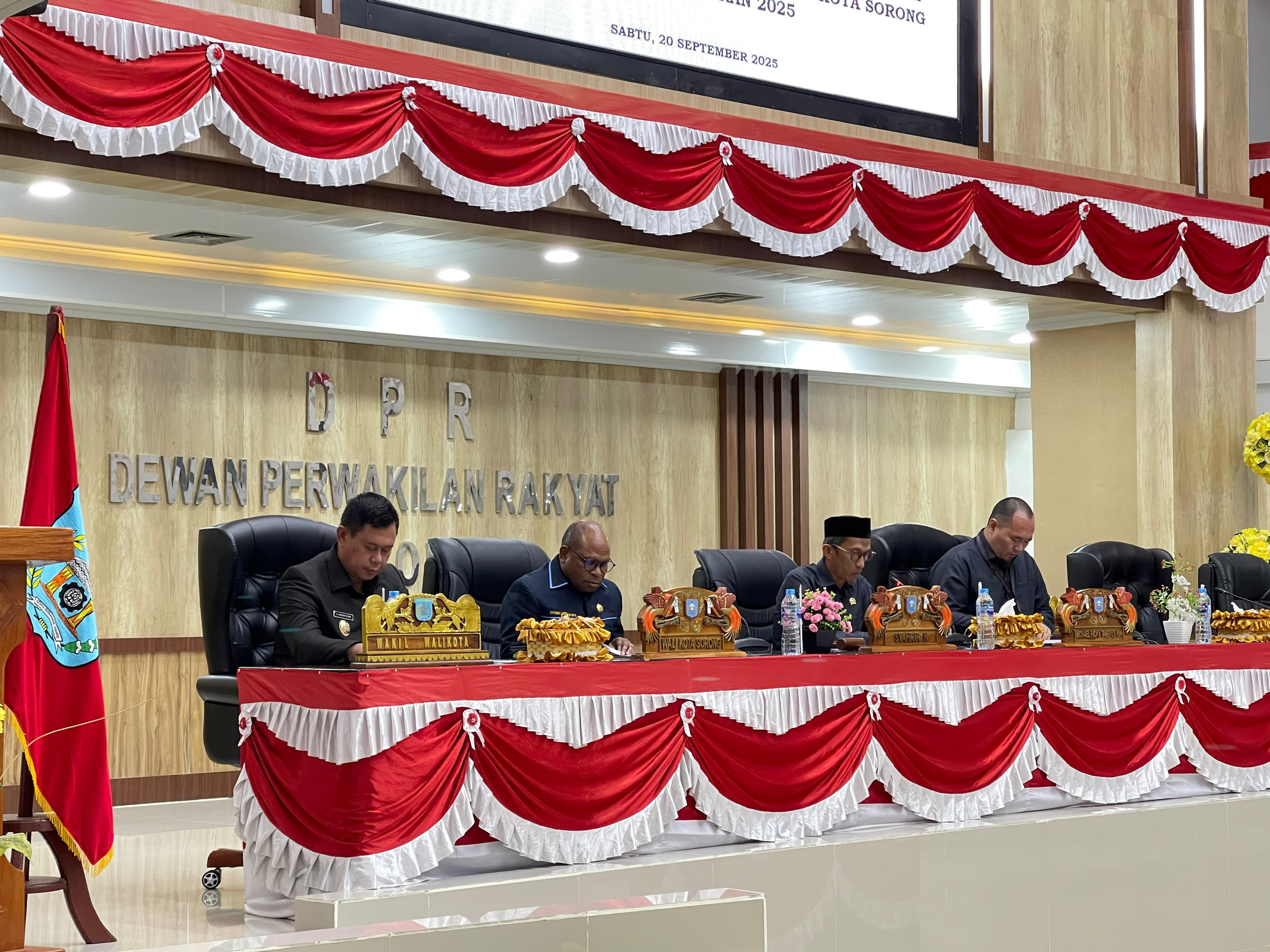Wali Kota Sorong, Septinus Lobat, S.H., MPA, bersama Wakil Wali Kota Sorong, H. Anshar Karim, A.Md., menghadiri Rapat Pleno XVII Rapat Paripurna XXIII DPRD Kota Sorong Masa Sidang Tahun 2025 dengan agenda penjelasan terhadap materi rancangan KUA dan PPAS RAPBD Perubahan Tahun Anggaran 2025. Berlangsung di Ruang Rapat Kantor DPRD Kota Sorong. Sabtu, (20/9/2025).