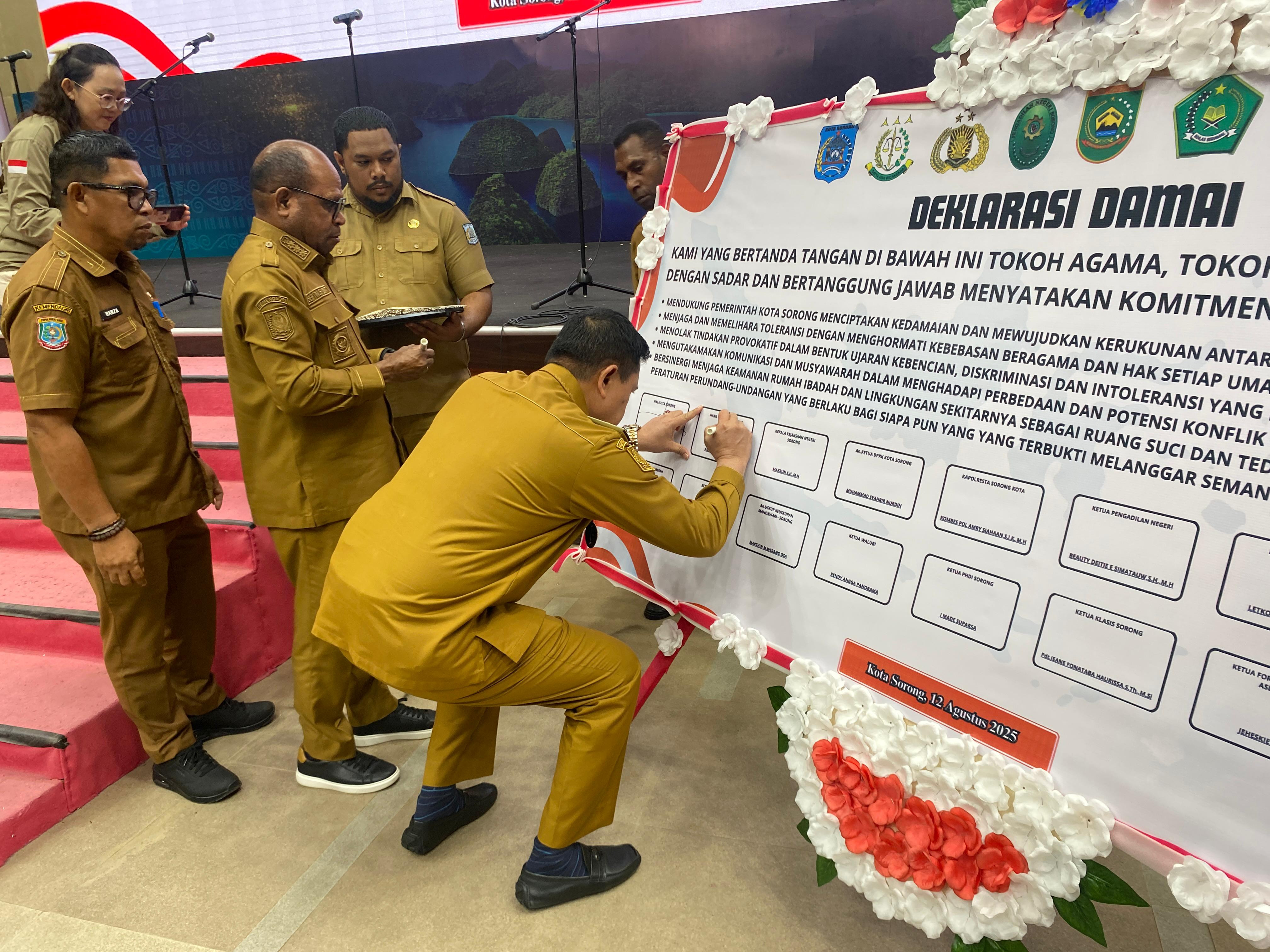 Pentas seni lintas agama dan Deklarasi Damai FKUB Kota Sorong, Sambut HUT RI-80 Tahun