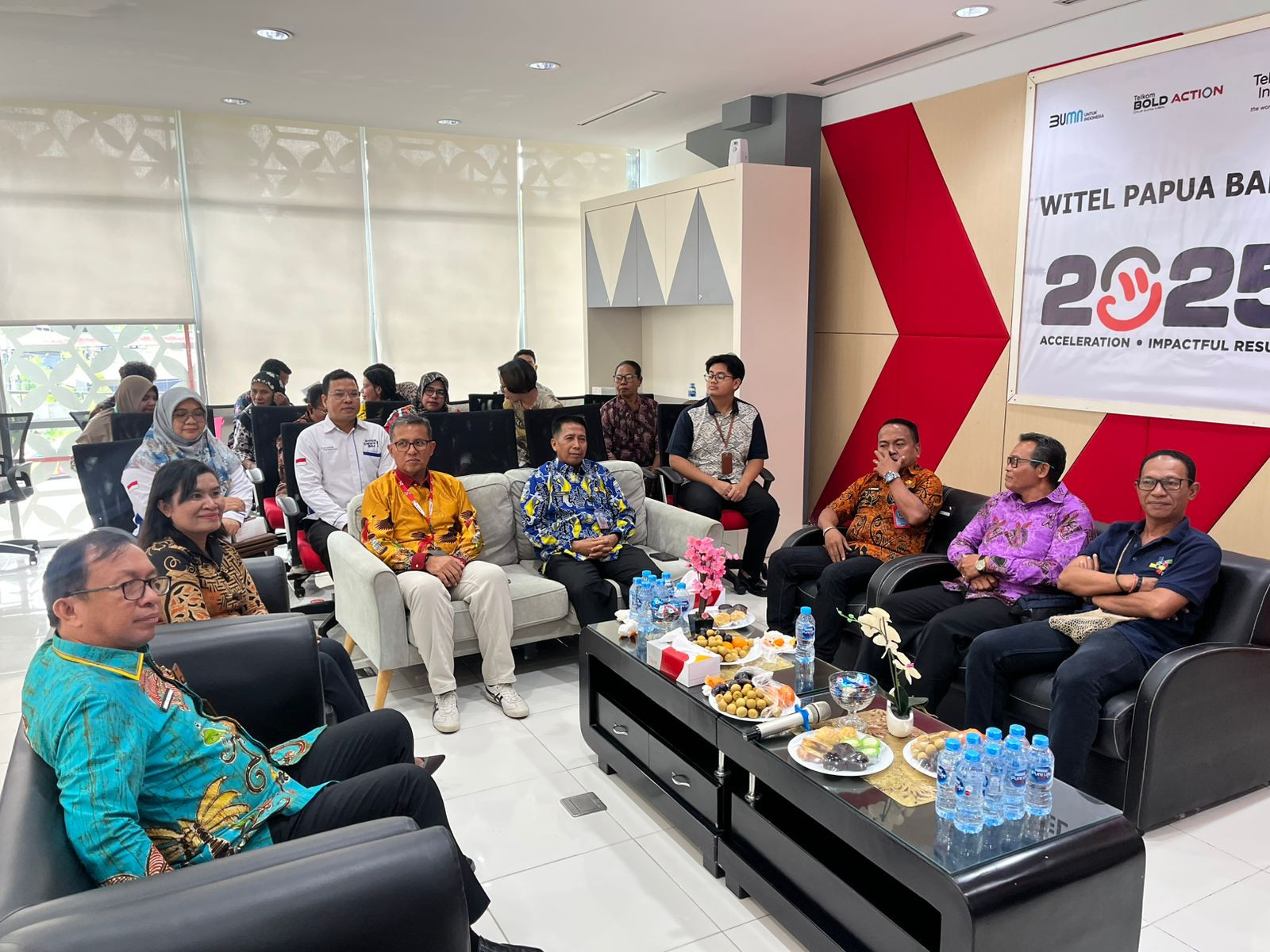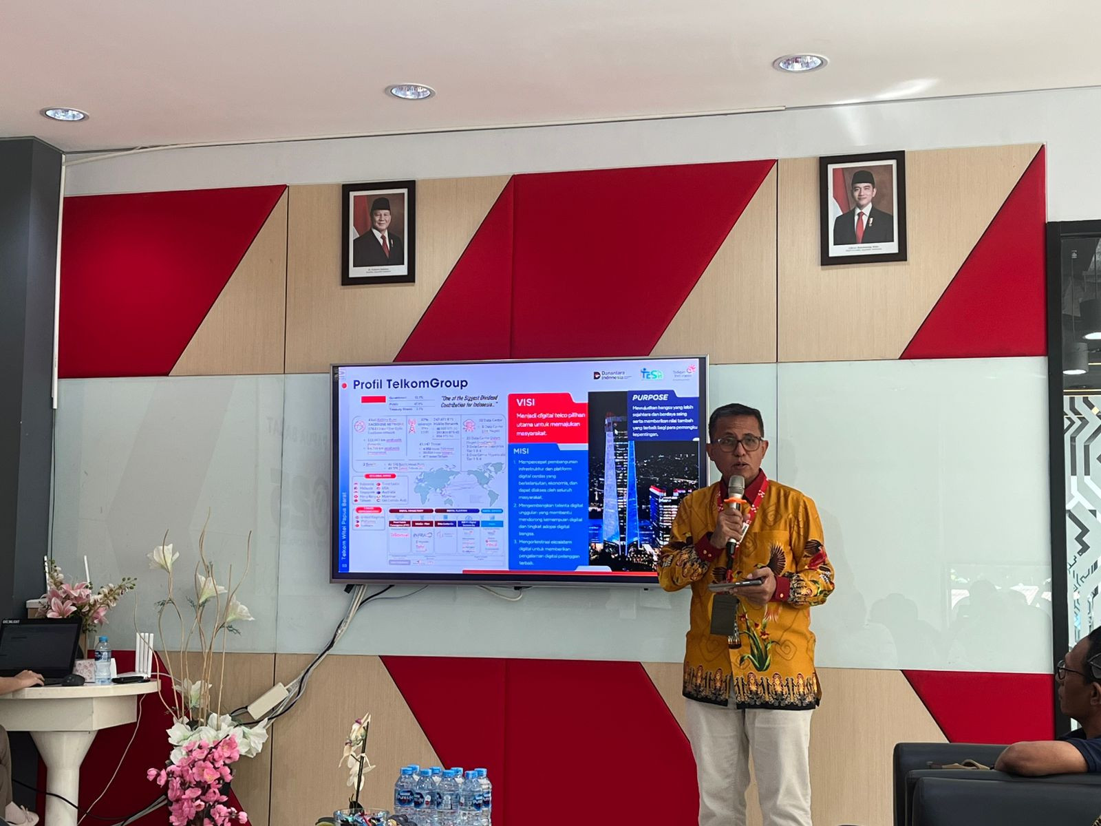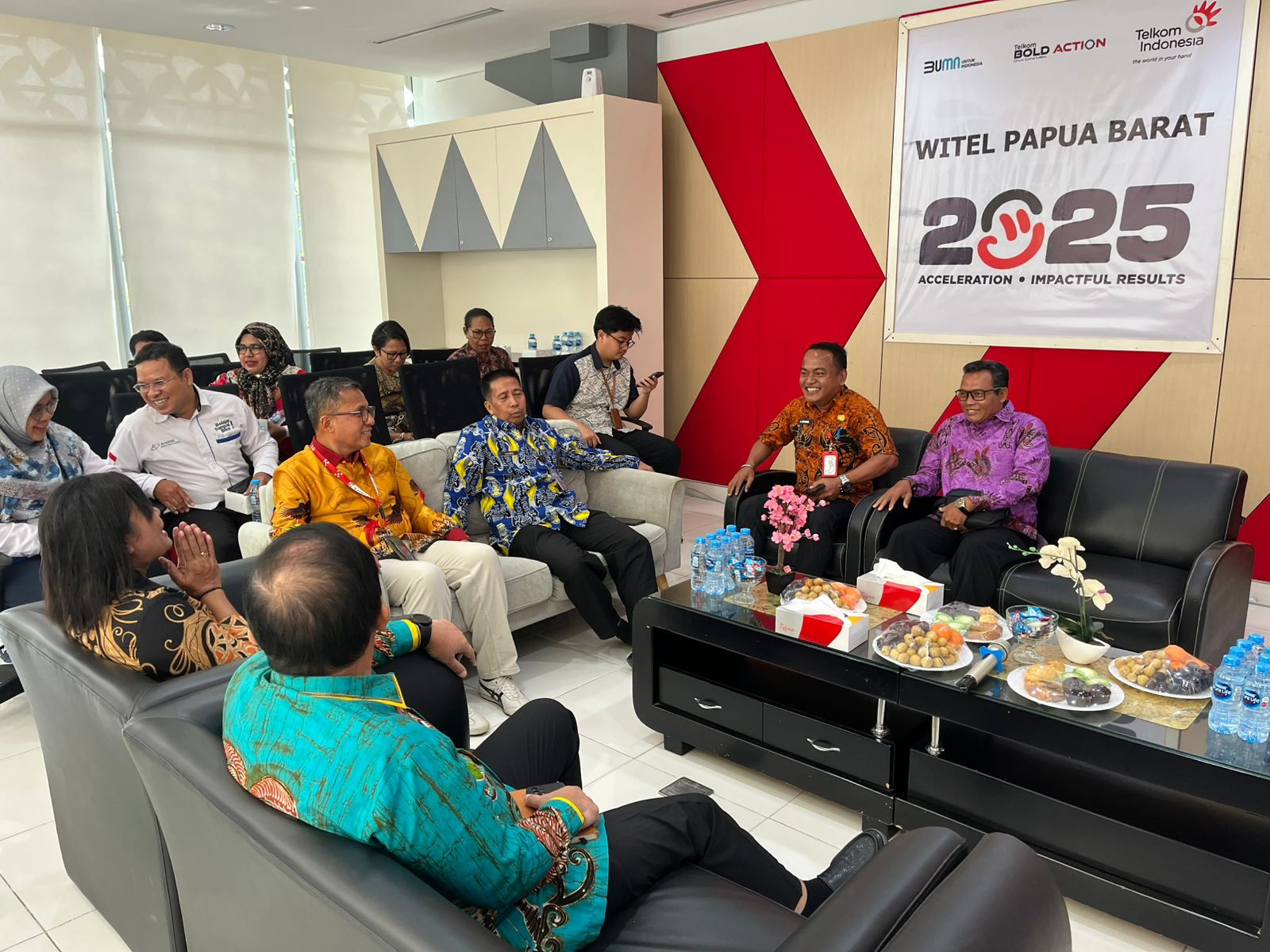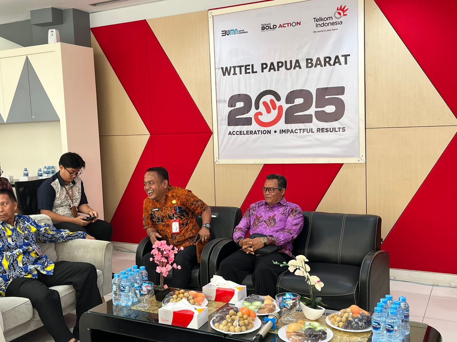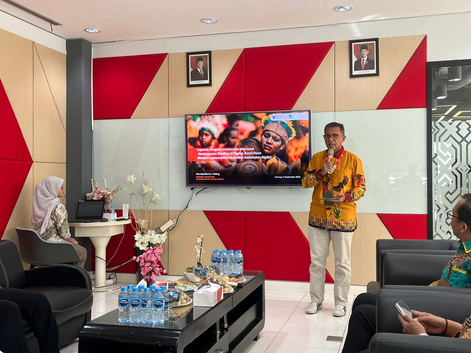 Kota Sorong - Wali Kota Sorong, Septinus Lobat, S.H., MPA., yang diwakili oleh Kepala Dinas Komunikasi dan Informatika (Kominfo) Kota Sorong, James Burung, S.Sos., M.M., menghadiri acara Penyampaian Laporan Program Kerjasama Intervensi Penanganan Stunting Melalui Dukungan Ekosistem Digital Di Papua Barat Daya Sorong. Kegiatan ini dilaksanakan di gedung Graha Merah Putih Telkom. Kamis, (04/12/2025)