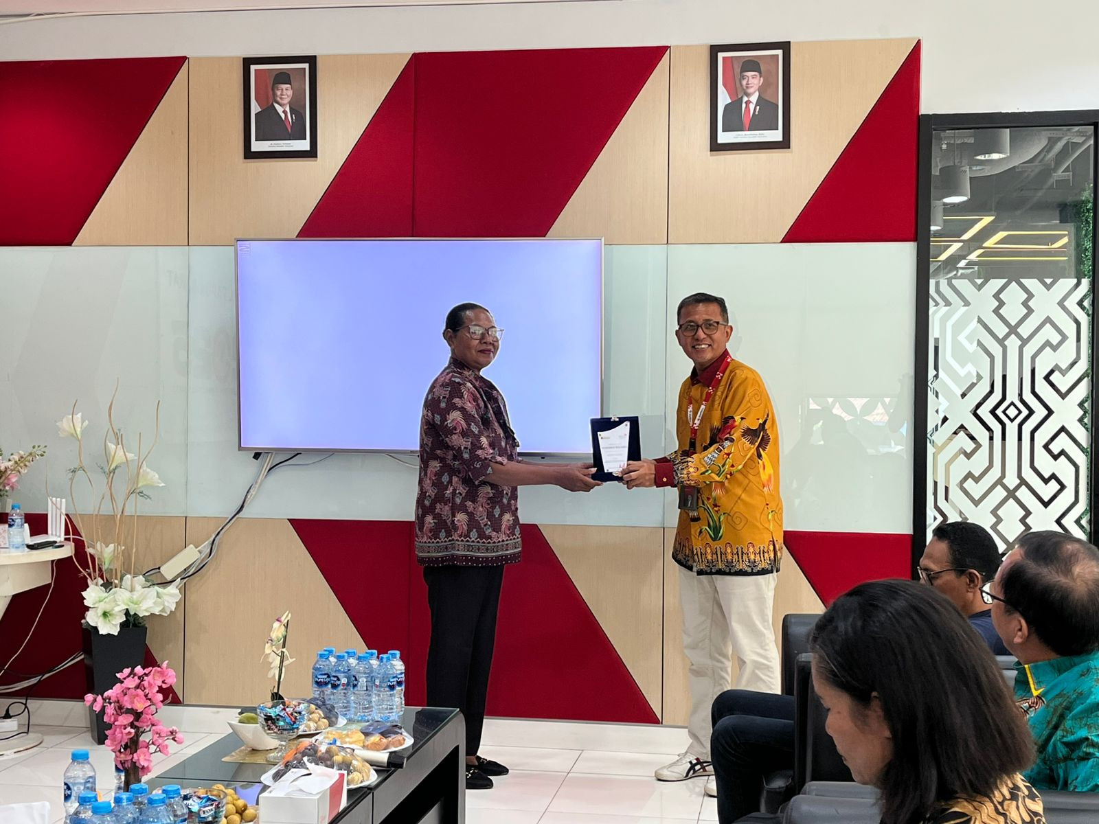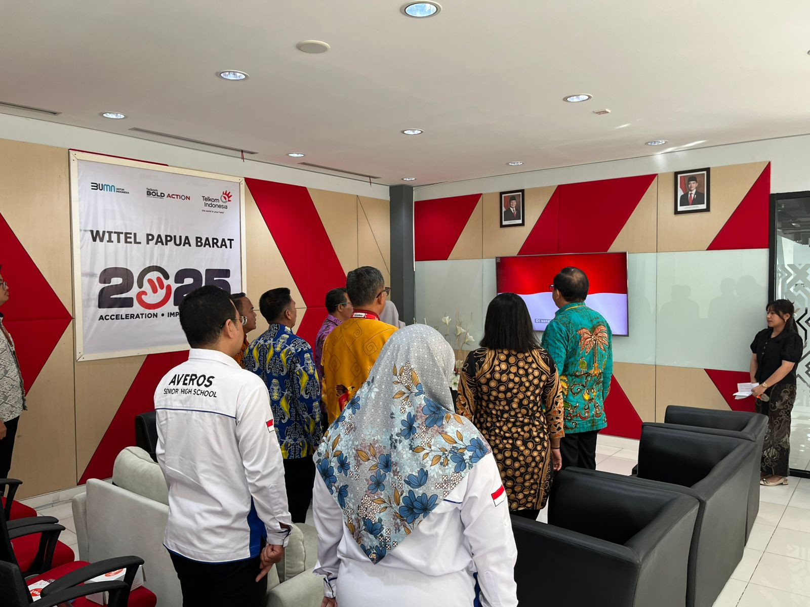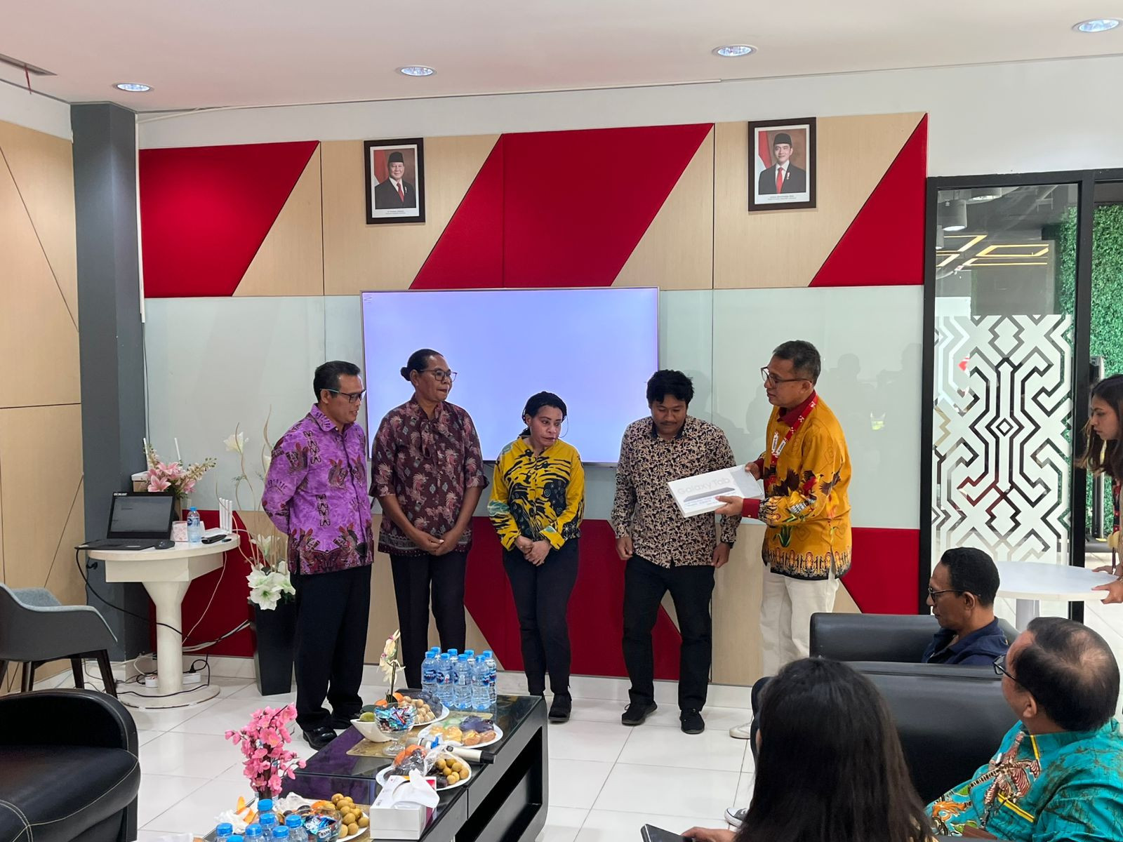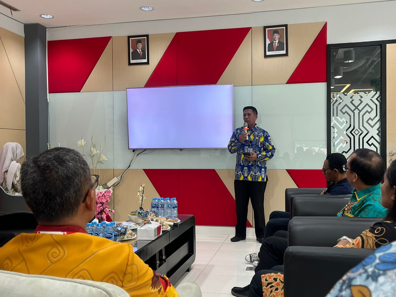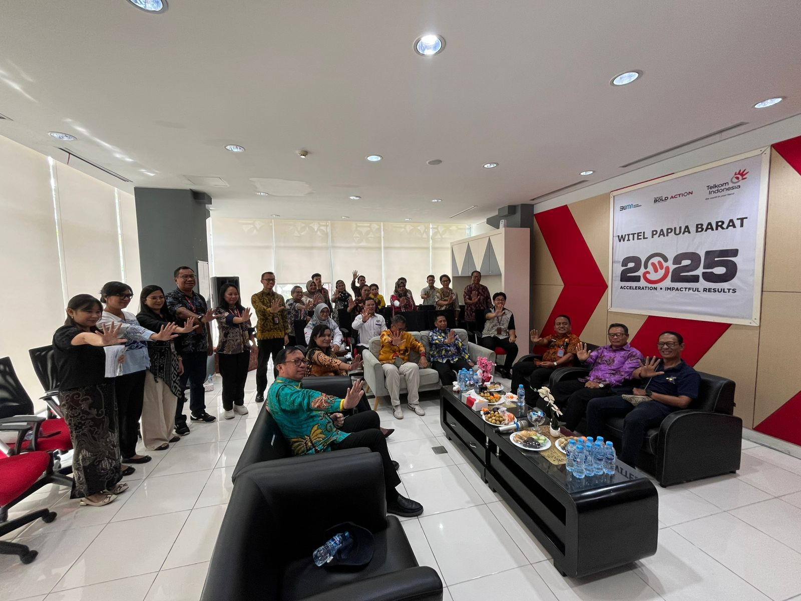 Kota Sorong - Wali Kota Sorong, Septinus Lobat, S.H., MPA., yang diwakili oleh Kepala Dinas Komunikasi dan Informatika (Kominfo) Kota Sorong, James Burung, S.Sos., M.M., menghadiri acara Penyampaian Laporan Program Kerjasama Intervensi Penanganan Stunting Melalui Dukungan Ekosistem Digital Di Papua Barat Daya Sorong. Kegiatan ini dilaksanakan di gedung Graha Merah Putih Telkom. Kamis, (04/12/2025)