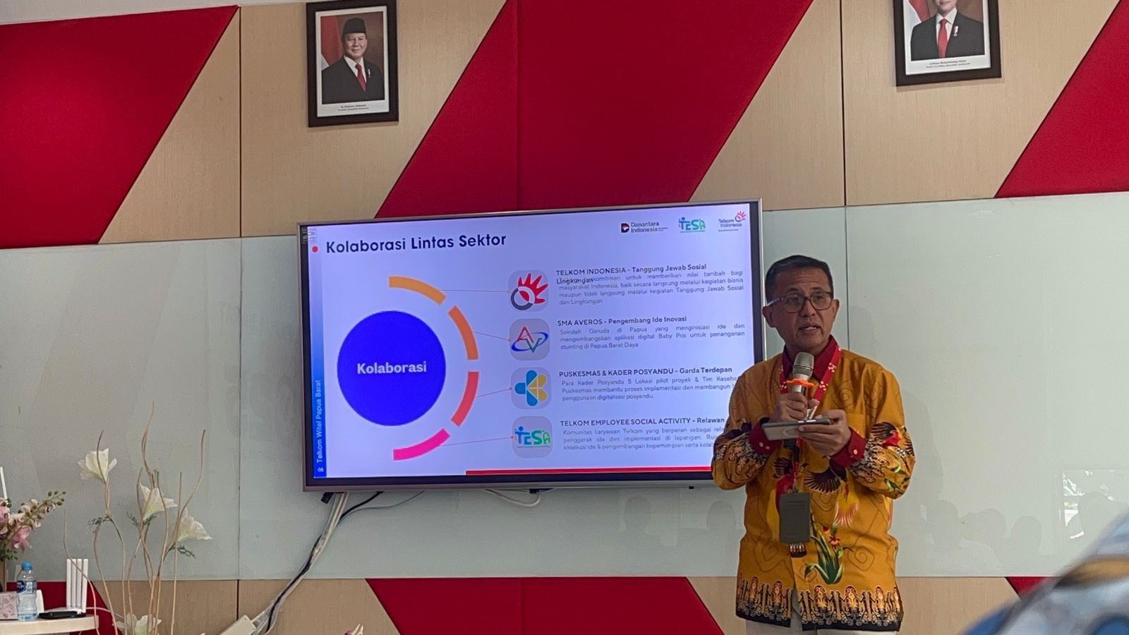 Dalam kegiatan tersebut General Manager Telkom Witel Papuq Barat Erick M. Tobing menjelaskan terkait profil Telkom dan program yang ada pada telkom serta salah satu program Kerjasama Intervensi Penanganan Stunting Melalui Dukungan Ekosistem Digital Di Papua Barat Daya menggunakan aplikasi Baby Pos karya dari siswa-siswi SMA Averos Sorong yang bekerjasama dengan beberapa Posyandu dan juga Telkom sebagai yang memberikan dana untuk mengembangkan aplikasi tersebut. Aplikasi Baby Pos ini berguna bagi para kader-kader posyandu untuk mendata dan memantau perkembangan anak-anak sekaligus mencegah stunting. Dimana dengan adanya aplikasi Baby Pos diharapkan orang tua dapat membawa anak-anaknya ke Posyandu tanpa perlu membawa buku KIA (Kesehatan Ibu dan Anak) dan bisa juga memantau perkembangan anak secara mandiri melalui aplikasi Baby Pos.