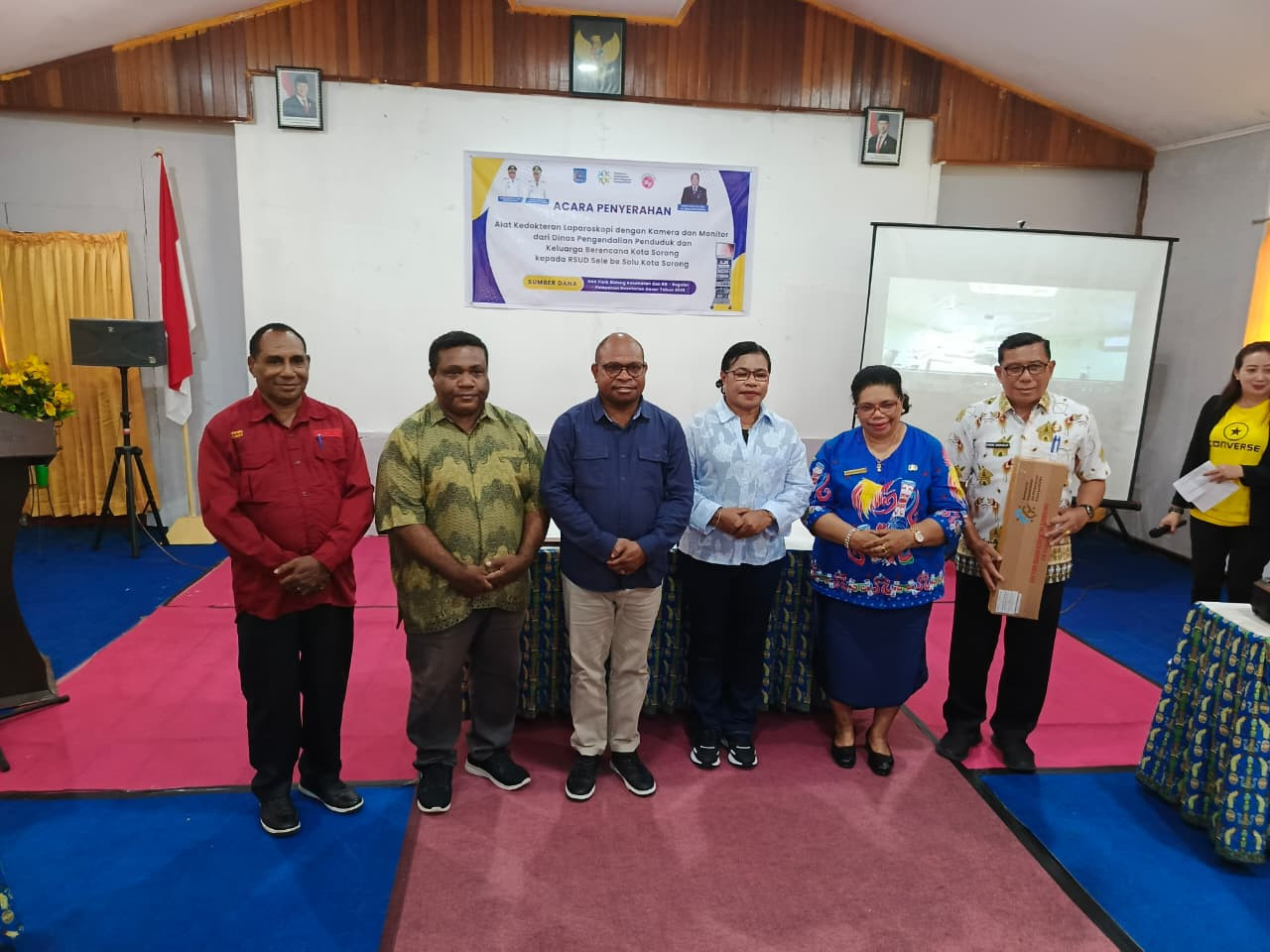 Dalam hal ini, Pjs. BKKBN Kota Sorong yang menjabat juga sebagai Plt. Kepala Dinas Kesehatan Kota Sorong, Jemima Elisabeth Lobat, S.KM., MAP., menyerahkan alat Laparoskopi kepada Rumah Sakit Sele Be Solu sebagai bentuk dukungan untuk Meningkatkan Mutu Pelayanan Lesehatan di Kota Sorong.