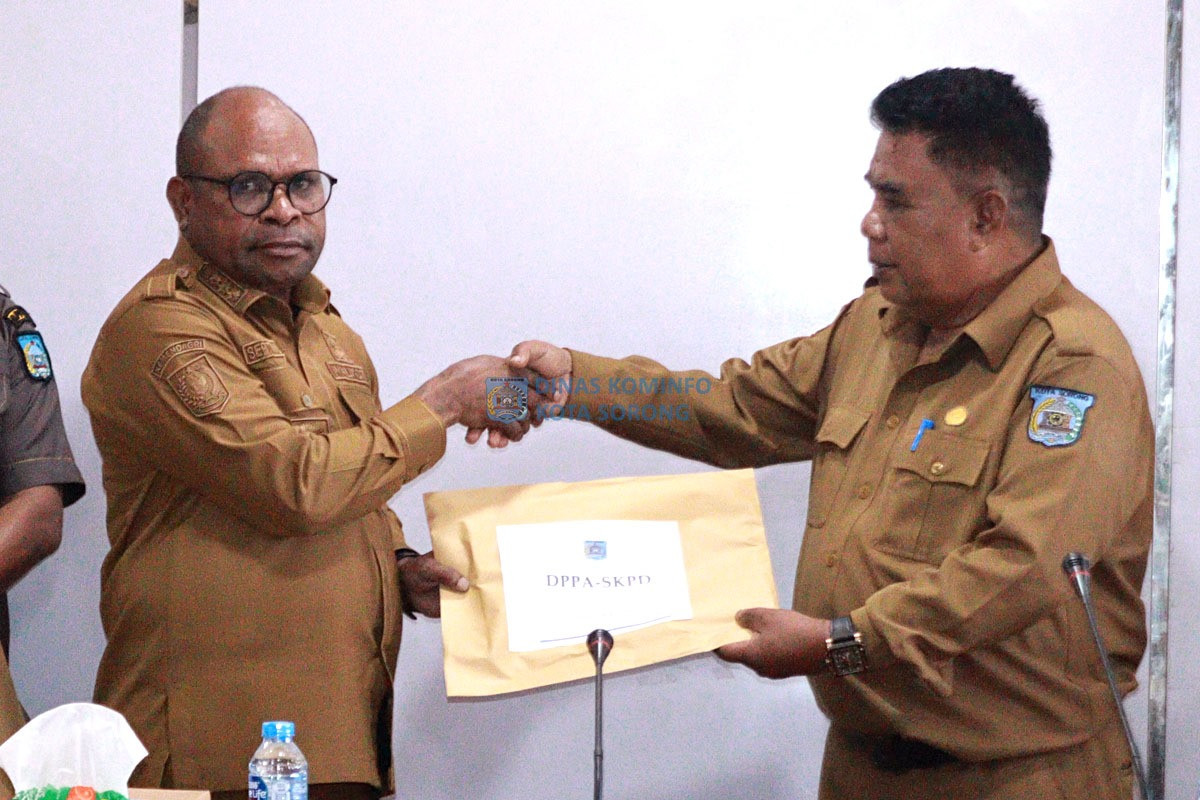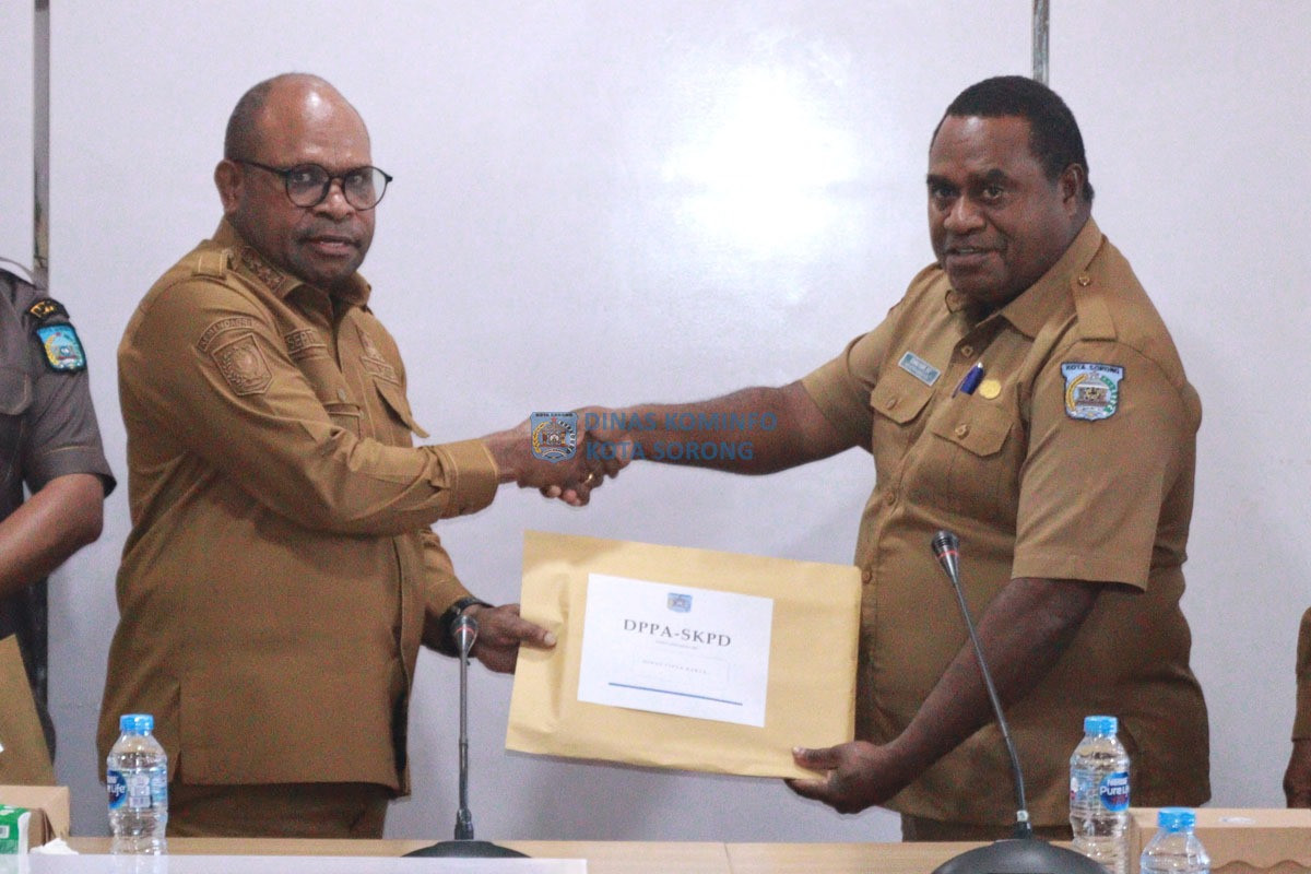 Hal ini disampaikannya seusai menyerahkan Dokumen Pelaksanaan Anggaran (DPA) Perubahan Satuan Kerja Perangkat Daerah (SKPD) Tahun Anggaran 2025, yang dilakukan secara simbolis kepada tiga perwakilan OPD, yaitu Badan Pengelolaan Pajak dan Retribusi Daerah, Dinas Cipta Karya, dan Dinas Perikanan, yang berlangsung di Ruang Anggrek Kantor Wali Kota Sorong, Selasa (21/10/2025) sore.
