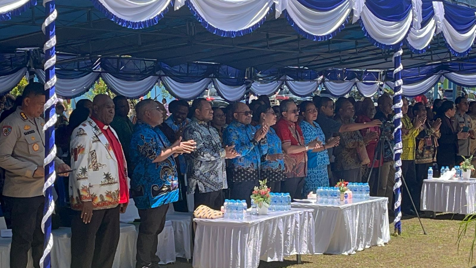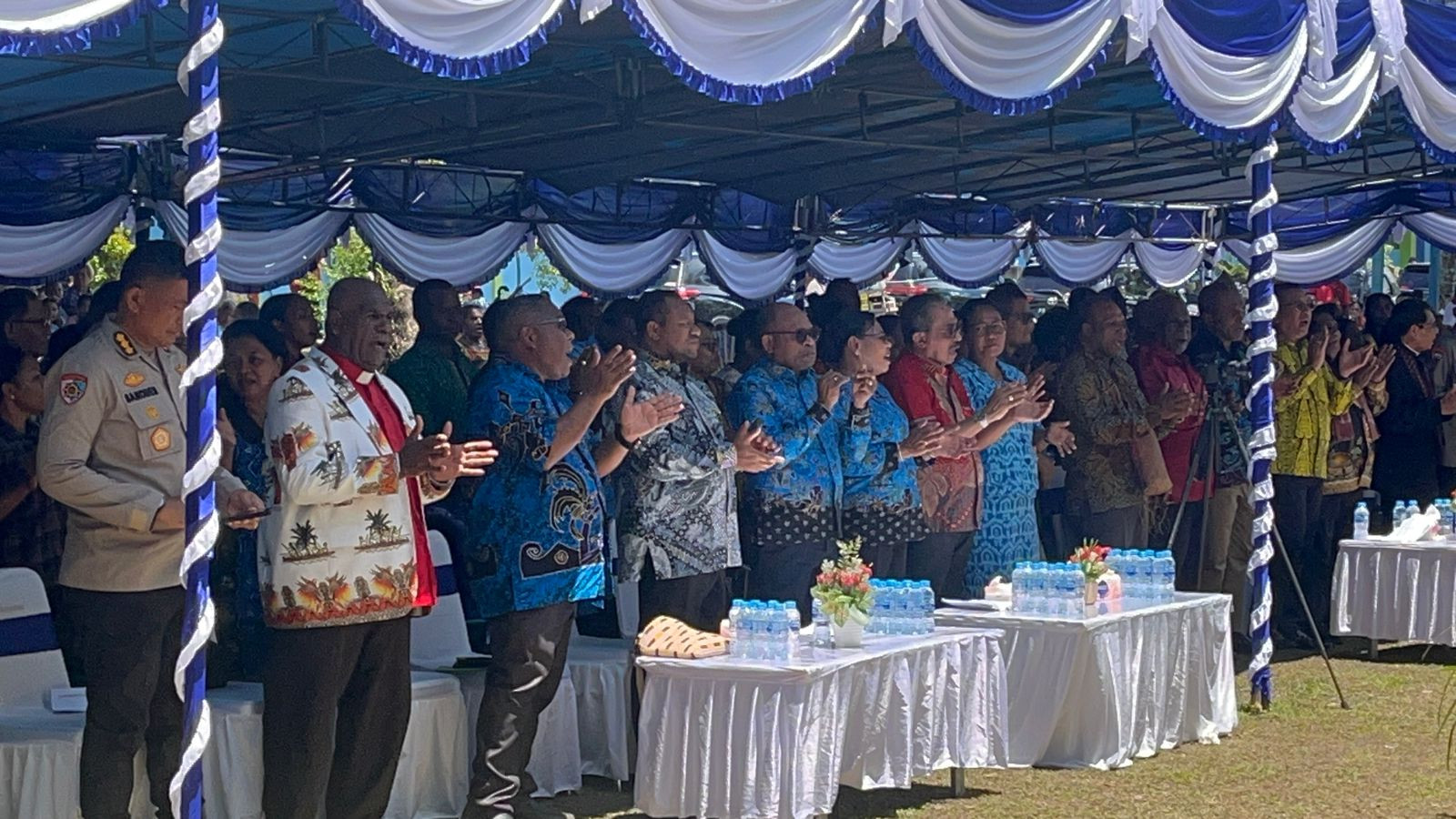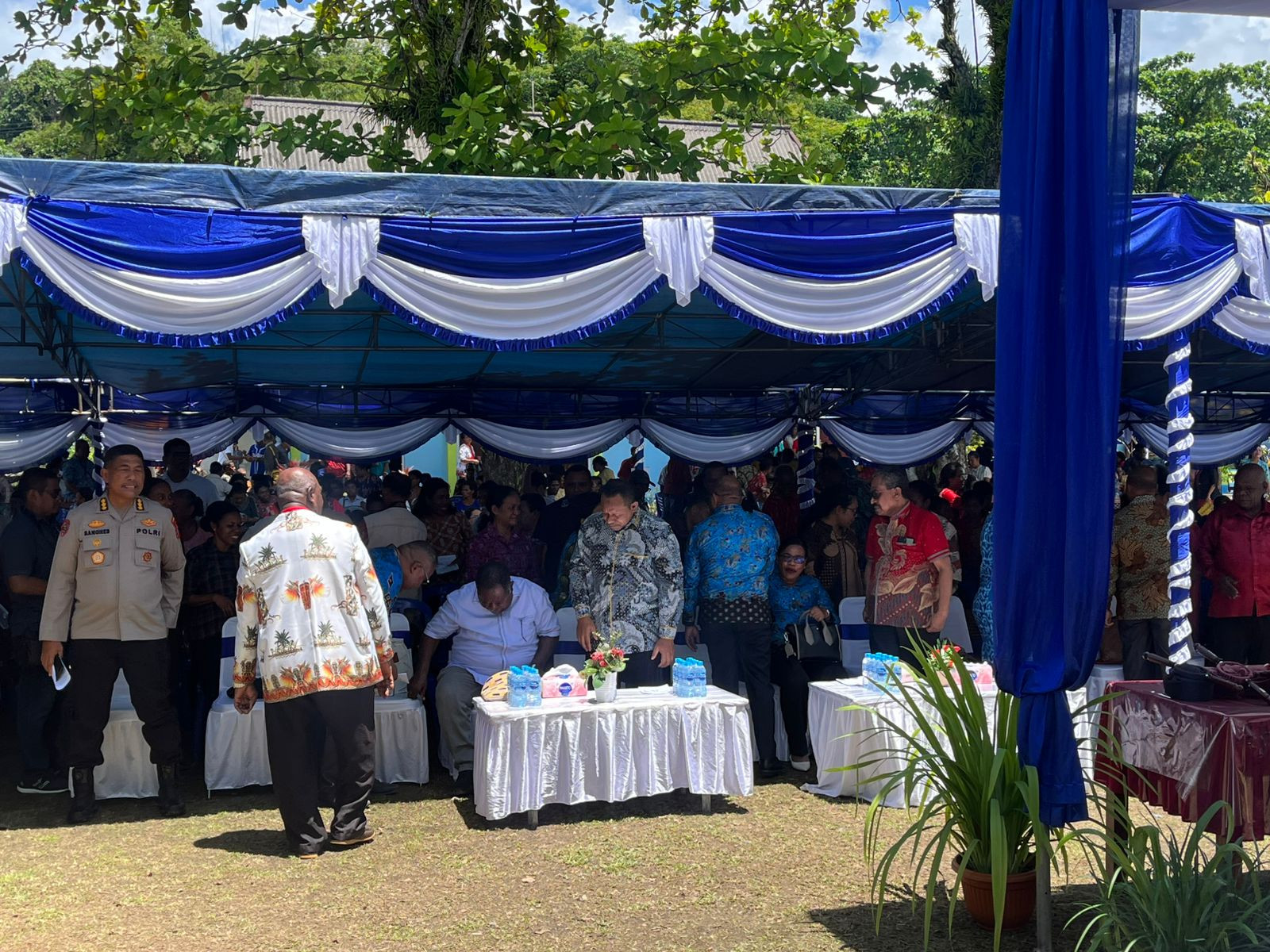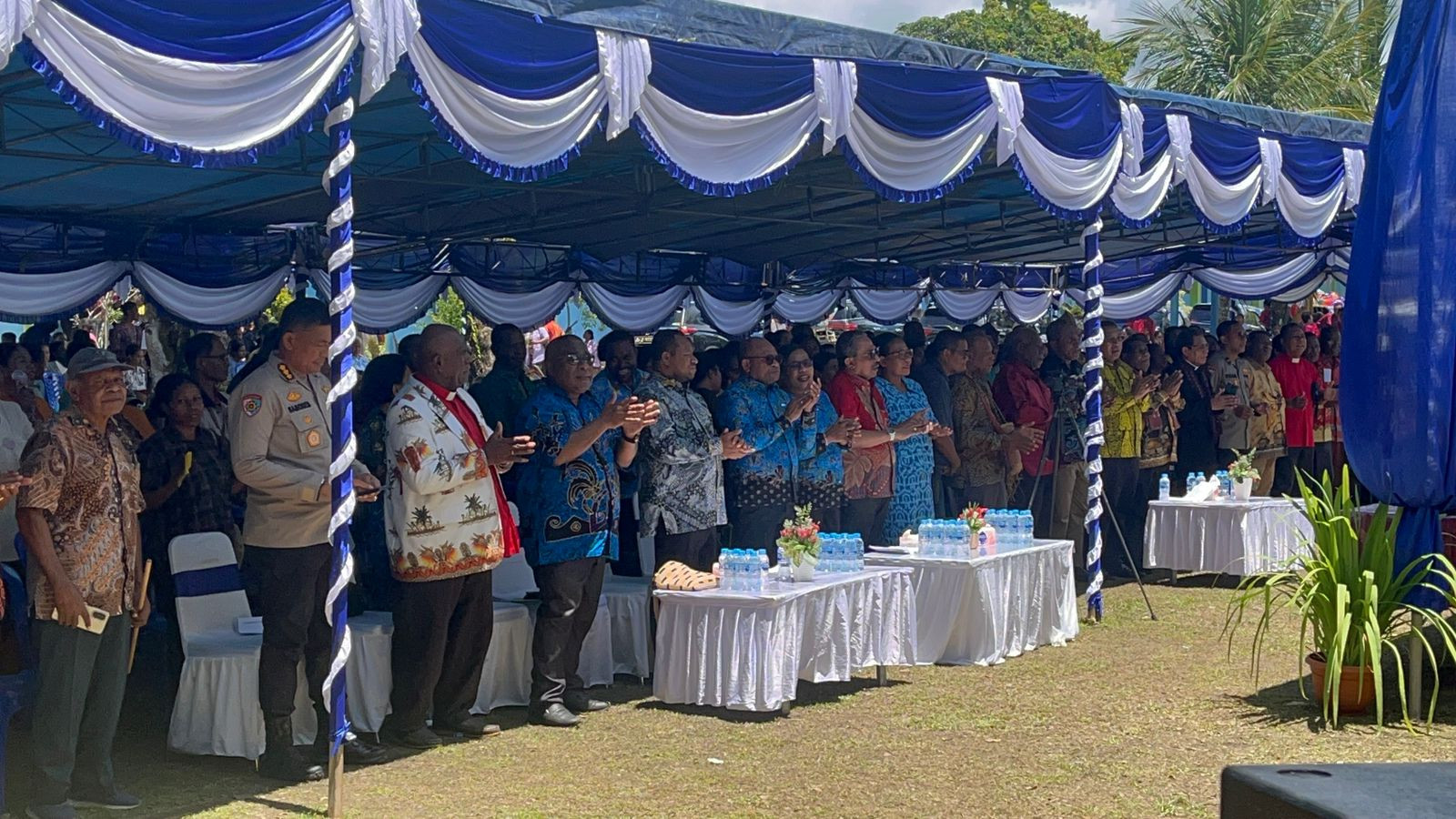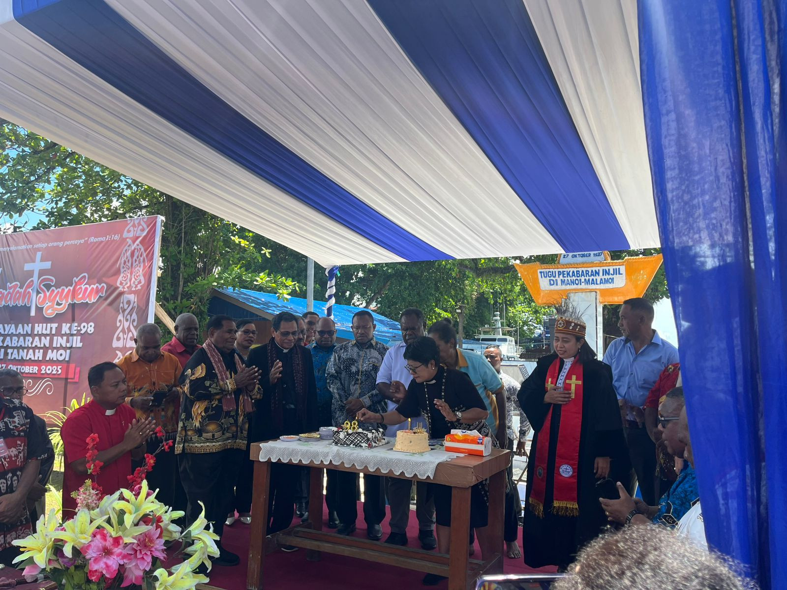 Kota Sorong - Wali Kota Sorong, Septinus Lobat, S.H., MPA., didampingi Ketua TP-PKK Kota Sorong Ny. Jemima Elisabet Windesi, S.K.M., M.A.P., bersama para pimpinan OPD Pemerintah Kota Sorong menghadiri perayaan HUT Pekabaran Injil masuk di tanah Manoi-Malamoi yang ke 98 Tahun. Hadir juga Gubernur Provinsi Papua Barat Daya Elisa Kambu S.Sos didampingi Wakil Gubernur Papua Barat Daya Ahmad Nausrau, para Forkopimda Papua Barat Daya dan Kota Sorong, Ketua DPRD Kota Sorong, para pimpinan OPD Provinsi PBD dan para jemaat gereja GKI Klasis Sorong dan Klasis Malamoi serta tamu undangan lainnya. Perayaan ini dirayakan di tugu Pekabaran Injil di Kota Sorong tepatnya di kompleks kantor Usahamina Sorong. Senin, (27/10/2025).