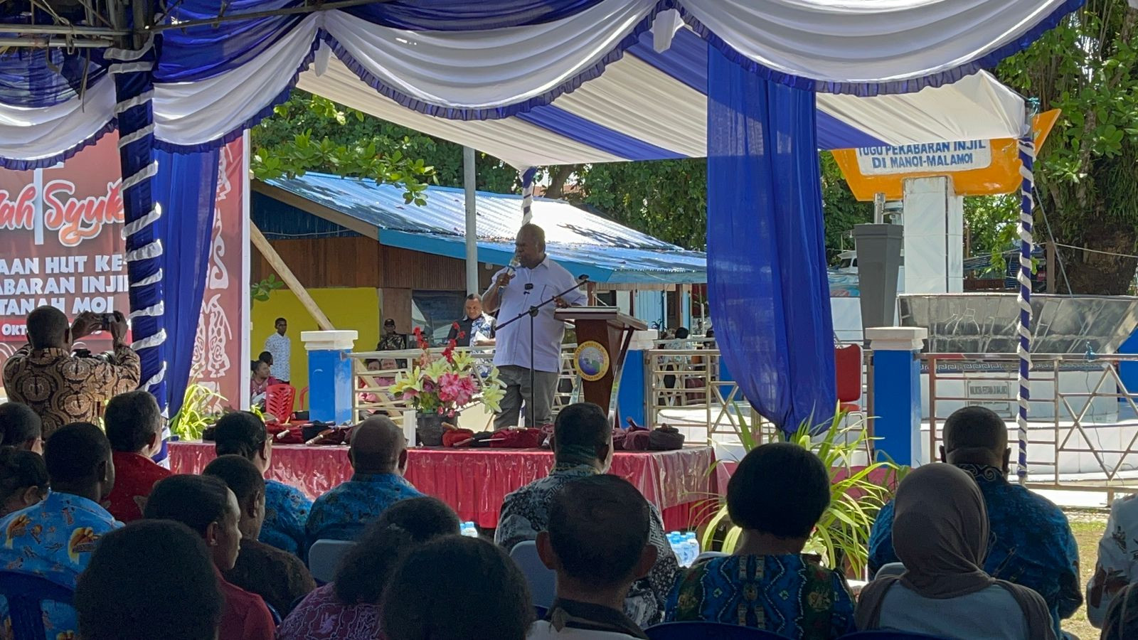 Selain itu Wali Kota juga mengajak semua untuk bersyukur karena dengan datangnya injilpada tahun 1927 membuat orang-orang dari kegelapan menjadi terang di Tanah Moi dan terang itu menyebar ke berbagai wilayah malamoi. Dan Wali Kota juga bersyukur sebagai putra asli Moi pertama memimpin Kota Sorong dan Wali Kota mengungkapkan rasa terimakasih serta memberi penghormatan kepada hamba Tuhan yang menanamkan iman bagi orang-orang yang mendiami di Tanah Malamoi.