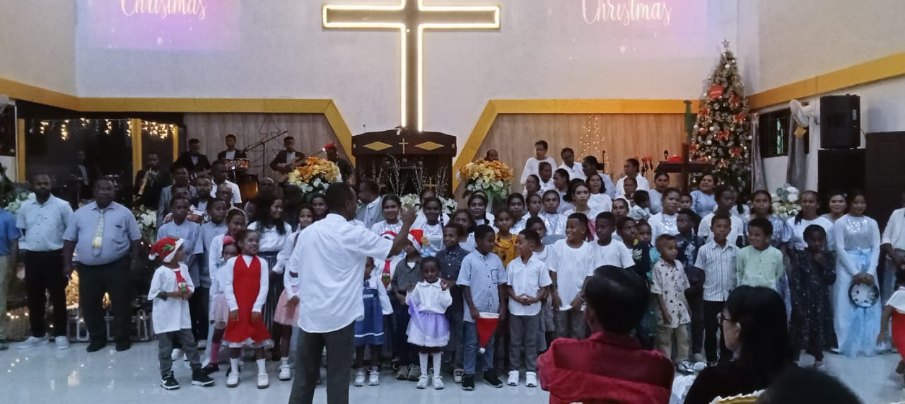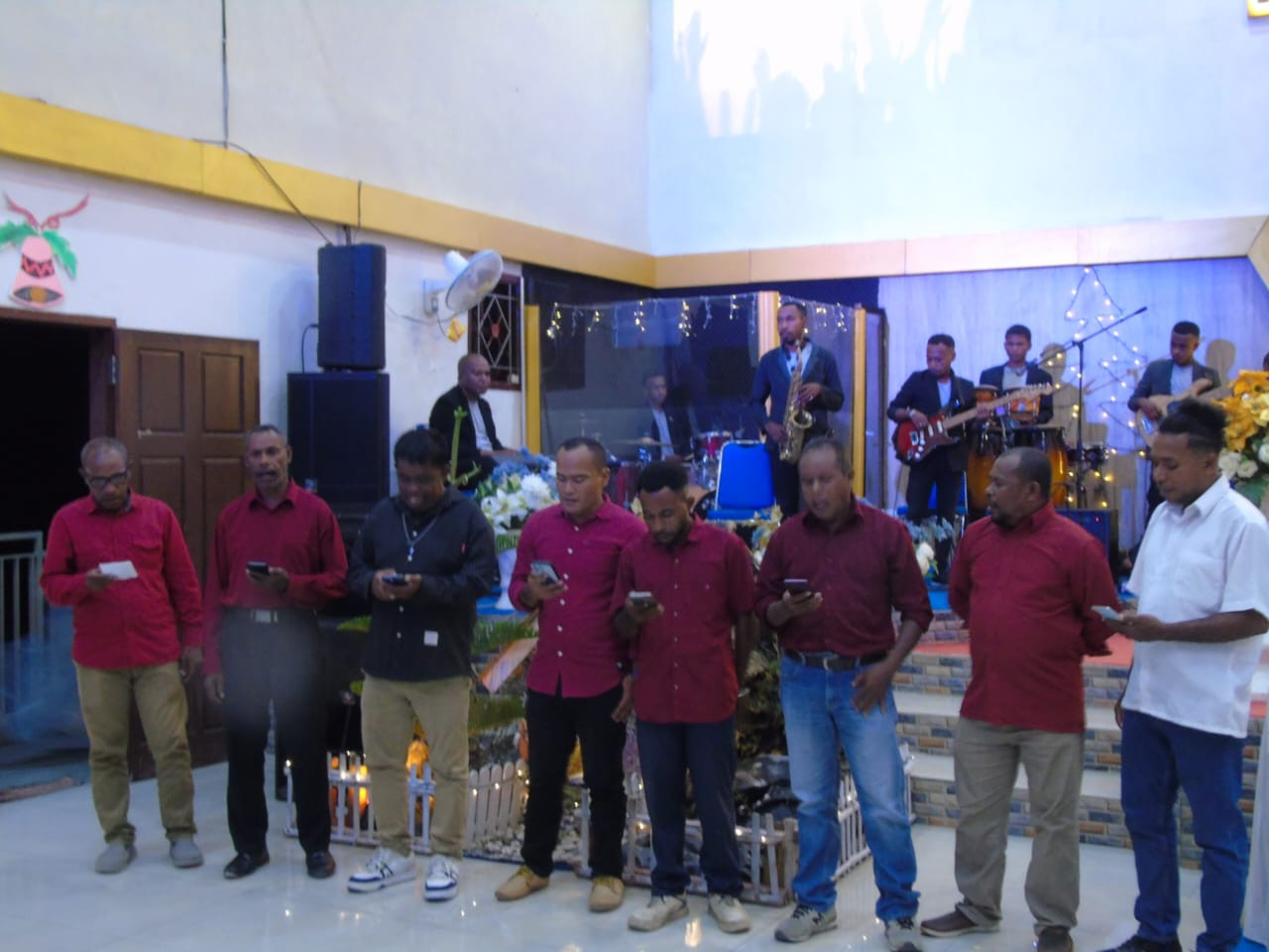Mewakili Wali Kota Sorong, Kepala Dinas Komunikasi dan Informatika Kota Sorong, James Burung, S.Sos., M.M., menghadiri Ibadah Perayaan Natal 2025 GPdI Jemaat Bukit Kasih Kota Sorong di Gedung Gereja GPdI Bukit Kasih, Rabu (17/12/2025) sore. Ibadah tersebut turut dihadiri perwakilan Gubernur Papua Barat Daya, Kepala Dinas Pekerjaan Umum dan Perumahan Rakyat Papua Barat Daya, Yakobus Tandung Pabimbim, S.T., M.Si. Firman Tuhan disampaikan oleh Gembala Korinus Mayaut. (π«πππππππππ π²πππ πΊπππππ)