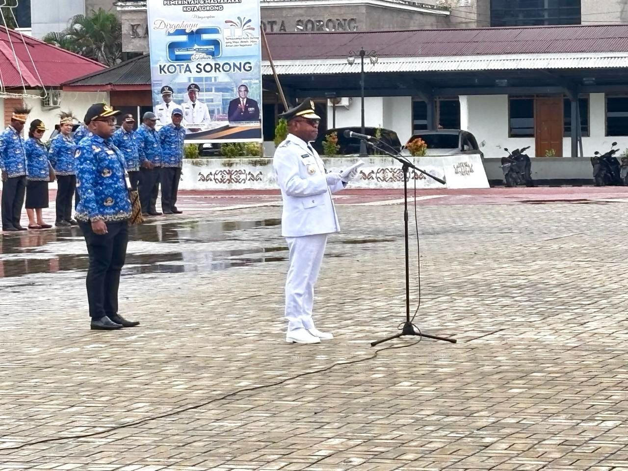 Kota Sorong — Pemerintah Kota Sorong menggelar Upacara Peringatan Hari Otonomi Daerah ke-XXIX Tahun 2025 bertempat di Lapangan Landscape Kantor Wali Kota Sorong. Upacara ini dipimpin langsung oleh Wali Kota Sorong, Septinus Lobat, S.H., MPA, di dampingi Wakil Wali Kota Sorong H. Anshar Karim, A. Md., dan diikuti oleh para Staf Ahli, Asisten, Pimpinan OPD, serta jajaran ASN di lingkungan Pemerintah Kota Sorong. Jumat (25/4/2025).