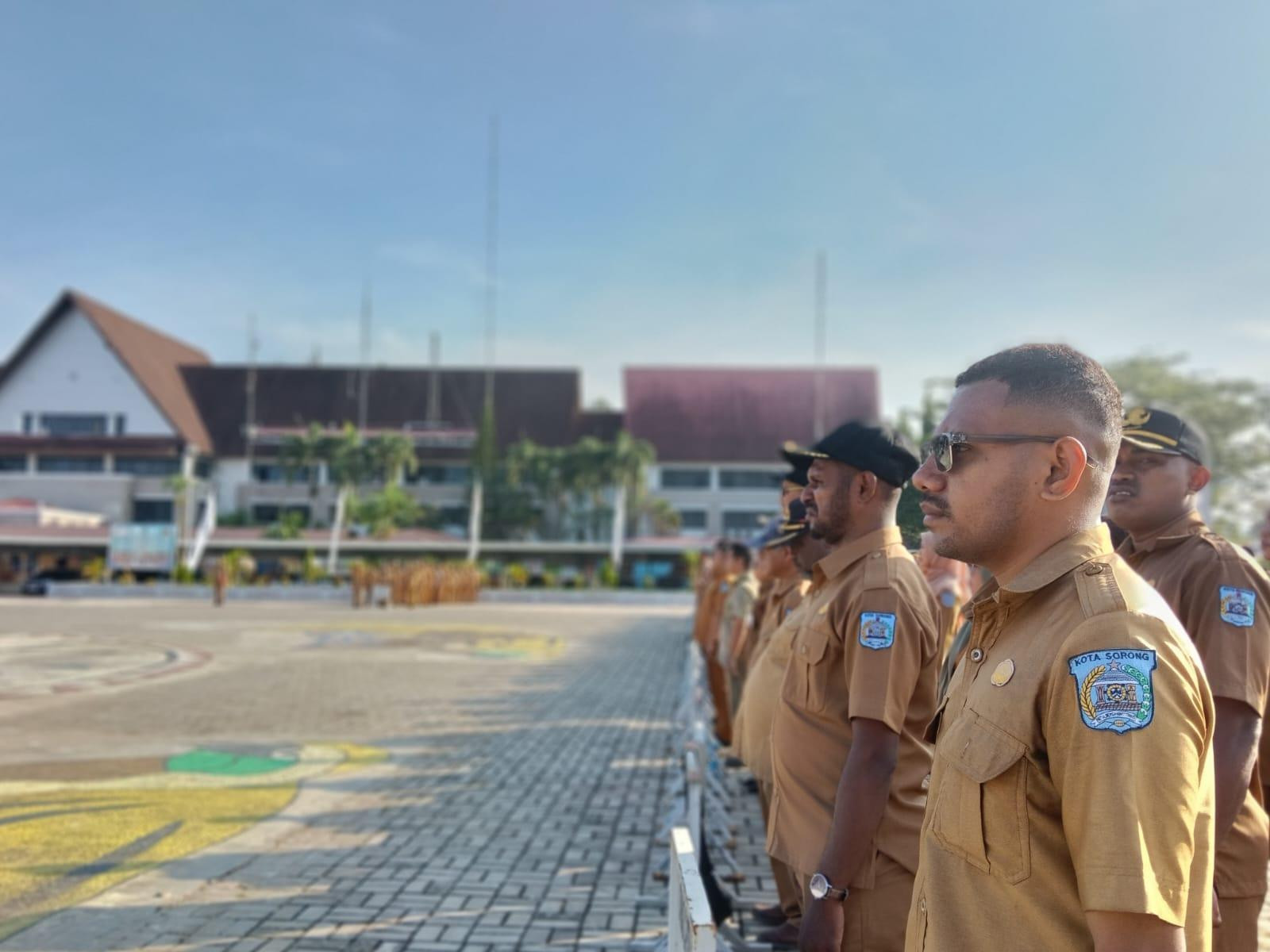 Sorong, Senin (09/3/2026) — Pemerintah Kota Sorong menggelar apel pagi yang berlangsung di Lapangan Lanscip Kantor Walikota, Senin pagi. Apel tersebut dipimpin langsung oleh Wali Kota Sorong,Septinus Lobat, S.H., M.P.A dan dihadiri oleh Wakil Wali Kota Sorong, H. Anshar Karim, A.Md, serta para pimpinan Organisasi Perangkat Daerah (OPD) dan Aparatur Sipil Negara (ASN) di lingkungan Pemerintah Kota Sorong.