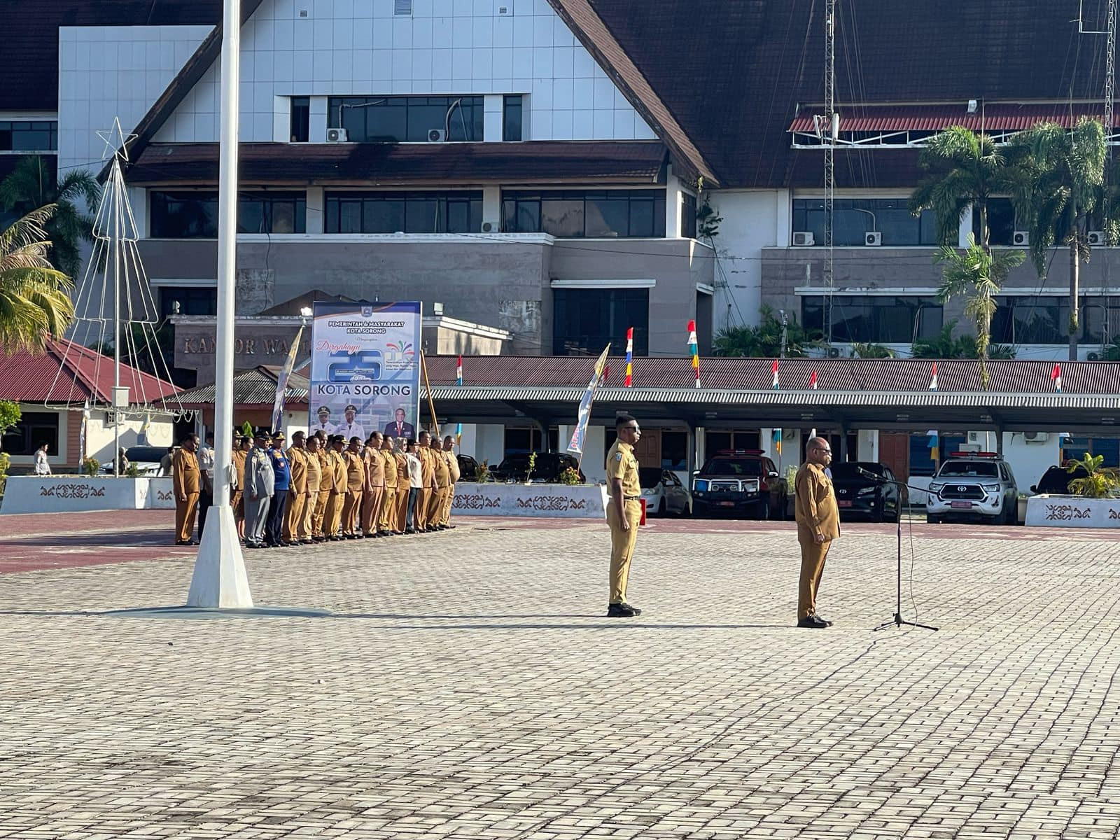 ππ¨ππ ππ¨π«π¨π§π - Wali Kota Sorong, Septinus Lobat, S.H., MPA, bersama Wakil Wali Kota Sorong, H. Anshar Karim, A.Md, memimpin apel perdana yang dilaksanakan di Lapangan Apel Kantor Wali Kota Sorong, Senin (3/32025).