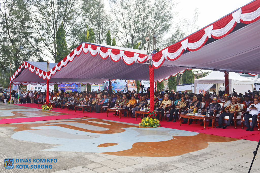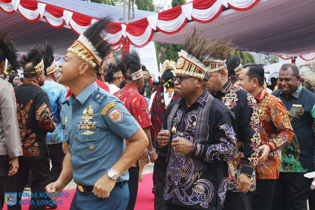 Kota Sorong – Penjabat Wali Kota Sorong, Septinus Lobat, S.H., MPA menghadiri puncak hari ulang tahun ke 22 Otonomi Khusus (Otsus) di Tanah Papua, yang digelar di Lapangan Apel kantor Wali Kota Sorong, Rabu (22/11/2023) pagi hari.