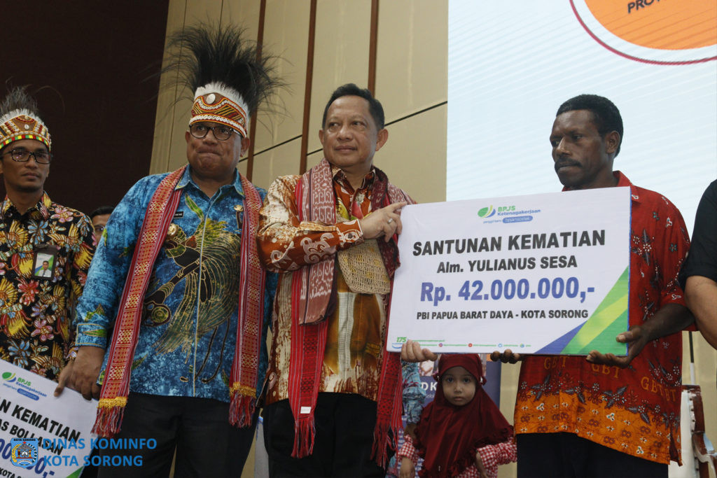 Pada kesempatan itu, juga Badan Penyelenggara Jaminan Sosial (BPJS) Ketenagakerjaan memberikan santunan kematian kepada lima ahli waris, yang diserahkan secara simbolis oleh Menteri Dalam negeri, Jenderal Polisi (Purn.) Prof. Drs. H. Muhammad Tito Karnavian, B.A., M.A., Ph.D dan Penjabat Gubernur Papua Barat Daya, Dr. Drs. Muhammad Musa’ad, M.Si.