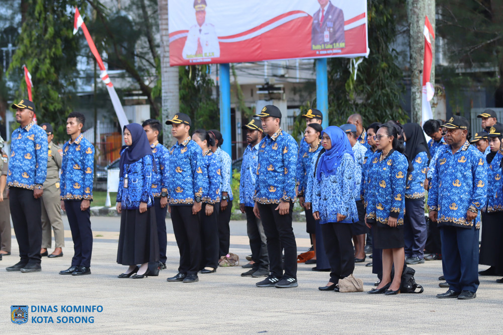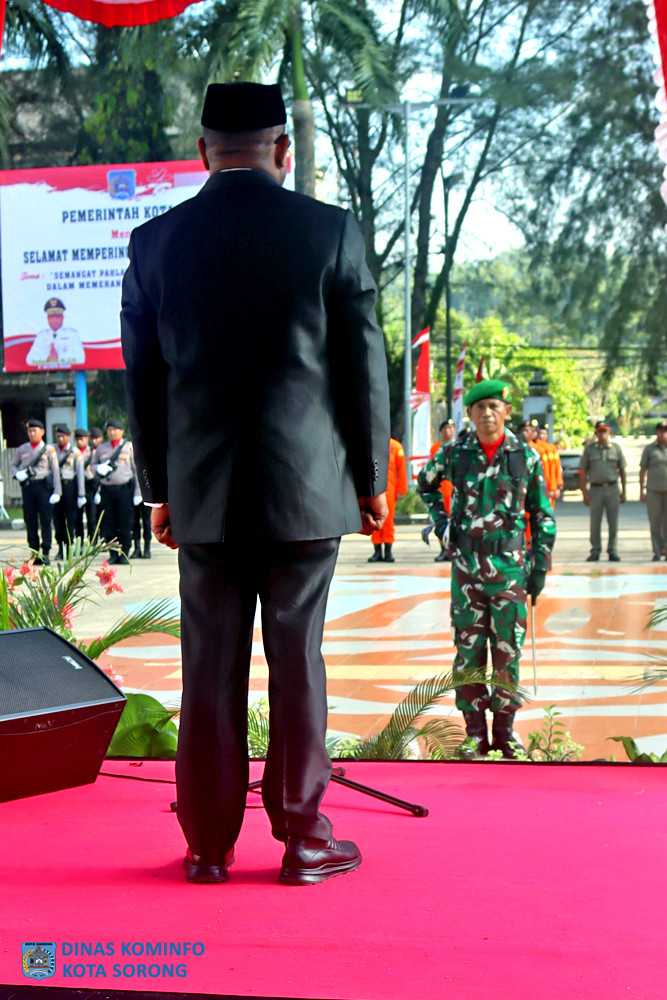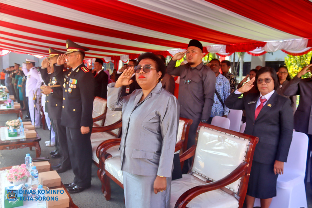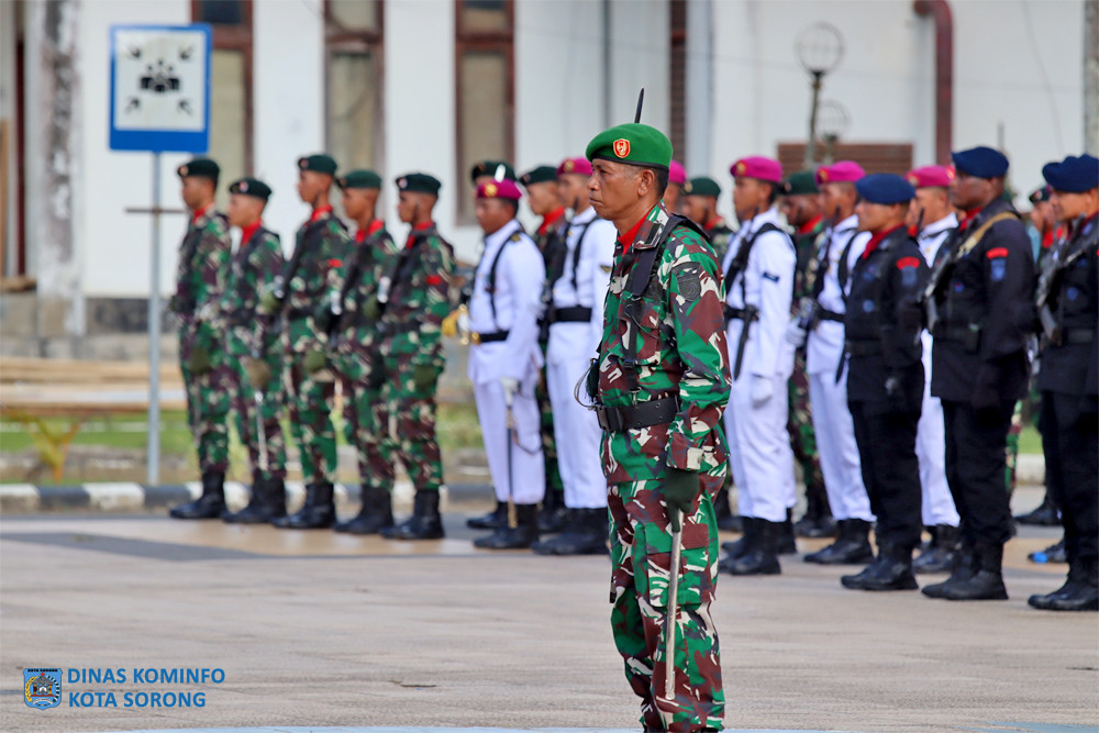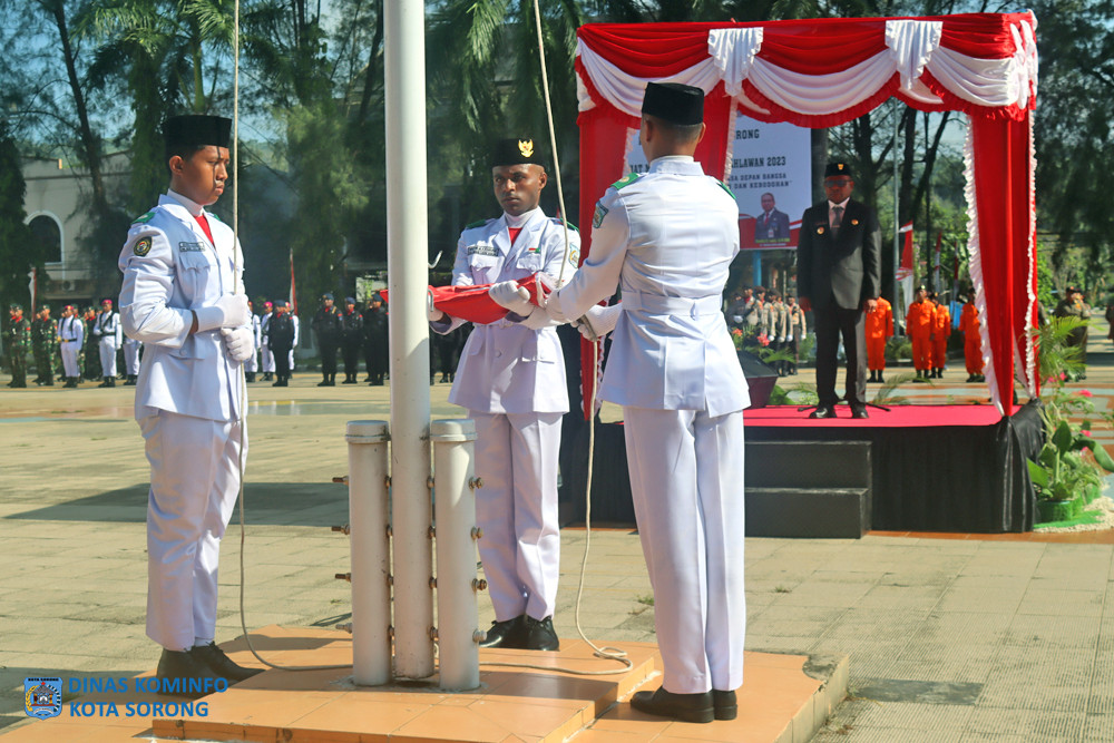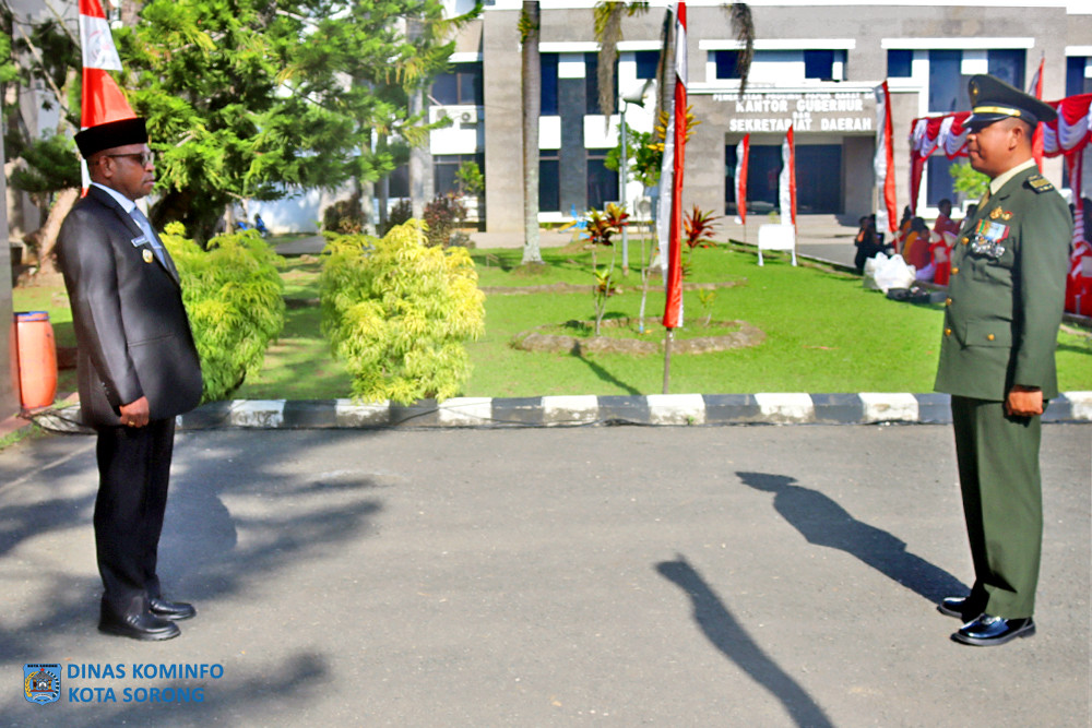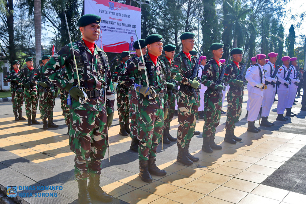 Kota Sorong – Penjabat Wali Kota Sorong, Septinus Lobat, S.H., MPA bertindak sebagai Inspektur Upacara pada peringatan Hari Pahlawan yang digelar Pemerintah Kota Sorong di Halaman Kantor Wali Kota Sorong, Jumat (10/11/2023) pagi hari.