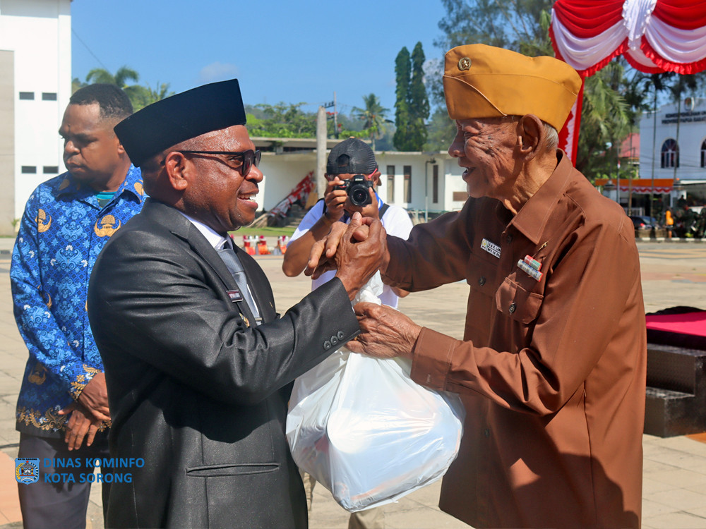 Usai itu, dilanjutkan dengan penyerahan bantuan sosial berupa sembako dari Pemerintah Kota Sorong kepada 5 perintis kemerdekaan Republik Indonesia, yang diserahkan langsung oleh Pj. Wali Kota Sorong dan Forum Koordinasi Pimpinan Daerah Kota Sorong. (Diskominfo Kota Sorong)