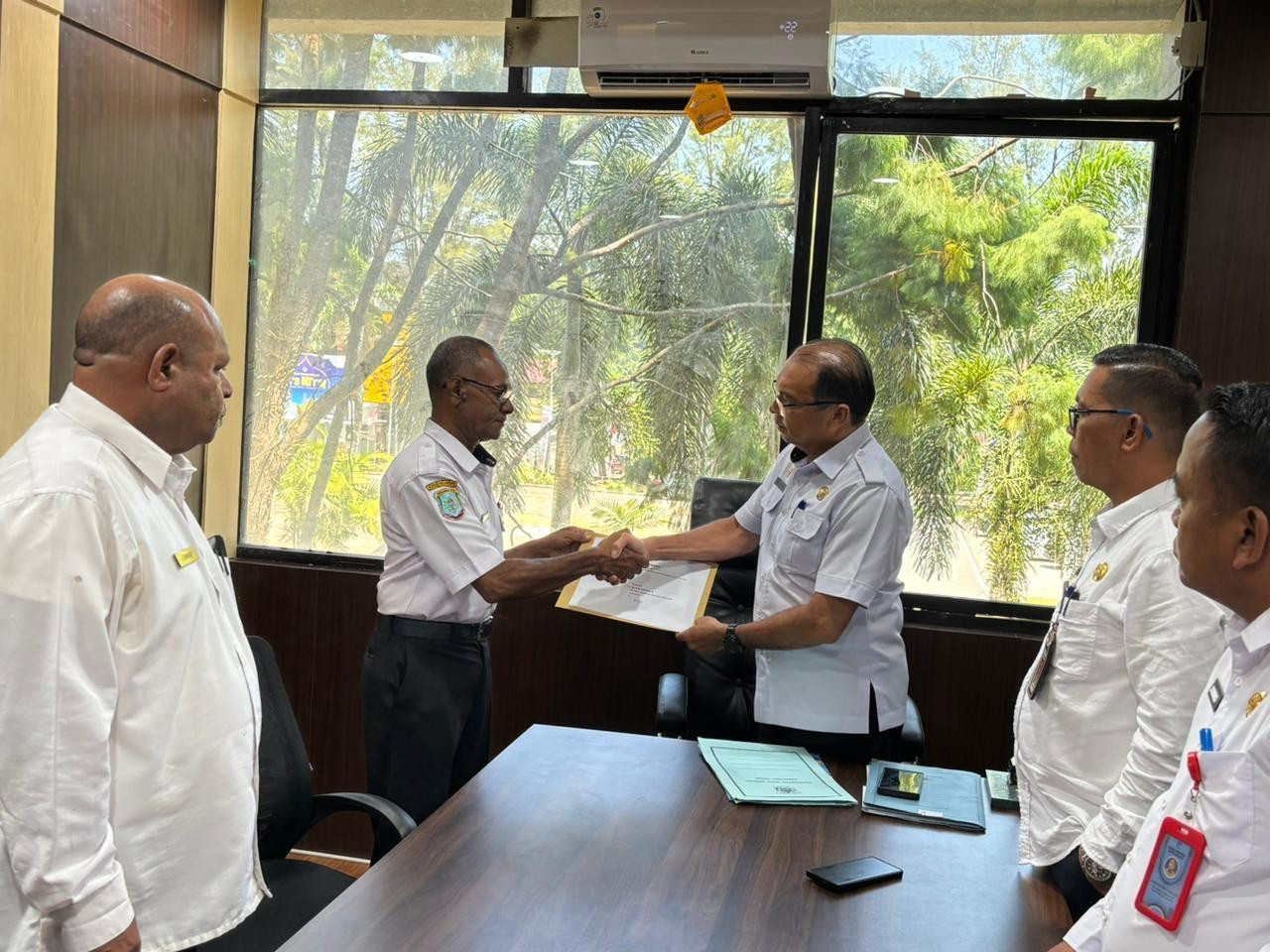 Pemerintah Kota Sorong melaksanakan penyerahan Surat Keputusan (SK) Pelaksana Tugas (Plt.) Asisten Bidang Administrasi Umum yang diserahkan langsung oleh Plt. Sekretaris Daerah Kota Sorong kepada Musa Fonataba, SP. Kegiatan tersebut berlangsung di Ruang Rapat Sekretaris Daerah Kota Sorong dan dihadiri oleh Asisten I Bidang Pemerintahan dan Kesra, Jeremias Gembenop, S. Sos., M. H., Asisten Bidang Perekonomian, dan Pembangunan Setda Kota Sorong, H. Thamrin Tajuddin, S.T., M.M, Kepala BKPSDM Kota Sorong, Robert Asmuruf, SH., MH., serta Kepala Dinas Komunikasi dan Informatika Kota Sorong, James Burung, S.Sos., MM. Rabu, (28/1/2026).