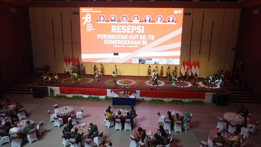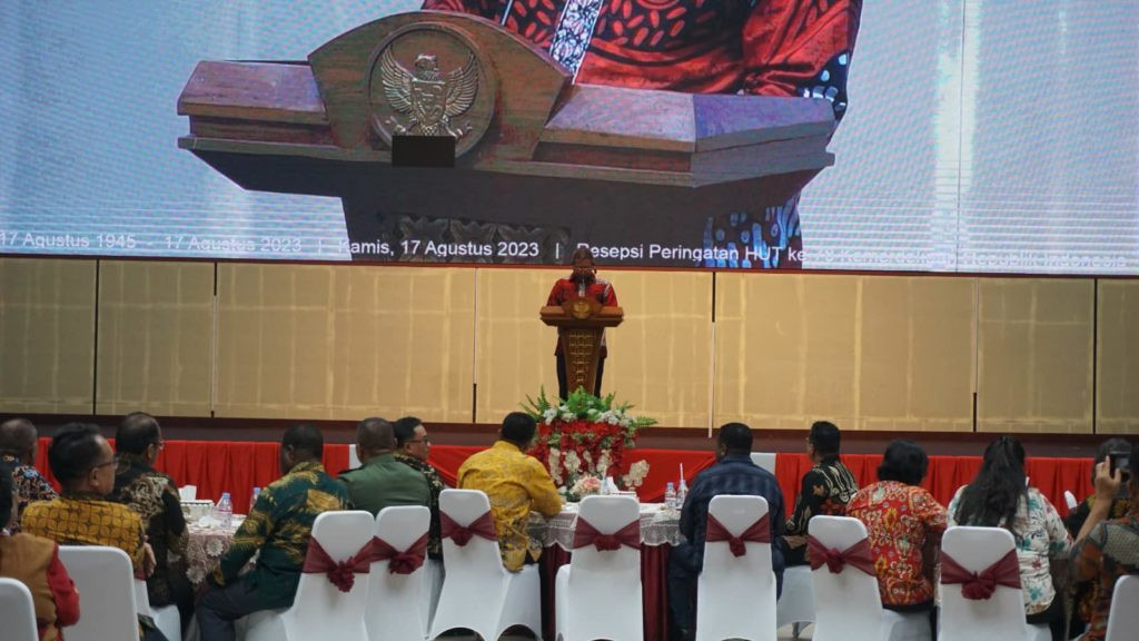 KOTA SORONG – Puncak Perayaan HUT Ke-78 Proklamasi Kemerdekaan Indonesia terselenggara dengan meriah dan penuh syukur, Pj. Wali kota Sorong, George Yarangga, A.PI. MM., turut dalam acara Resepsi Peringatan HUT Ke-78 Kemerdekaan RI. Gedung Drs. Ec. L. Jitmau, MM., Kamis, (17/8/2023).