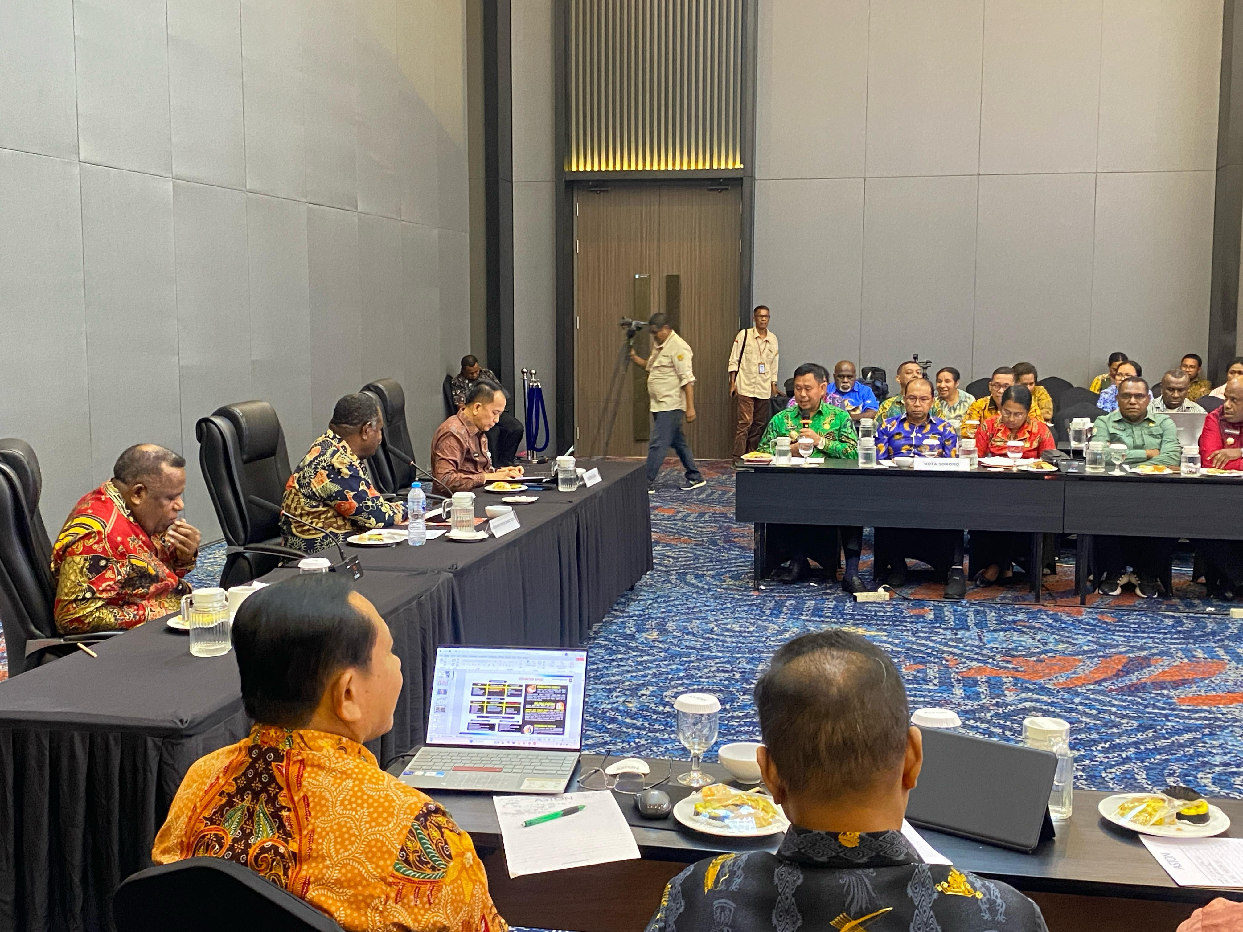 Rakor dipimpin langsung oleh Gubernur Papua Barat daya, serta dihadiri oleh Dirjen Bina Keuangan Daerah Kemendagri RI, Sekda Provinsi Papua Barat Daya, Wakil Wali Kora Sorong, H. Anshar Karim, A.Md. bersama rombongan, serta Para Kepala/Wakil Kepala/Perwakilan Daerah Kabupaten se- Papua Barat Daya, bersama pejabat kepala OPD terkait.