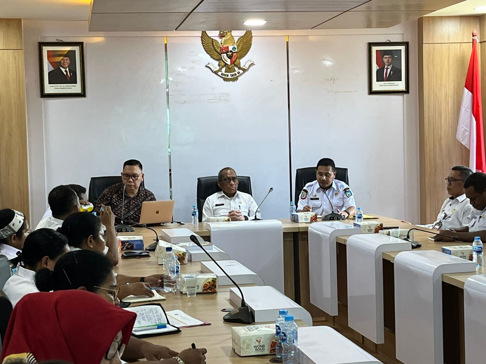 Kota Sorong - Wali Kota Sorong, Septinus Lobat, S.H., MPA, dalam hal ini diwakili oleh Asisten Bidang Administrasi Umum Setda Kota Sorong, Hanok J. Talla, S.Sos., M.M, memimpin rapat dan pemaparan hasil survei pendapatan asli daerah Kota Sorong bersama Tim kajian ekonomi dan pembangunan universitas Sam Ratulangi Manado Sulawesi Utara bersama para OPD Pemungut yang ada di Pemerintah Kota Sorong. Kegiatan ini dilaksanakan di ruang anggrek kantor Wali Kota Sorong. Rabu, (15/10/2025).