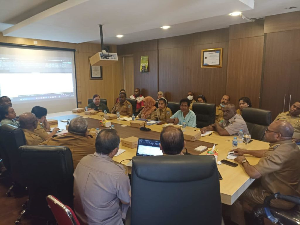 KOTA SORONG – Penjabat Wali Kota Sorong, Septinus Lobat S.H, MPA bersama Penjabat Sekda Kota Sorong Rudy R. Laku S.Pi., MM, memimpin rapat koordinasi terkait Pendapatan Asli Daerah (PAD) bersama beberapa pimpinan OPD dan para kepala Puskesmas se- Kota Sorong yang sebagai penghasil PAD. Rapat ini dilaksanakan di ruang rapat Pj Wali Kota Sorong. Selasa, (05/09/2023).