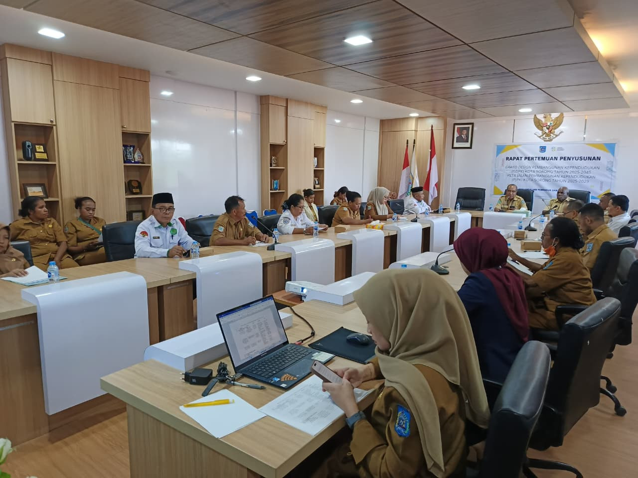 Kota Sorong - Staf Ahli Wali Kota Bidang Pemerintahan Hukum dan Politik (Sahli PHP) di Kota Sorong Abdul Rahim Oeli S.E hadir pada Rapat lanjutan, dalam rangka Penyusunan Dokumen Grand Design Pembangunan Kependudukan Kota Sorong. Pertemuan ini nantinya akan dilanjitkan pada hari Jumat mendatang. Ruang Anggrek, Lt.II, Kantor Wali Kota Sorong. Selasa, (16/12/2025).