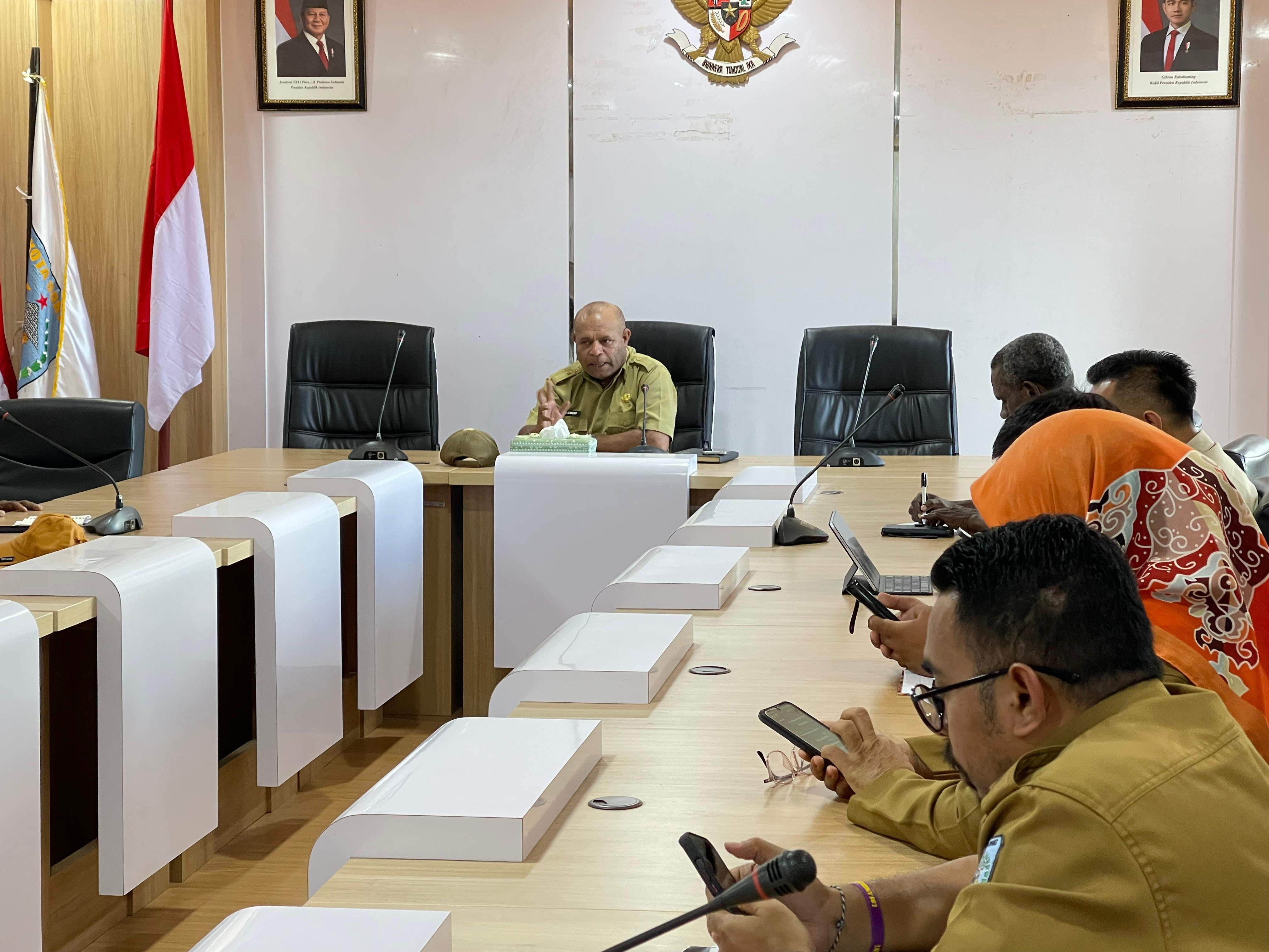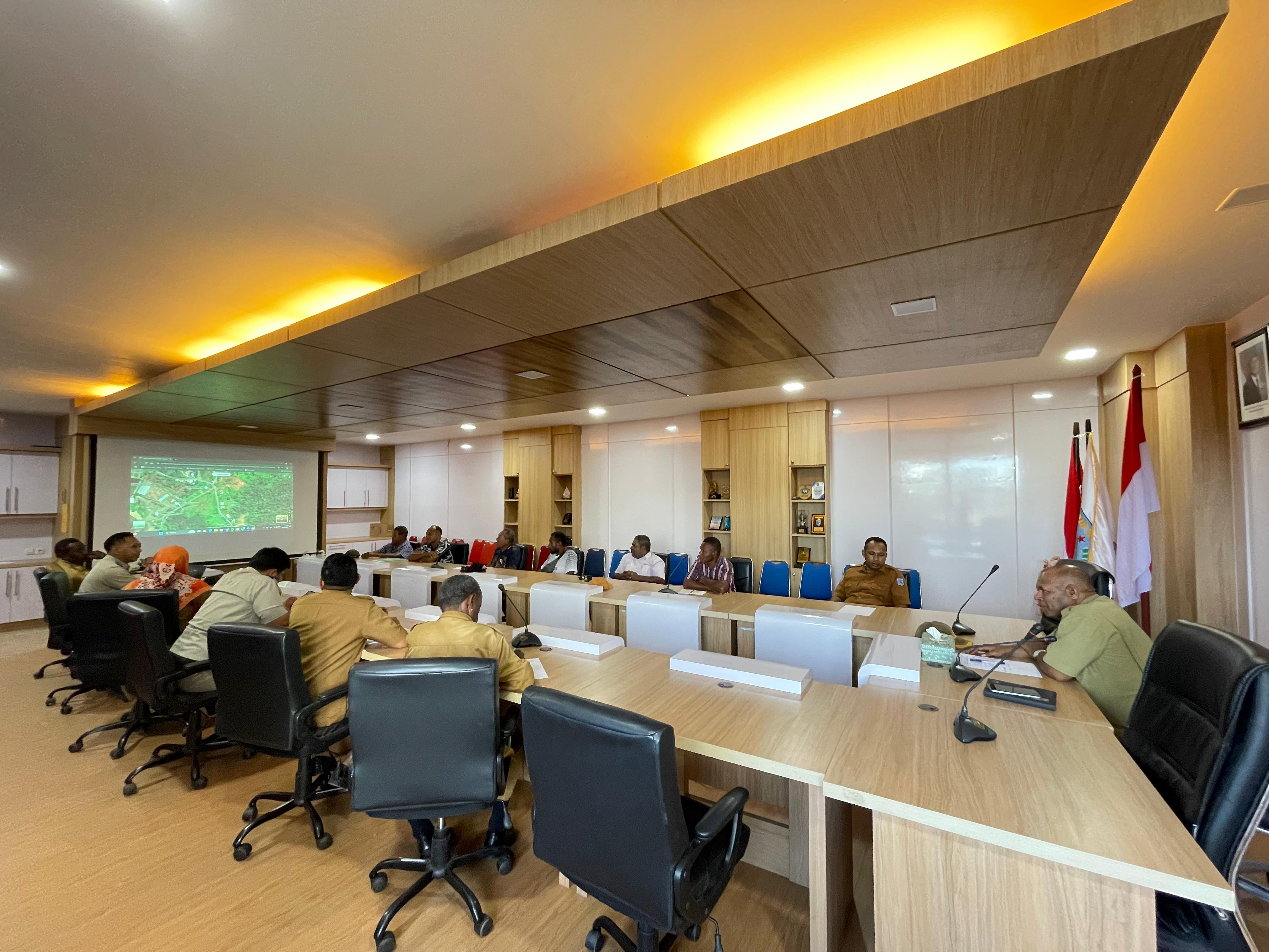 Asisten I Bidang Pemerintahan dan Kesra, Jeremias Gembenop, S. Sos., M. H., bersama Sekretaris Dinas Pertanahan, dan Kabag Hukum Setda Kota Sorong, melakukan Rapat Mediasi guna membahas Penyelesaian Status Penguasaan Kepemilikan Tanah yang berlokasi di Suprau. Rapat ini berlangsung di Ruang Anggrek Kantor Wali Kota Sorong. Selasa (2462025).|