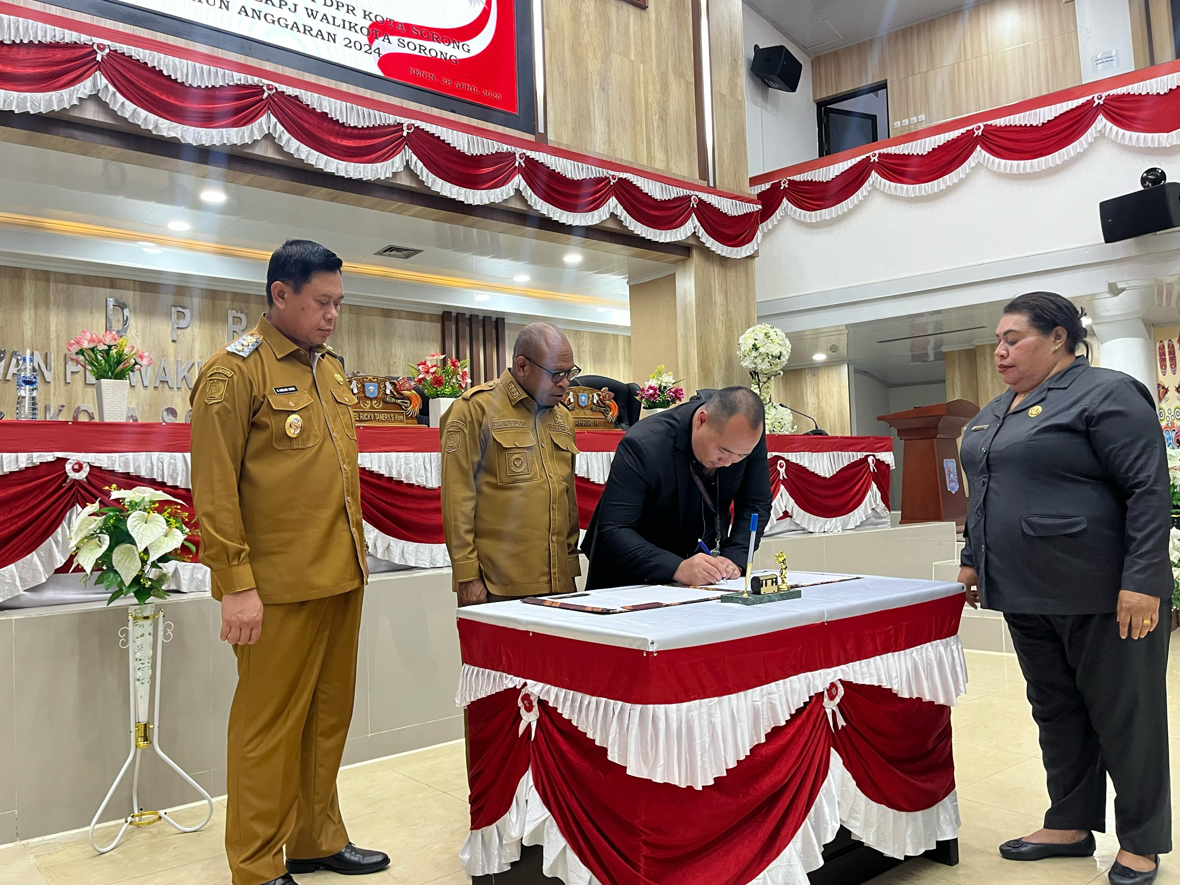 Sebelumnya dilakukan penyerahan LKPJ oleh Wali Kota dan Pimpinan DPRK Sorong yang disaksikan oleh Wakil Wali Kota Sorong bersama para Anggot DPRK Kota Sorong serta para pimpinan OPD pemerintah Kota Sorong. (Diskominfo Kota Sorong).
