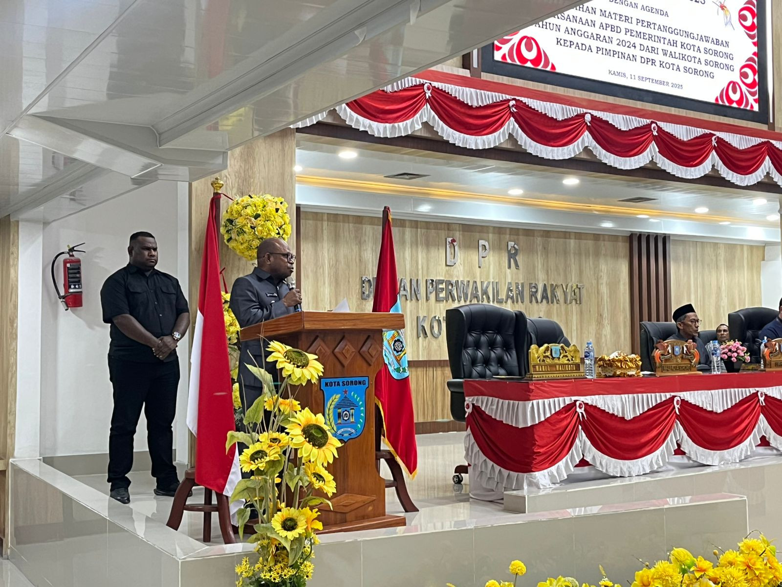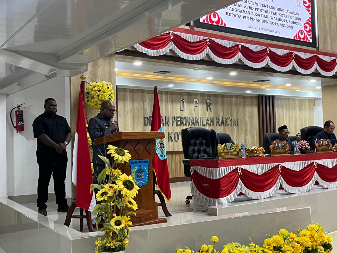 “Pertanggungjawaban pelaksanaan apbd tahun anggaran 2024 ini merupakan cerminan dari seluruh program pembangunan dan pelayanan publik yang telah kita jalankan bersama. Kami menyadari bahwa setiap rupiah yang dialokasikan dan dibelanjakan harus dapat dipertanggungjawabkan dengan sebaik-baiknya, karena itu adalah amanah dari rakyat yang harus digunakan untuk sebesar-besarnya kesejahteraan masyarakat kota sorong, ucap Wali Kota Sorong.