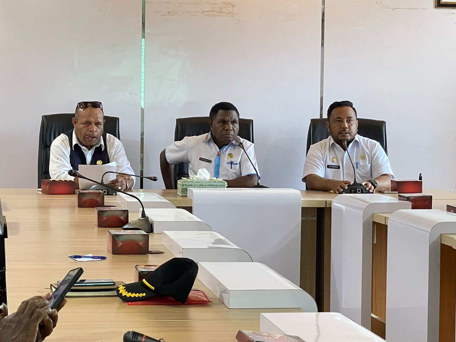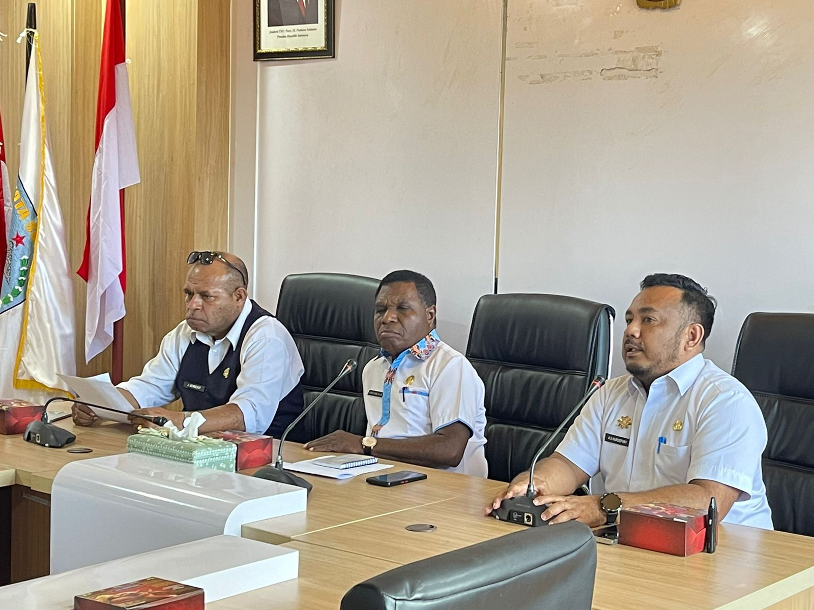 Pjs. SEKDA Kota Sorong, Amos Kareth, SH., didampingi oleh Asisten Bidang Pemerintahan dan Kesejahteraan Rakyat, Jeremias Gembenop, S.Sos., M.H., dan Plt. Kepala Dinas Pertanahan Kota Sorong, Yoel O. Gifelem, Hadir pada Rapat Persiapan Rencana Pembangunan Lorong Kolam Susu, yang terlaksana di Ruang Anggrek, Lt.II, Kantor Wali Kota Sorong. Rabu,(23/6/2025).