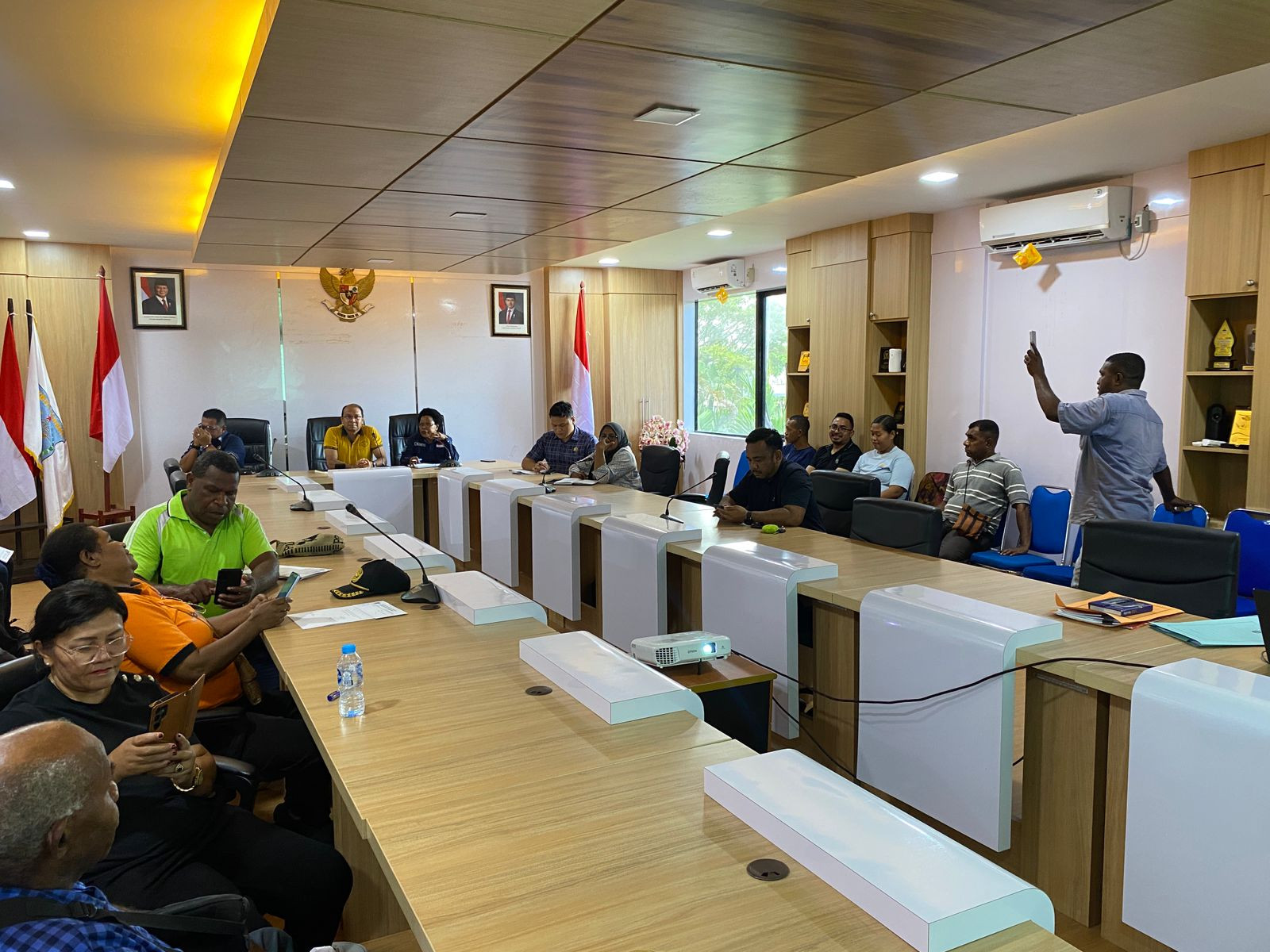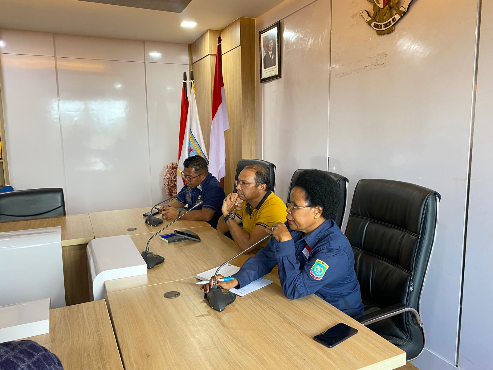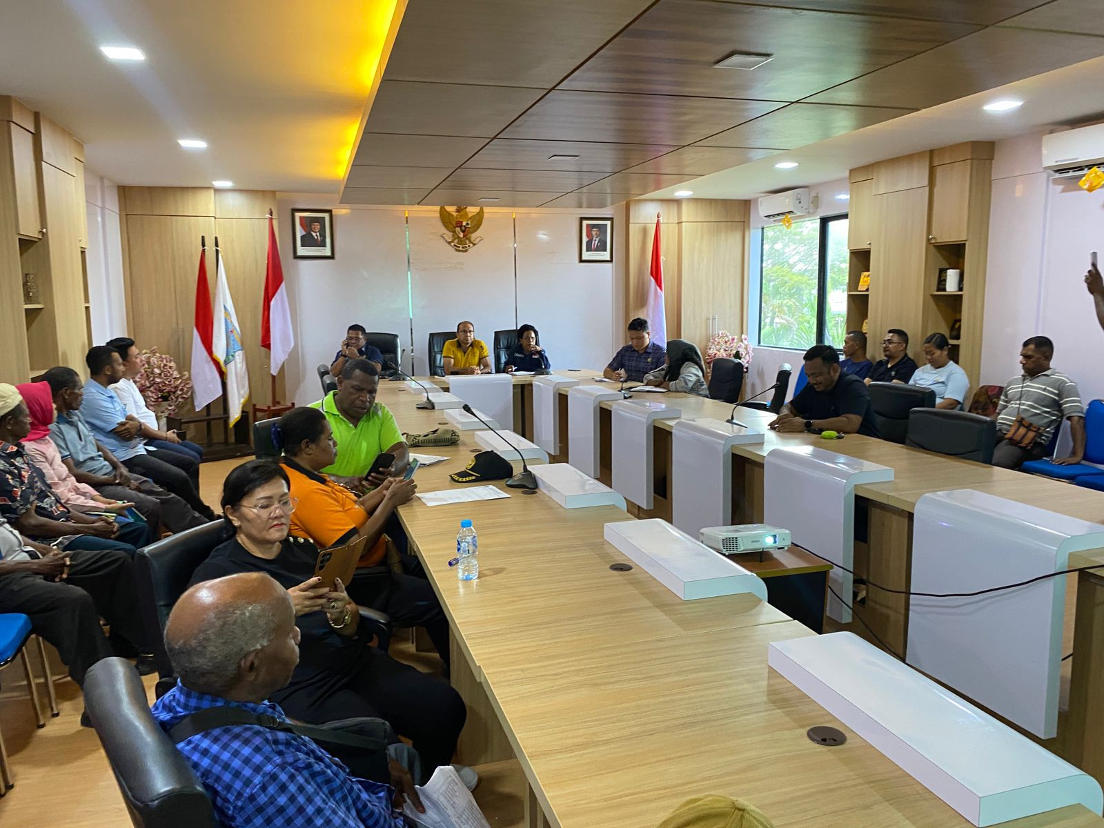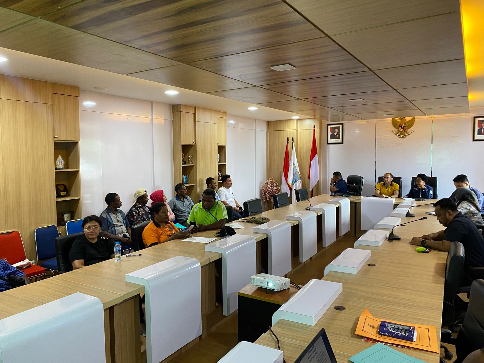BERITA FOTO : Plt. Sekda Kota Sorong, Ruddy R. Laku, S.Pi., MM., pimpinan Rapat Tim Asistensi Pembentukan Kampung di Kota Sorong, bersama Komisi IV DPRK Kota Sorong, di Ruang Anggrek, Kantor Wali Kota Sorong. Jumat, (13/6/2025).