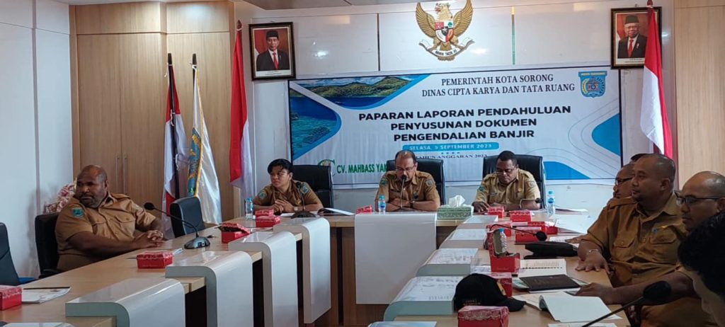 Pertemuan ini juga dilaksanakan guna mendiskusikan awal dari Upaya Penanganan Banjir yang terjadi di Kota Sorong. yakni Pendahuluan Penyusunan Dokumen Pengendalian Banjir.