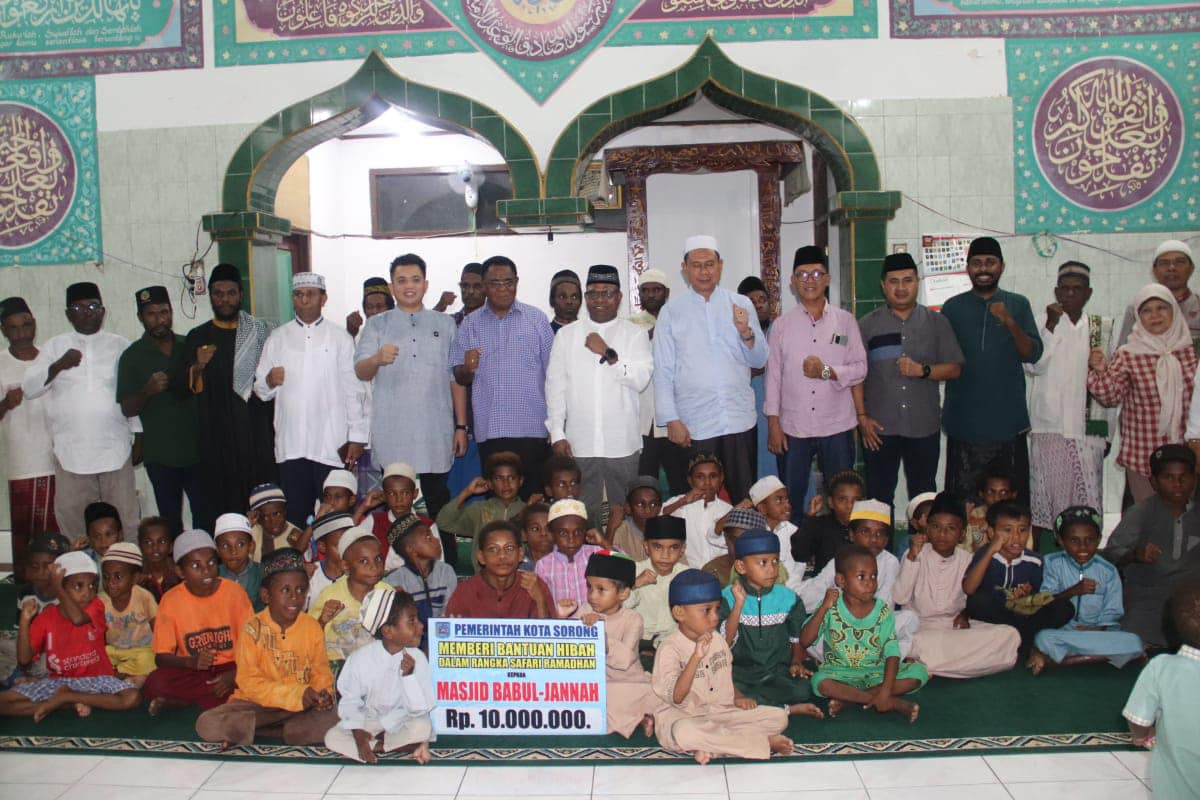 Safari Ramadhan di Masjid Babul Jannah, Wali Kota Sorong Serahkan Bantuan Sembako.