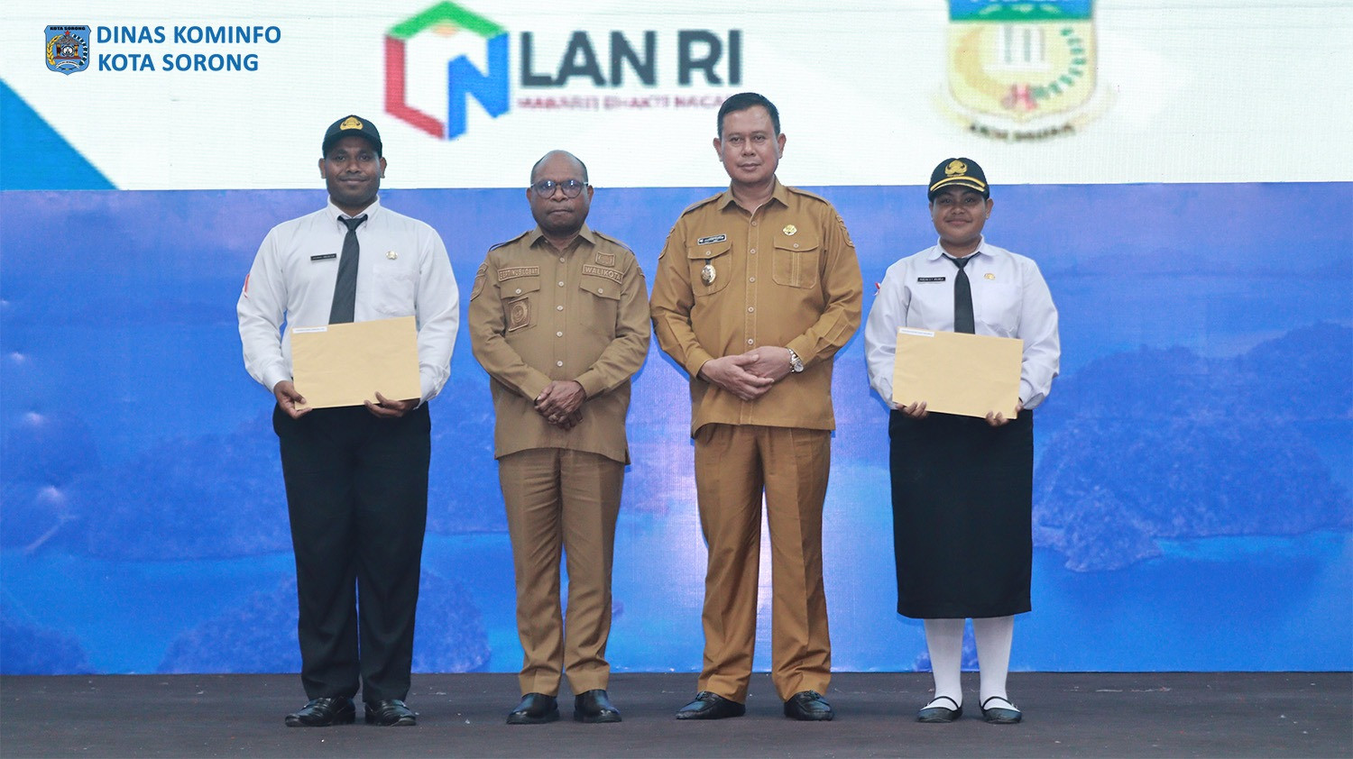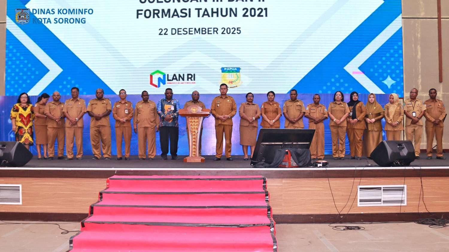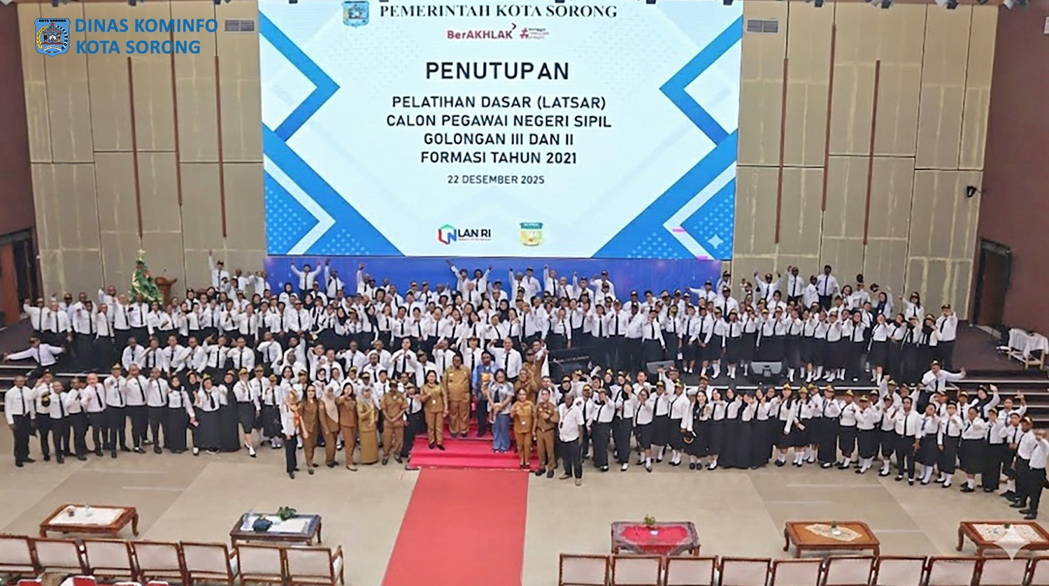 ππ¨ππ ππ¨π«π¨π§π - Sebanyak 258 Calon Pegawai Negeri Sipil (CPNS) Golongan II dan III Formasi Tahun 2021 di lingkungan Pemerintah Kota Sorong, dinyatakan lulus 100 persen Pelatihan Dasar (Latsar), dengan penekanan pada disiplin Aparatur Sipil Negara (ASN), kepatuhan terhadap aturan, serta kewajiban mendukung visi pembangunan Kota Sorong, pada penutupan Latsar CPNS di Gedung Lambert Jitmau, Senin (22/12/2025).