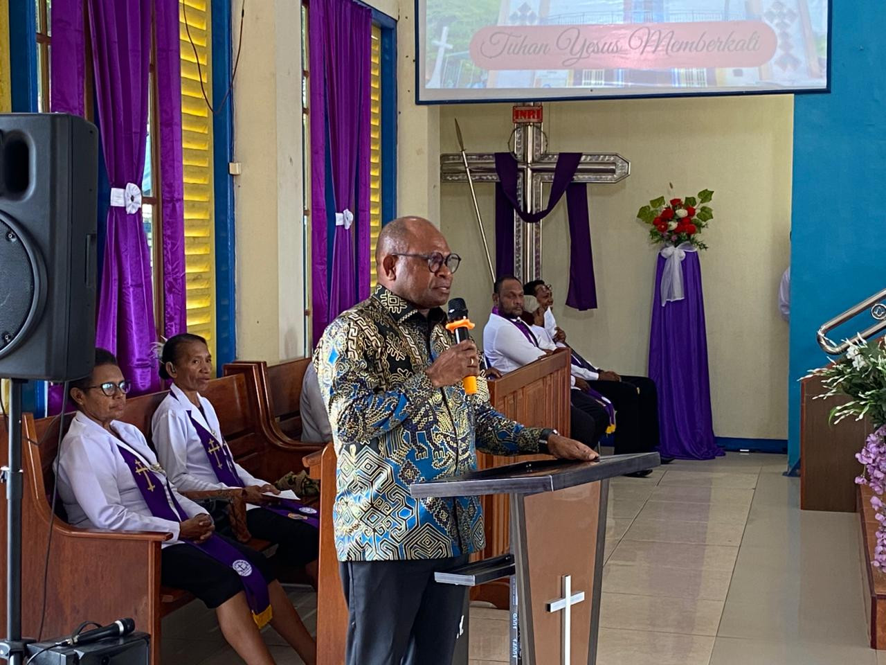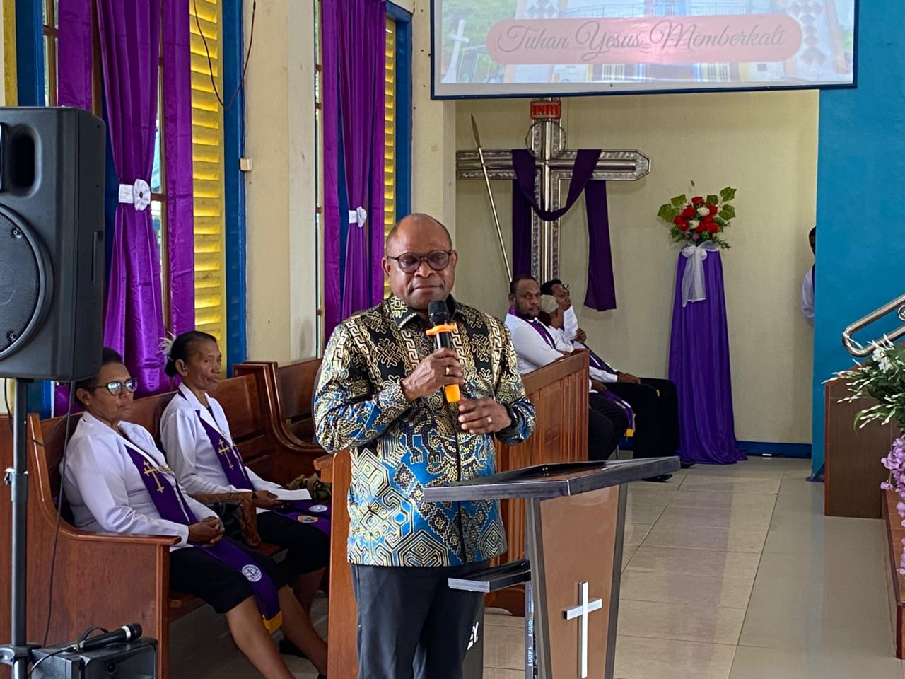 Selain Menyerahkan Bantuan Alat Musik, WALI KOTA SORONG SEPTINUS LOBAT AJAK JEMAAT WUJUDKAN SORONG EMAS YANG AMAN DAN BERSIH