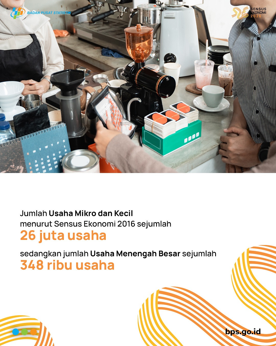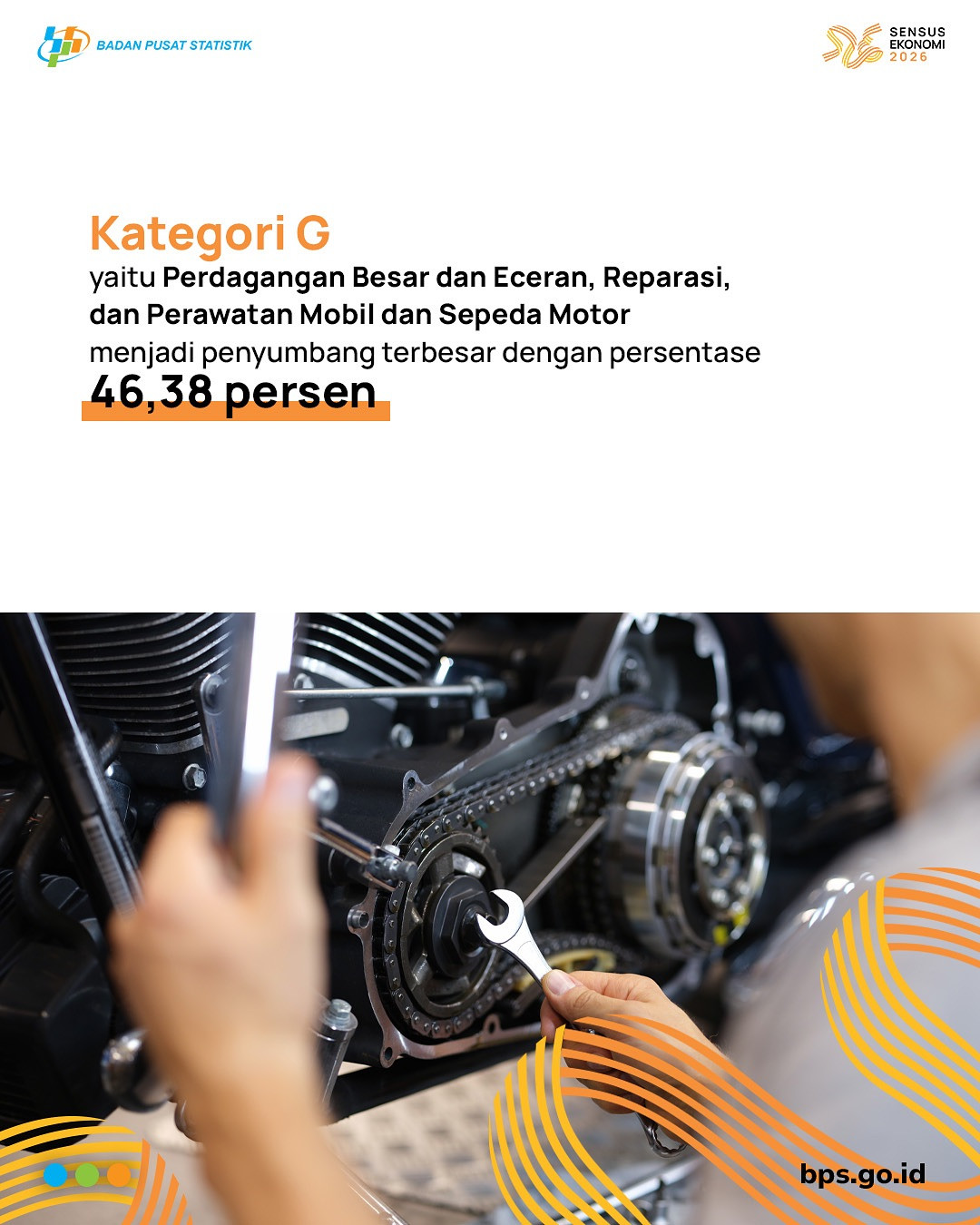 Halo Sahabat Data, Sensus Ekonomi dilakukan hampir sepuluh tahun lalu, di 2016. Dari SE2016 tercatat Jumlah Usaha Mikro dan Kecil sejumlah 26 juta usaha. Sedangkan Jumlah Usaha Menengah Besar sejumlah 348 ribu usaha. Dengan kategori G (Perdagangan Besar dan Eceran, Reparasi, dan Perawatan Mobil dan Sepeda Motor) menjadi penyumbang terbesar dalam perekonomian Indonesia sebanyak 46,38 persen. Sementara kategori G adalah kontributor terbesar terhadap perekonomian Kota Sorong sejak tahun 2021.