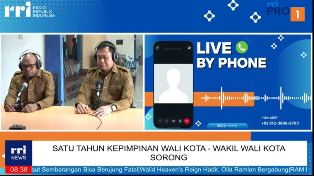 Sorong – Memasuki satu tahun kepemimpinan, Wali Kota Sorong, Septinus Lobat bersama Wakil Wali Kota Ansar Karim memaparkan sejumlah capaian dan program prioritas dalam dialog “Sorong Menyapa” di RRI Sorong, Selasa (24/2/2026).